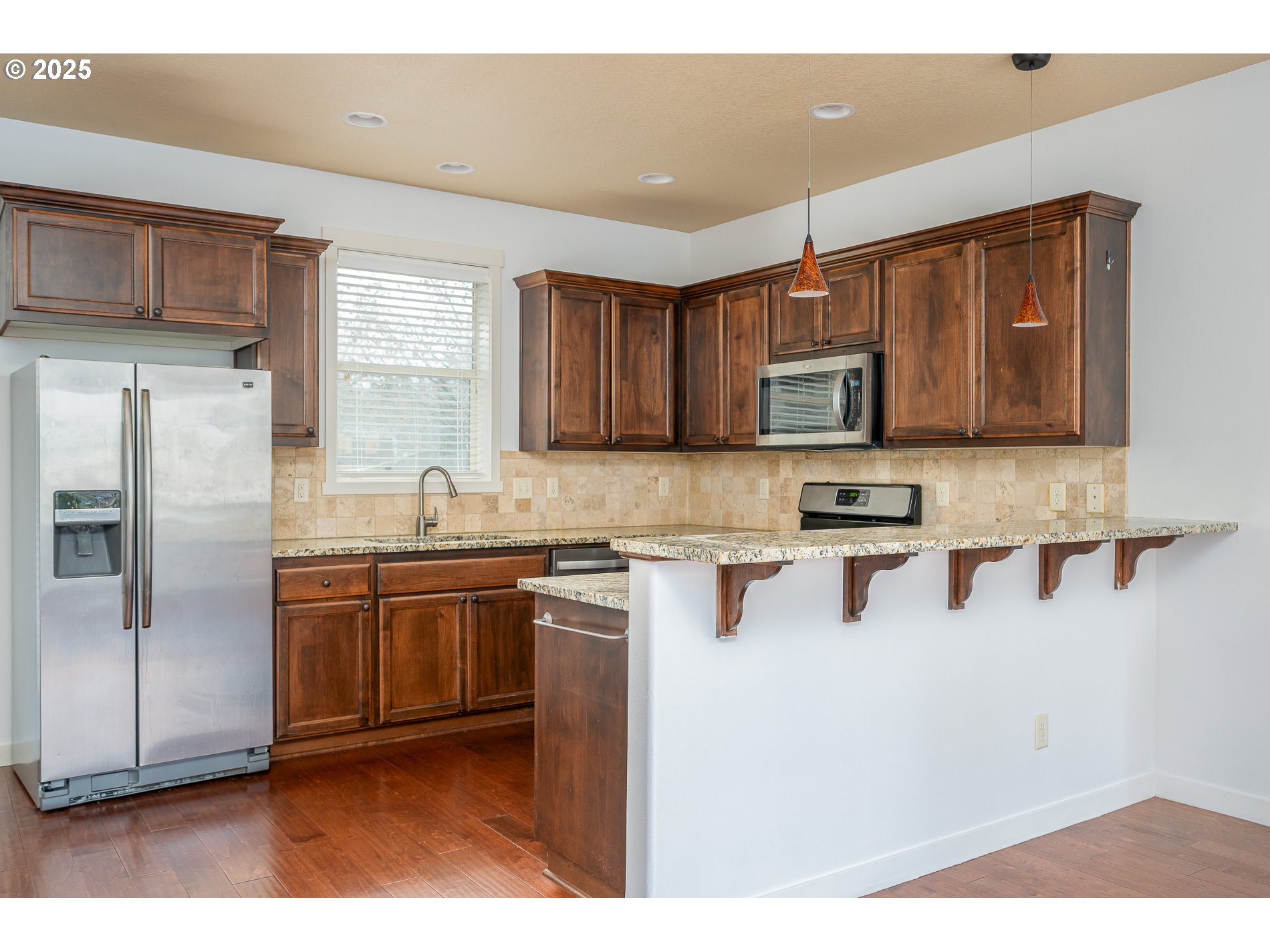 Beautiful detached home built in 2014, perfectly situated on a desirable corner lot. Light and bright throughout, this home features an open-concept floor plan with 9-foot ceilings, rich wood floors, and stylish cabinetry on the main level. The inviting living room includes a cozy gas fireplace with built-in bookshelves—perfect for relaxing or entertaining.The kitchen offers granite countertops, stainless steel appliances, and a gas range, combining both function and style. Upstairs you’ll find three bedrooms, 2.5 bathrooms, and a convenient laundry room. The spacious third-floor bonus room provides endless possibilities—ideal for a home office, media room, playroom, or potential fourth bedroom with the addition of a closet.The primary suite is a true retreat, featuring dual sinks, a soaking tub, a separate shower, and a walk-in closet. Refrigerator, washer, and dryer are included. The HOA maintains the front landscaping for easy, low-maintenance living.Enjoy a low maintenance private, fenced outdoor space with a deck and patio, perfect for relaxing or entertaining. A/C installed in 2021. Set in a charming tree-lined neighborhood with easy access to nearby shops, parks, and amenities.Move-in ready and ideal for owner-occupants or investors alike.