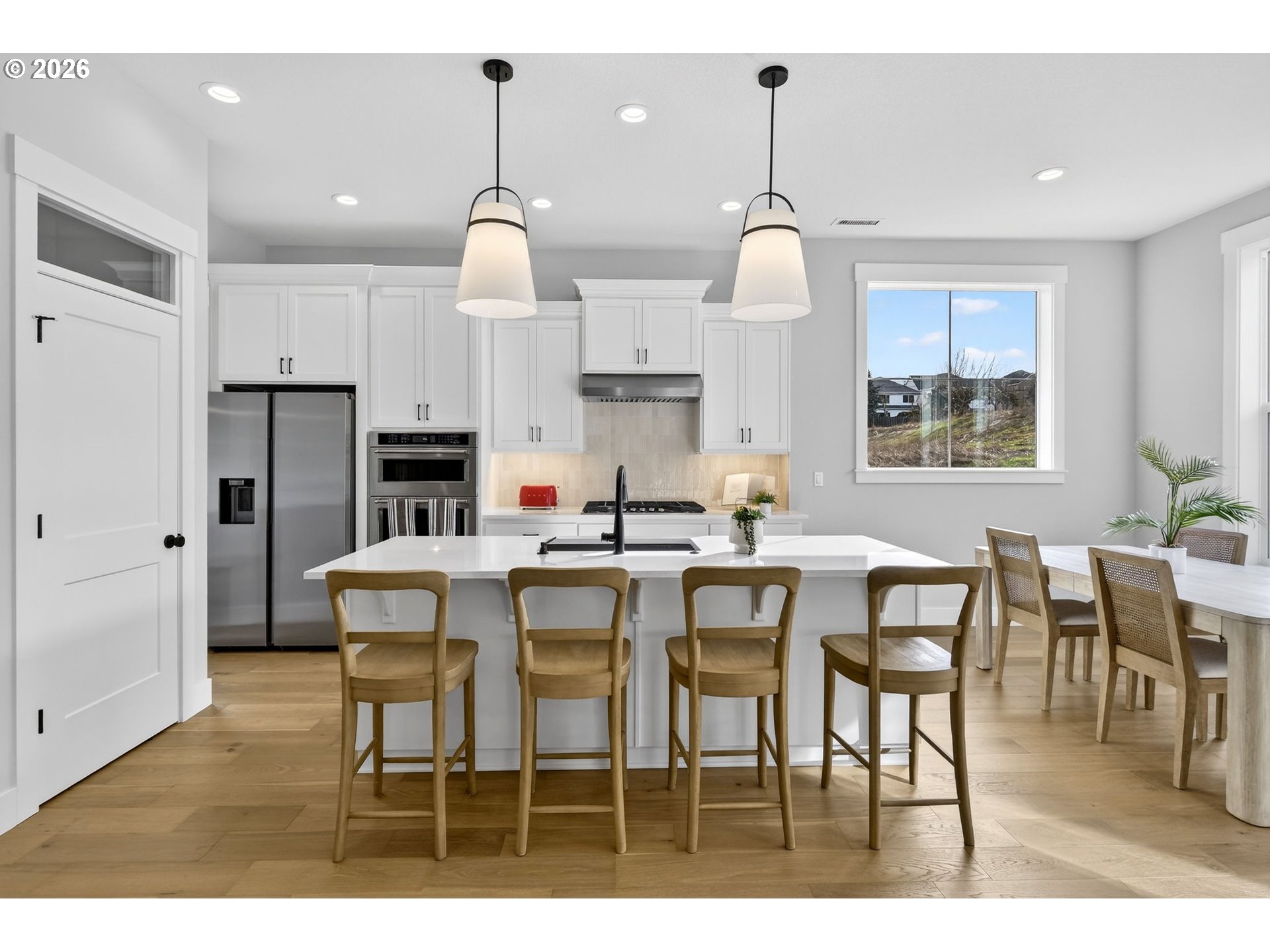 (503) 893-8874*OPEN FRI 3/6 FROM 4-6 PM, SAT & SUN MARCH 7TH & 8TH FROM 2-4 PM* NORTH facing! Built in 2025, this like-new Creekside at Westview corner lot home features soaring ceilings, modern finishes, and thoughtful design. Main floor offers hardwoods, den with French doors, formal dining room, gourmet kitchen with quartz counters, stainless appliances, eat-in island, and patio access, plus great room with fireplace and built-ins. Upstairs includes loft, primary suite with spa-like ensuite, three additional bedrooms, hall bath, and laundry with sink. Fully fenced backyard with patio. Located in Noyes Development’s 65-home community in Bethany, near Bethany Village shopping. Like new and lightly lived in and ready for you to move in!