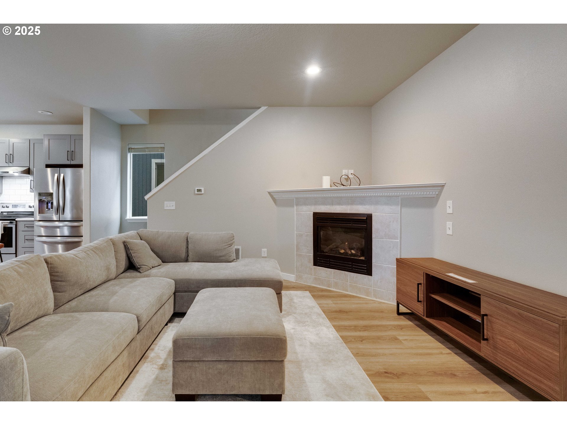 Tucked along a charming tree-lined street in Beaverton, this stylish 4-bedroom home blends comfort and personality at every turn! Step under the covered entrance into a cozy entry nook, then flow into the open-concept main level featuring a spacious living room with a gas fireplace, a dining area, and a gorgeous kitchen with a large island, stainless steel appliances, tiled backsplash, and tons of cabinet space. A sliding door off the dining area opens to a fully fenced, private backyard—ideal for BBQs, pets, or lazy weekend lounging. Upstairs, all four bedrooms and the laundry room keep things convenient, while the primary suite steals the show with vaulted ceilings and a private en suite. With an attached garage and a bright, inviting layout, this home has all the right vibes for easy living and effortless entertaining!