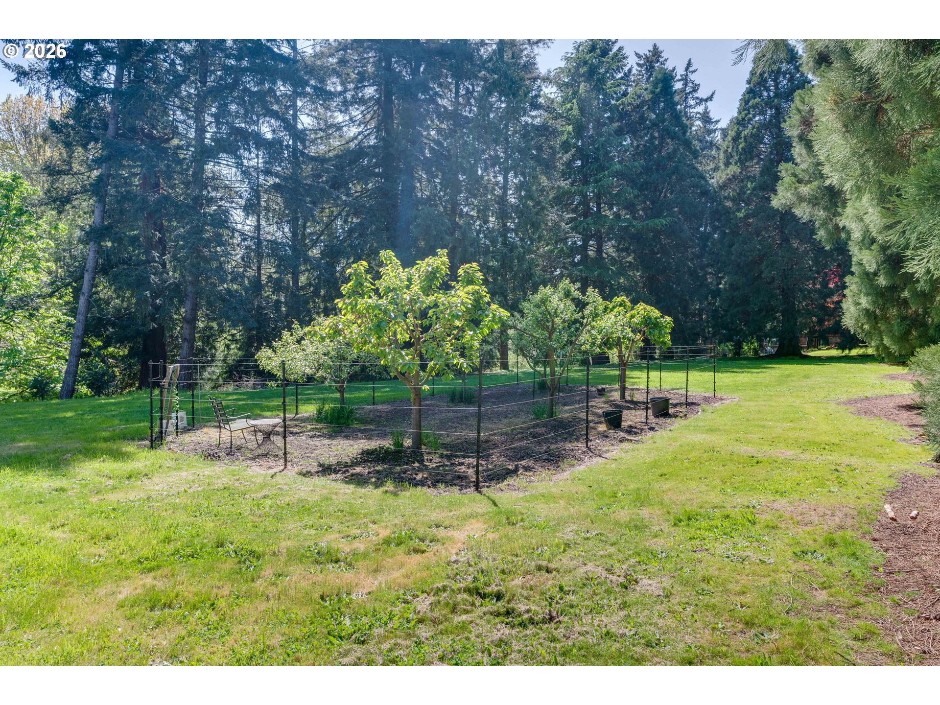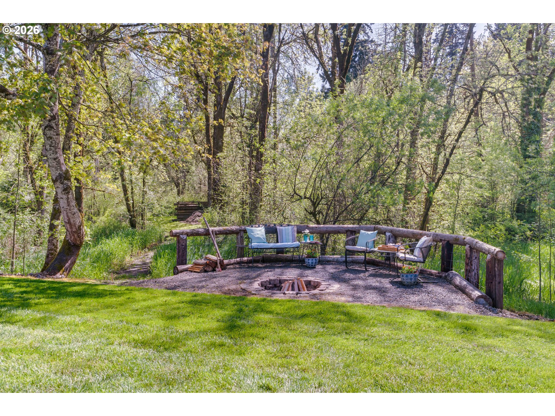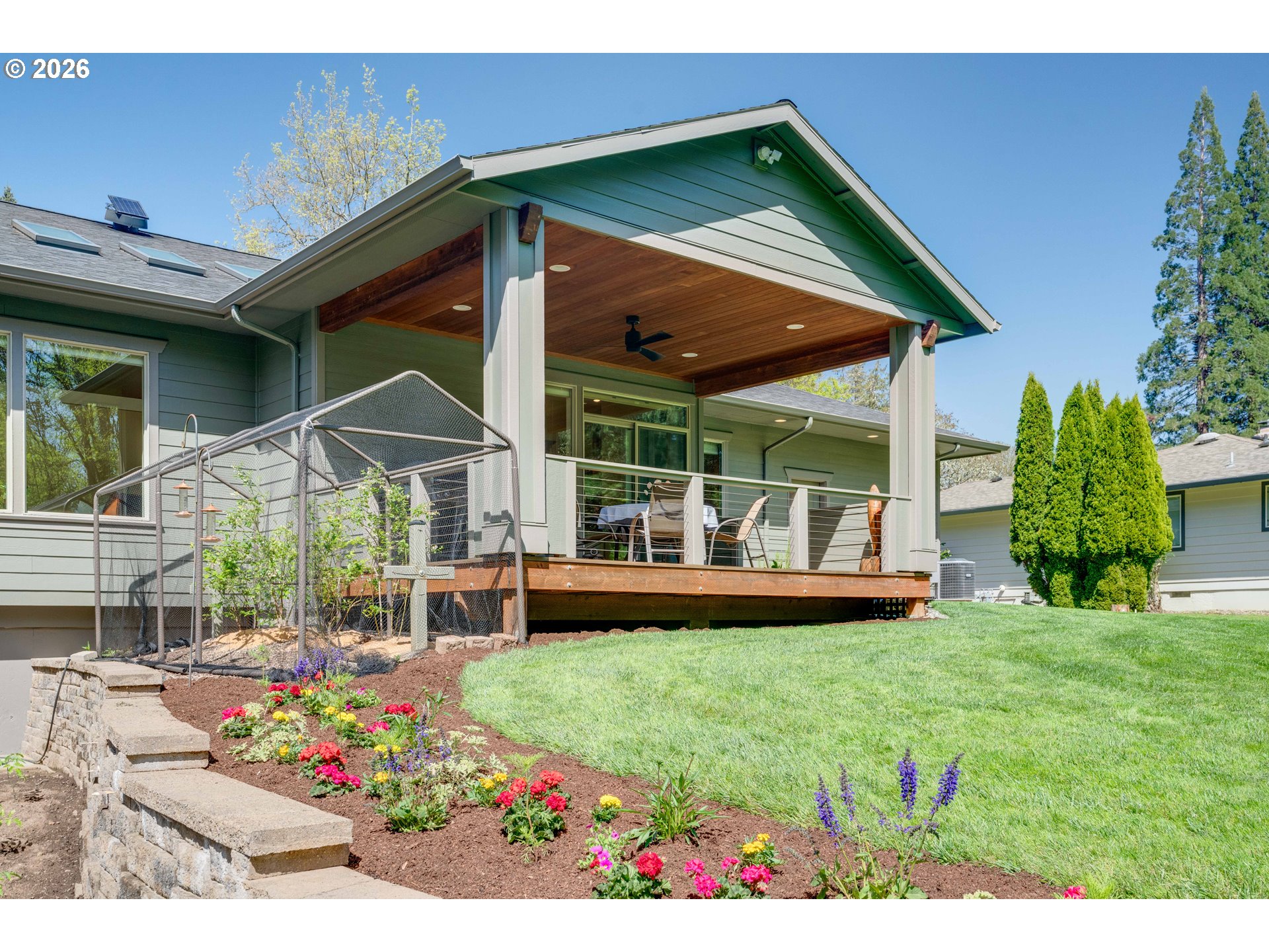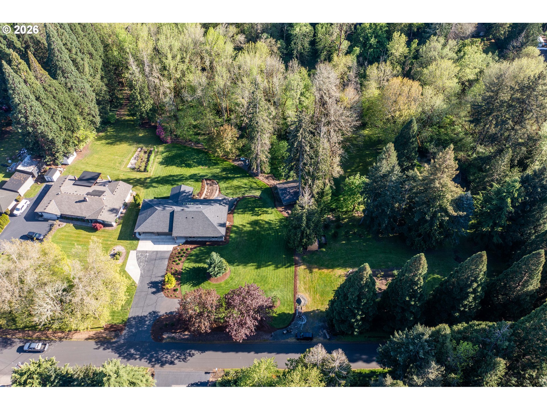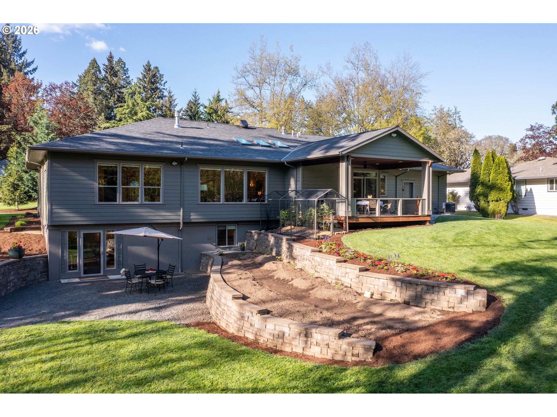 Tucked away on over two tranquil acres just minutes from the Nike campus and Tualatin Hills Nature Park, this exceptional property offers a rare balance of proximity and privacy. An everyday escape that feels worlds away. Thoughtfully designed for both comfortable living and effortless entertaining, the open main level is anchored by warm hickory finishes and expansive windows. The timeless kitchen, with double ovens, custom cabinetry, and a generous eating bar, flows seamlessly into the dining & living spaces, all oriented toward the sweeping backyard views. Step onto the covered deck to host sunset dinners, weekend BBQs, or quiet mornings immersed in the surrounding nature. The flexible lower level is ideal for multi-generational living, extended guest stays, or a family rec room. With its own entrance to a spacious patio courtyard, a large living area with mini bar, bedroom, full bath, and ample storage, this level lives like a home within a home. Outdoors, the property unfolds into a curated landscape designed for both beauty and function. Established gardens, mature blueberries, orchard, and a kitchen herb garden provide a true farm-to-table experience. A firepit perched at the edge of the protected wetlands creates an unforgettable setting for gathering under the stars. Built in 2015 by a custom homebuilder for his own personal residence, every detail reflects quality craftsmanship and intentional design. From Earth Advantage certification to high-end systems and finishes, this home has been meticulously maintained and thoughtfully upgraded throughout. With a 3-car garage, separate shed, central vacuum, and proximity to trails, nature parks, and transit, this is a property that truly offers it all: space, serenity, and connection.