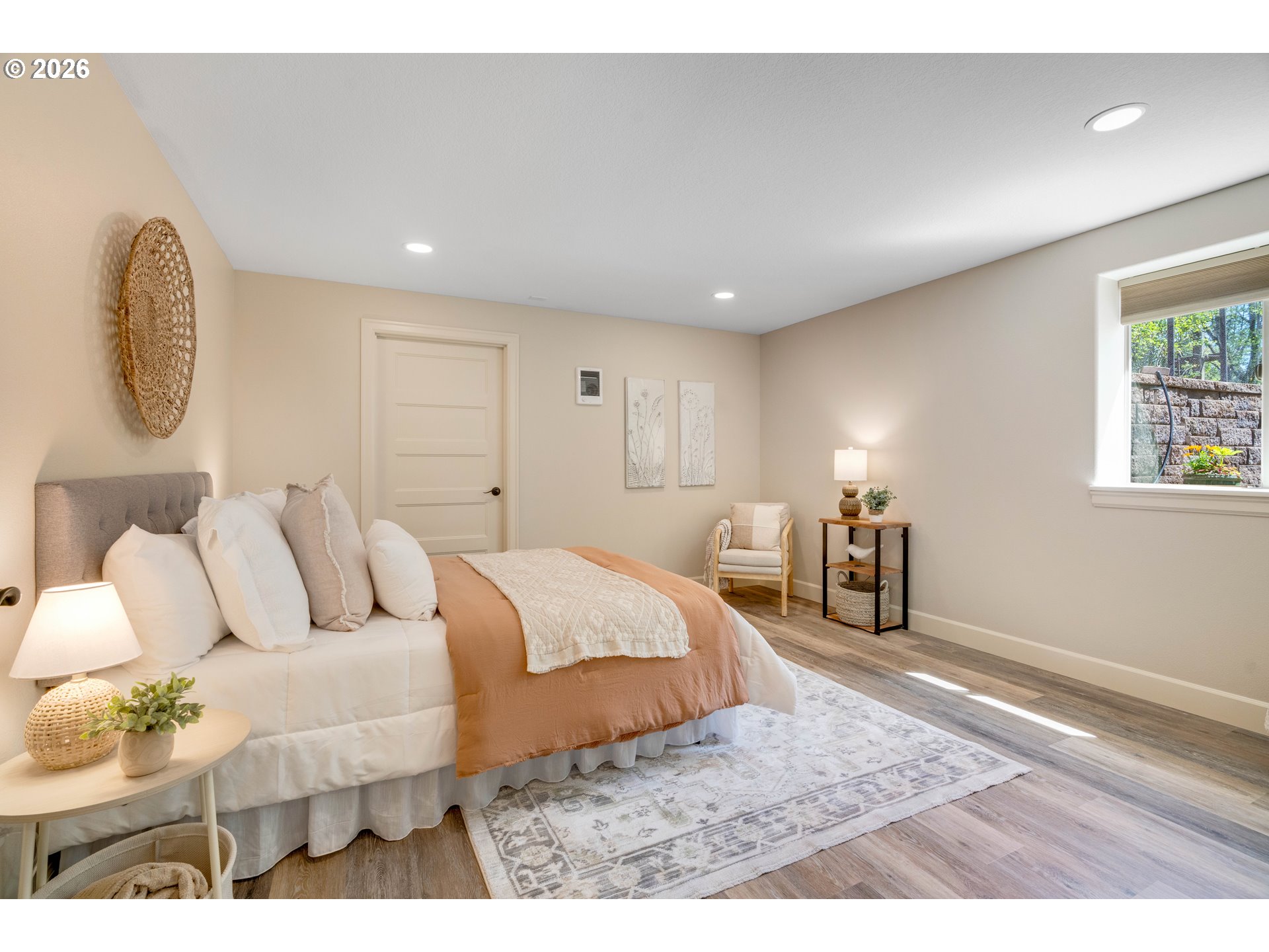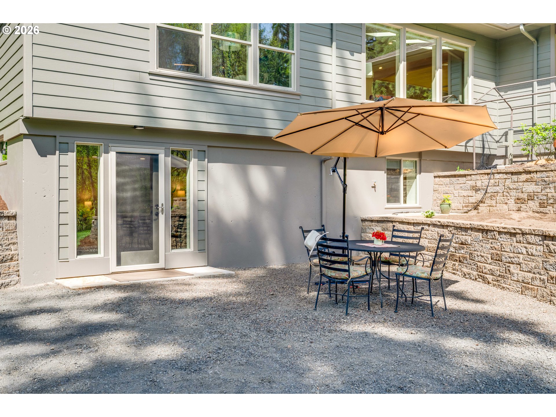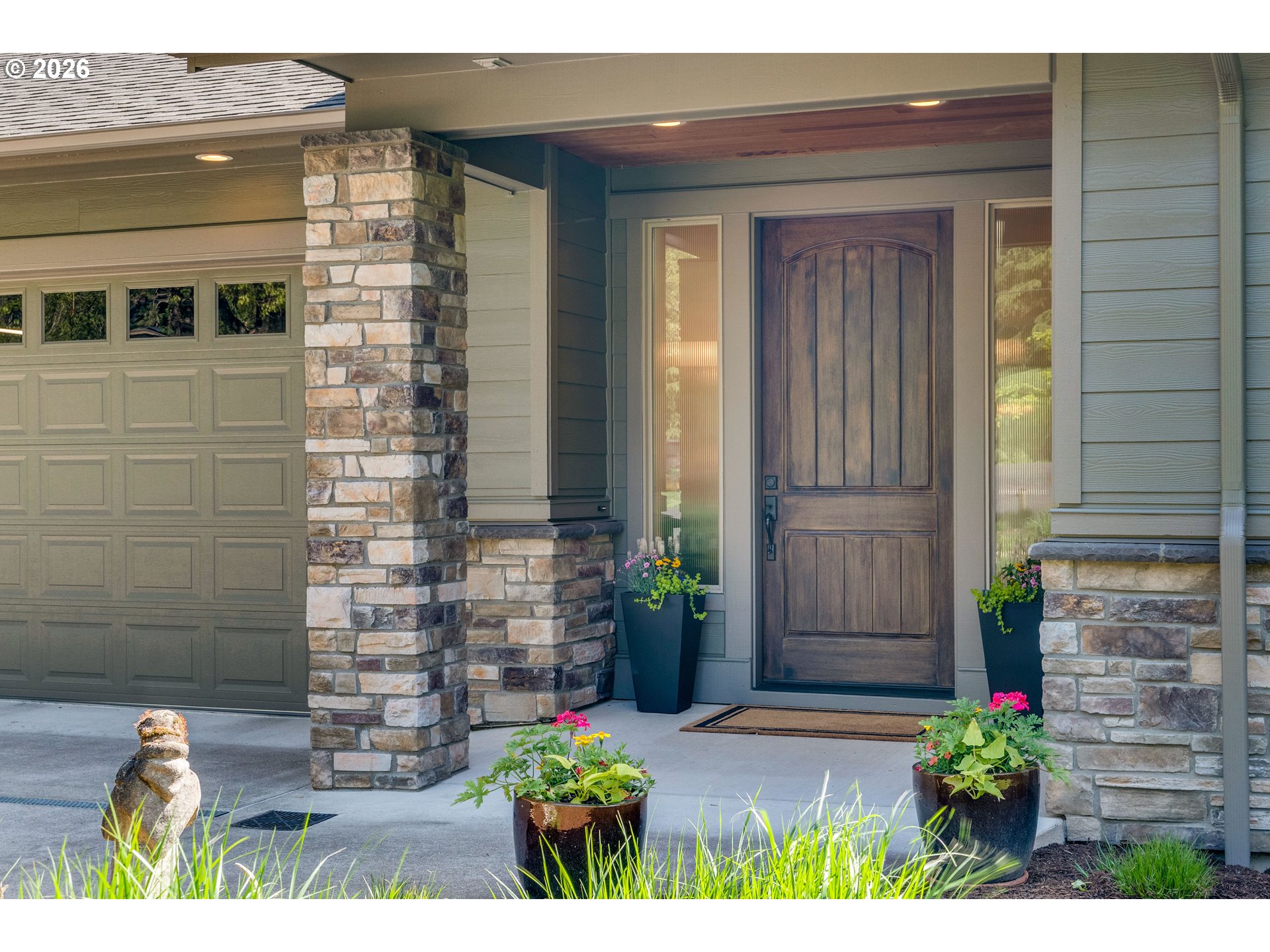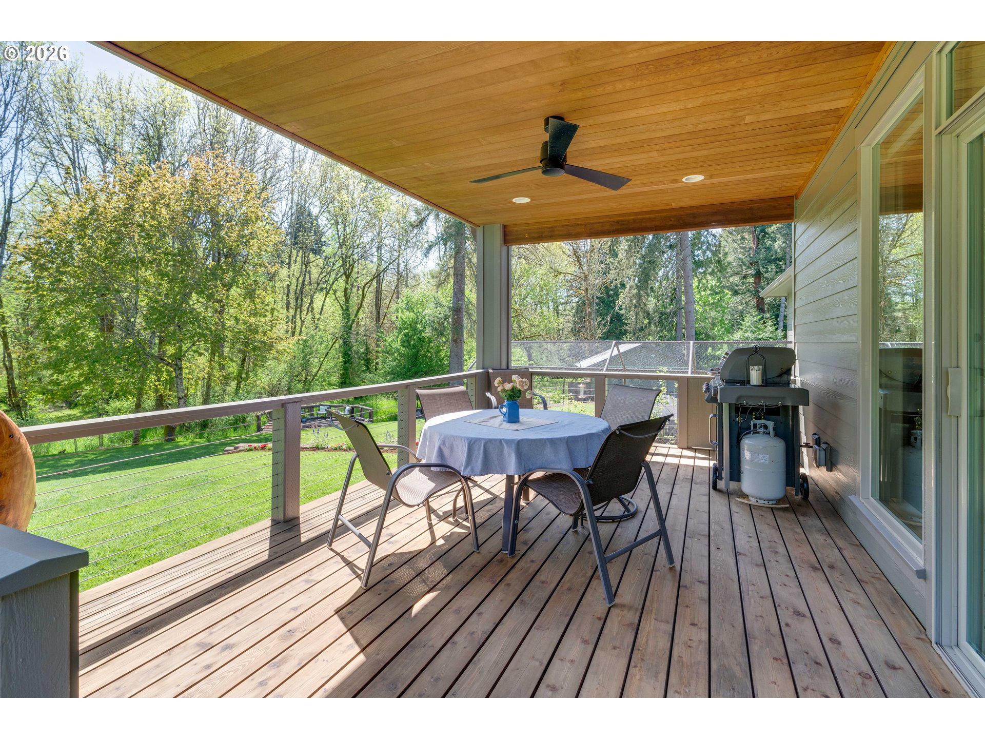 Tucked away on over two tranquil acres just minutes from the Nike campus and Tualatin Hills Nature Park, this exceptional property offers a rare balance of proximity and privacy. An everyday escape that feels worlds away. Thoughtfully designed for both comfortable living and effortless entertaining, the open main level is anchored by warm hickory finishes and expansive windows. The timeless kitchen, with double ovens, custom cabinetry, and a generous eating bar, flows seamlessly into the dining & living spaces, all oriented toward the sweeping backyard views. Step onto the covered deck to host sunset dinners, weekend BBQs, or quiet mornings immersed in the surrounding nature. The flexible lower level is ideal for multi-generational living, extended guest stays, or a family rec room. With its own entrance to a spacious patio courtyard, a large living area with mini bar, bedroom, full bath, and ample storage, this level lives like a home within a home. Outdoors, the property unfolds into a curated landscape designed for both beauty and function. Established gardens, mature blueberries, orchard, and a kitchen herb garden provide a true farm-to-table experience. A firepit perched at the edge of the protected wetlands creates an unforgettable setting for gathering under the stars. Built in 2015 by a custom homebuilder for his own personal residence, every detail reflects quality craftsmanship and intentional design. From Earth Advantage certification to high-end systems and finishes, this home has been meticulously maintained and thoughtfully upgraded throughout. With a 3-car garage, separate shed, central vacuum, and proximity to trails, nature parks, and transit, this is a property that truly offers it all: space, serenity, and connection.