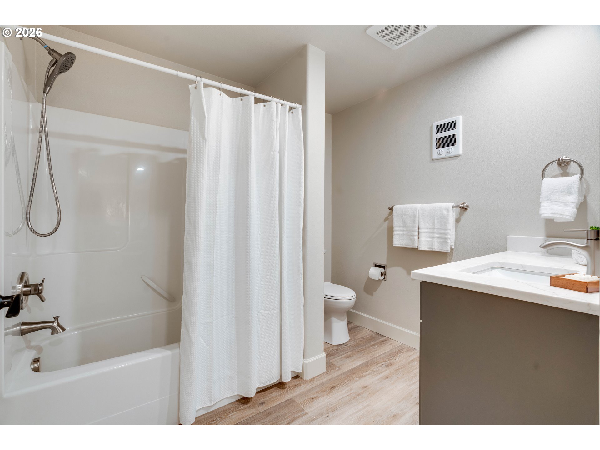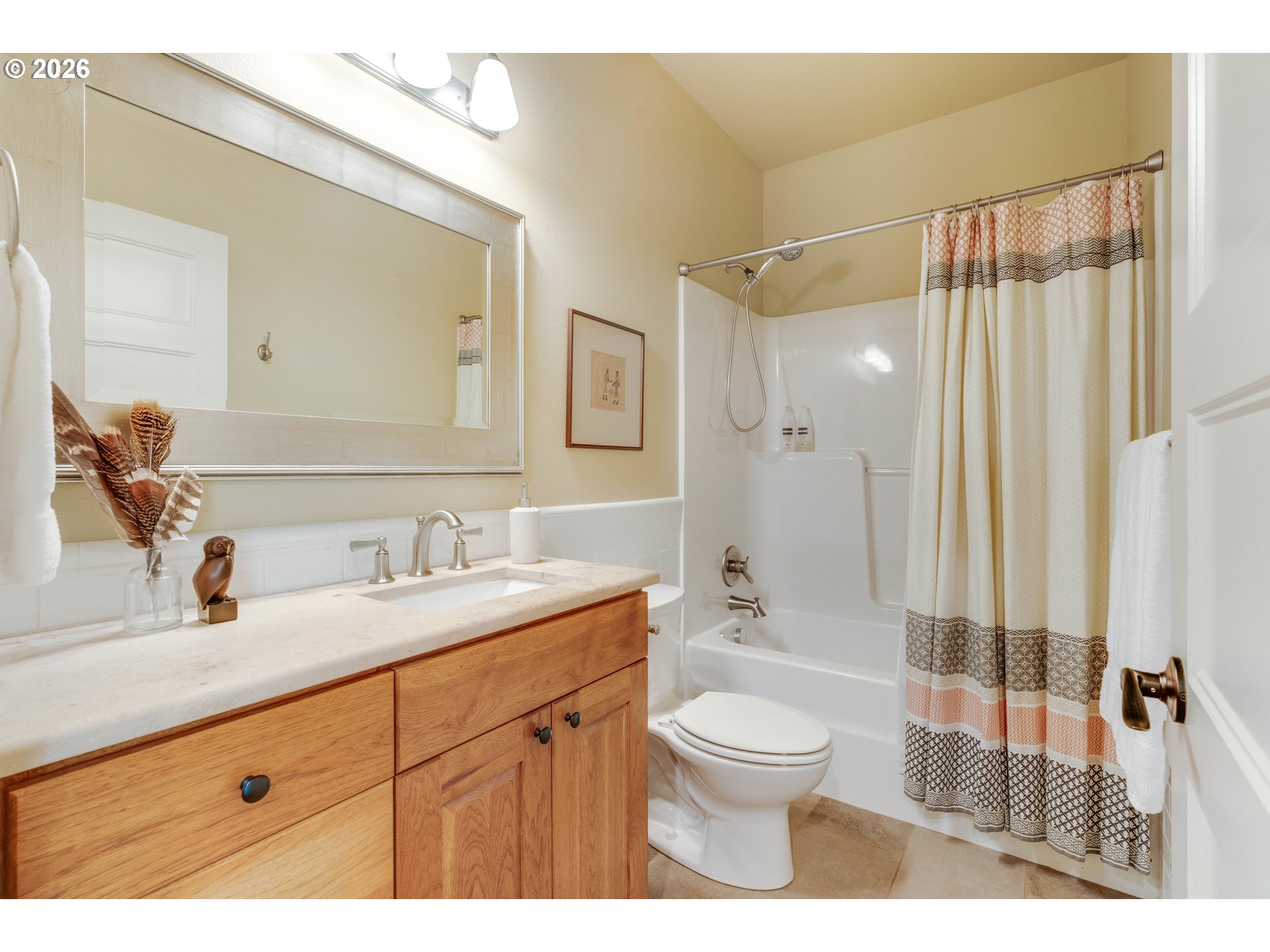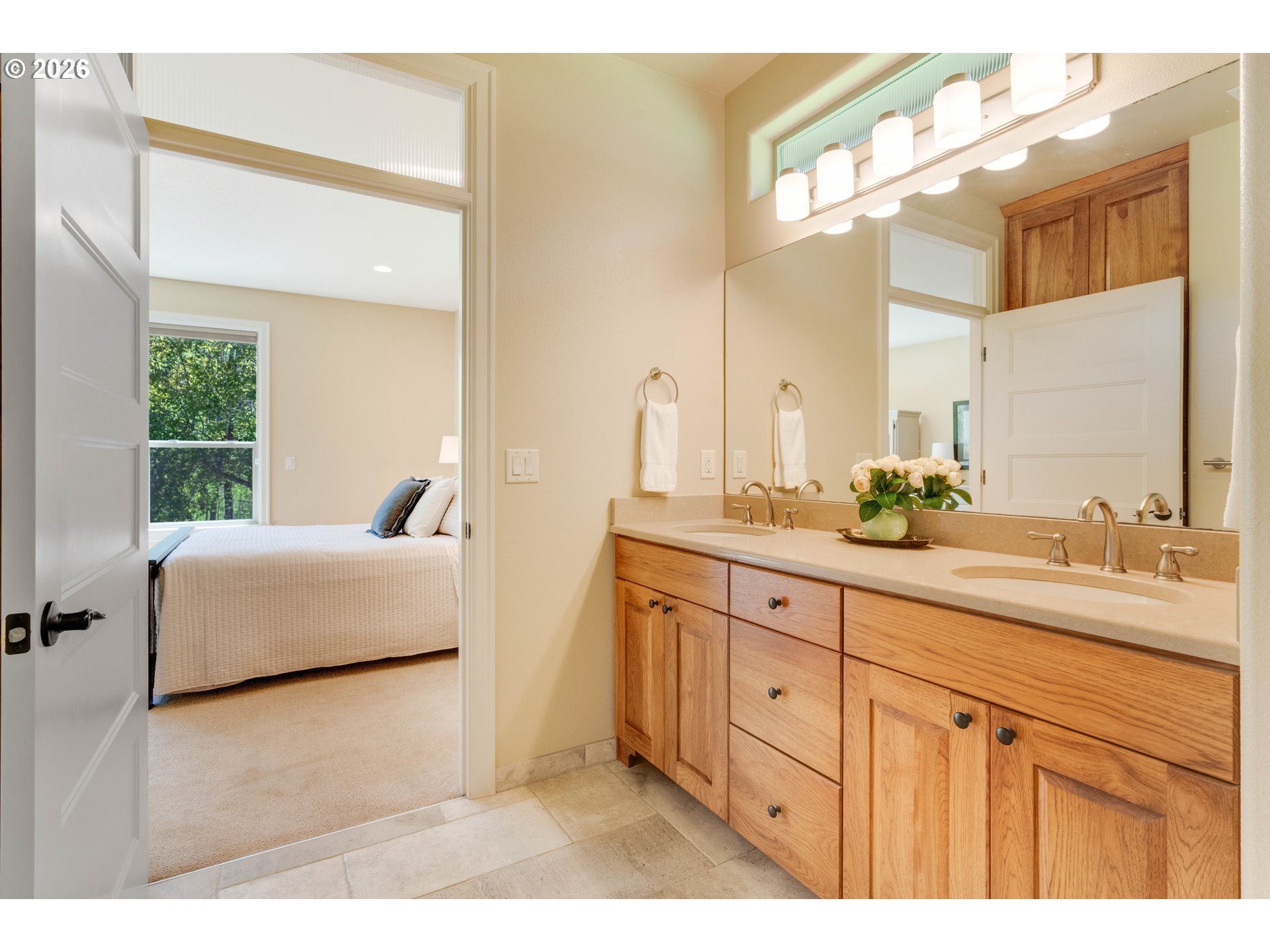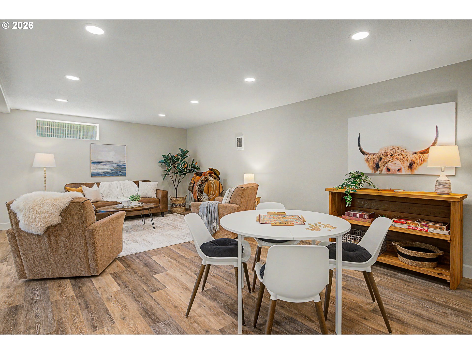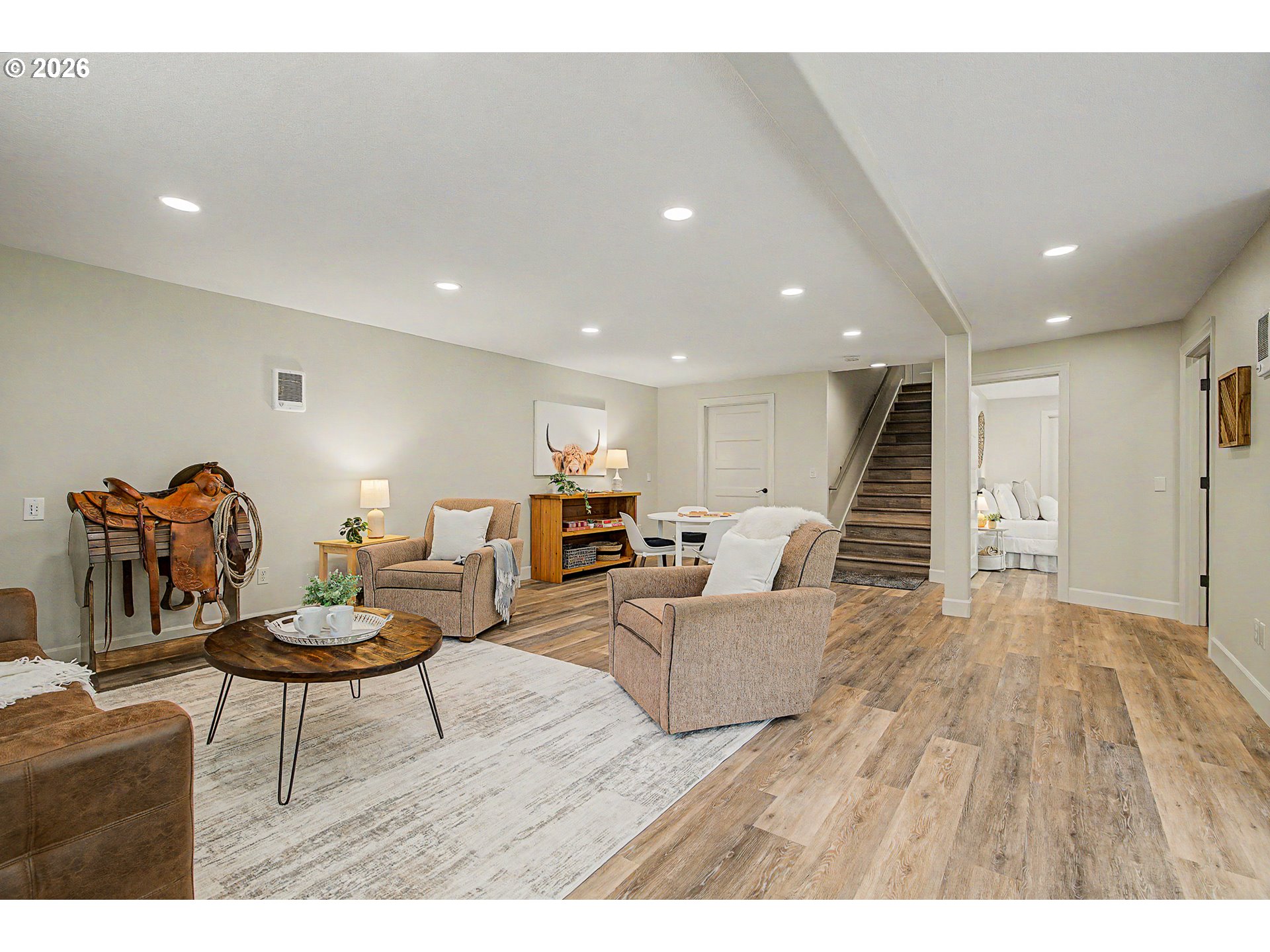 Tucked away on over two tranquil acres just minutes from the Nike campus and Tualatin Hills Nature Park, this exceptional property offers a rare balance of proximity and privacy. An everyday escape that feels worlds away. Thoughtfully designed for both comfortable living and effortless entertaining, the open main level is anchored by warm hickory finishes and expansive windows. The timeless kitchen, with double ovens, custom cabinetry, and a generous eating bar, flows seamlessly into the dining & living spaces, all oriented toward the sweeping backyard views. Step onto the covered deck to host sunset dinners, weekend BBQs, or quiet mornings immersed in the surrounding nature. The flexible lower level is ideal for multi-generational living, extended guest stays, or a family rec room. With its own entrance to a spacious patio courtyard, a large living area with mini bar, bedroom, full bath, and ample storage, this level lives like a home within a home. Outdoors, the property unfolds into a curated landscape designed for both beauty and function. Established gardens, mature blueberries, orchard, and a kitchen herb garden provide a true farm-to-table experience. A firepit perched at the edge of the protected wetlands creates an unforgettable setting for gathering under the stars. Built in 2015 by a custom homebuilder for his own personal residence, every detail reflects quality craftsmanship and intentional design. From Earth Advantage certification to high-end systems and finishes, this home has been meticulously maintained and thoughtfully upgraded throughout. With a 3-car garage, separate shed, central vacuum, and proximity to trails, nature parks, and transit, this is a property that truly offers it all: space, serenity, and connection.