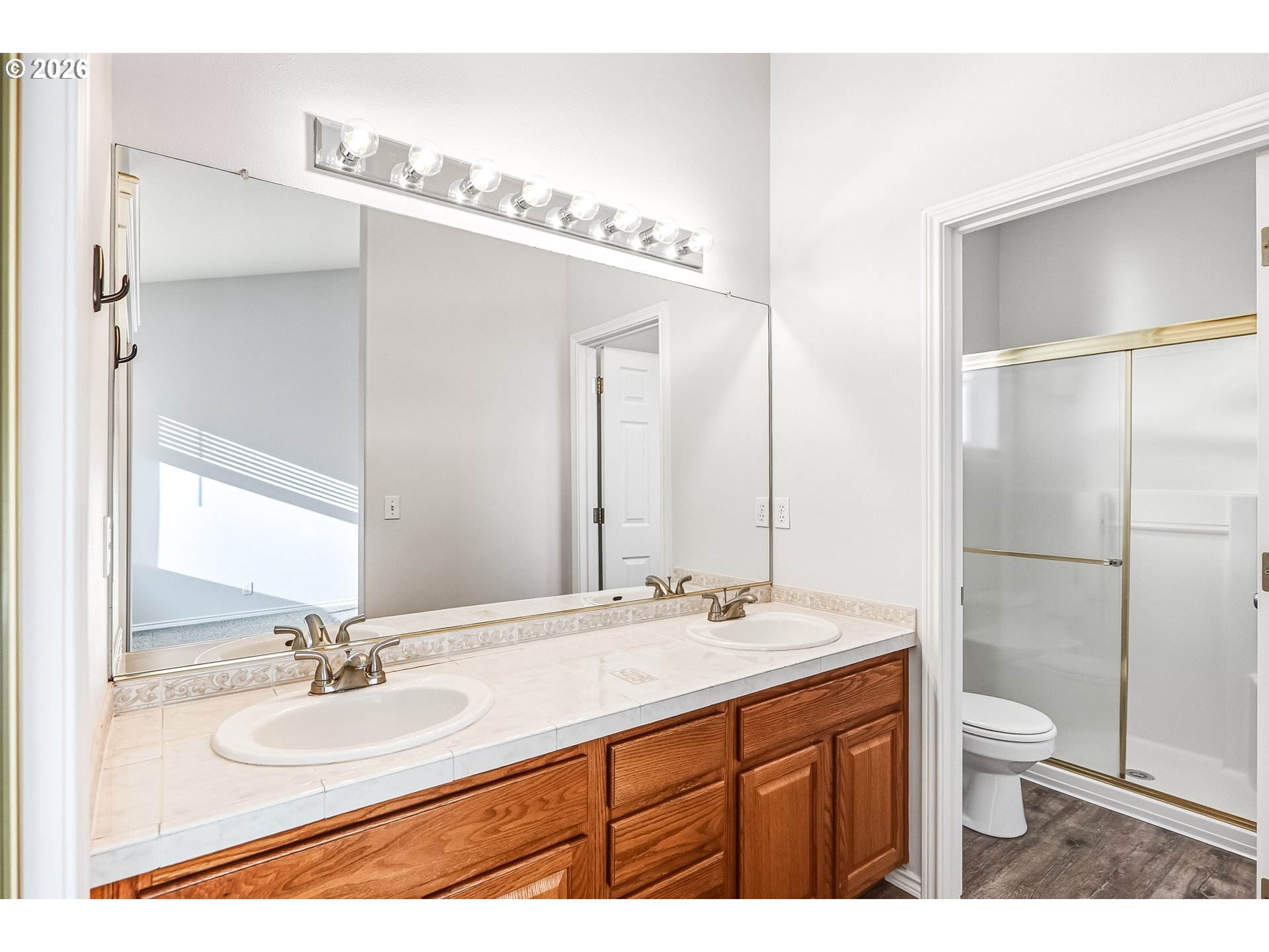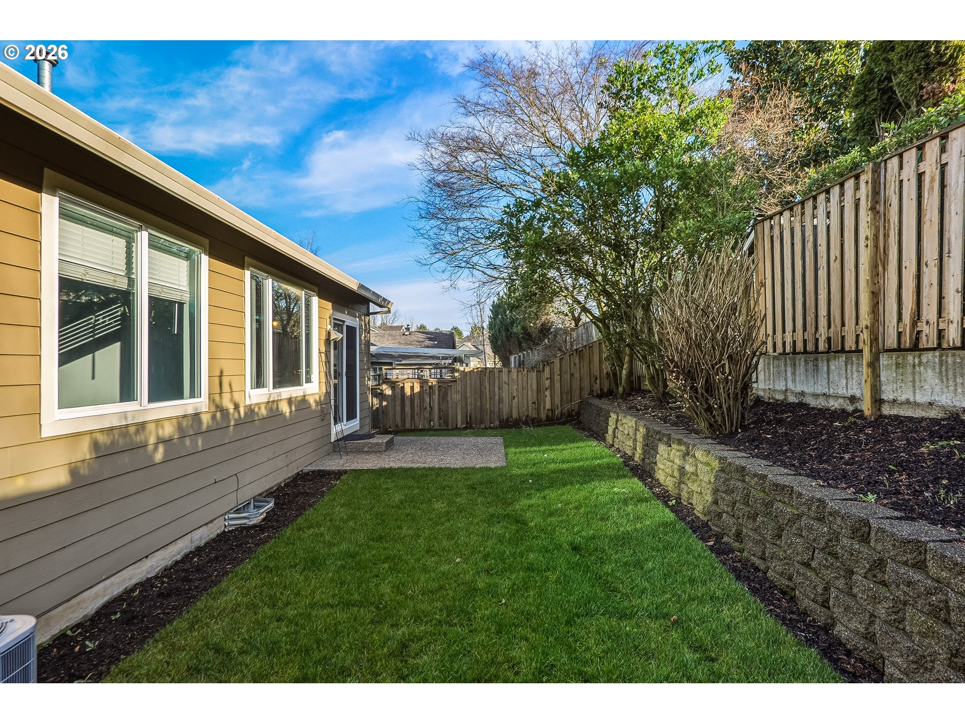 Single-level living in the highly coveted Woodhaven neighborhood. This well cared for home offers high ceilings throughout and a thoughtful layout designed for comfort and everyday living. Recent updates include new carpet, fresh interior paint, a new range, and a newer roof. The living room features vaulted ceilings and a cozy double-sided fireplace that connects seamlessly to the family room, creating a warm and inviting great room feel. The kitchen includes tile backsplash, an eat bar, stainless steel appliances, built-in microwave, disposal, and a dining nook with vaulted ceilings and sliding glass doors to the backyard. The family room offers additional living space with vaulted ceilings, ceiling fan, and shared fireplace, ideal for relaxing or gathering. The primary bedroom features vaulted ceilings, double sinks, a walk-in shower, and a walk-in closet with organizer. Two additional bedrooms provide flexibility, including one with a walk-in closet and closet organizer. Additional highlights include A/C, dedicated laundry with storage, and a fully fenced backyard with lawn, patio, and a large porch, perfect for outdoor enjoyment. Conveniently located near top-rated schools, parks, trails, and just minutes from Old Town Sherwood.