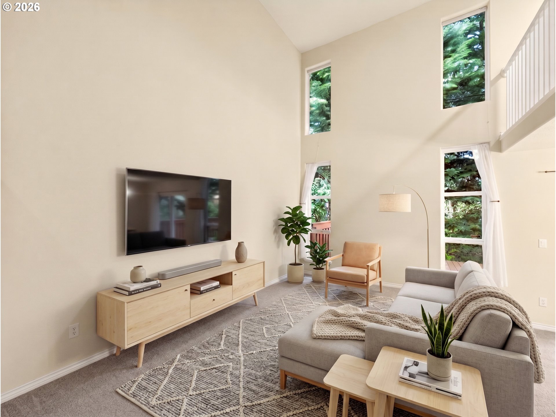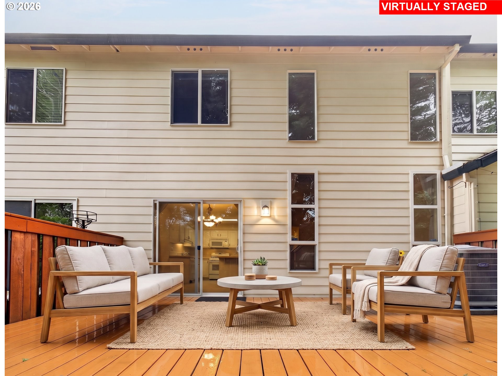 **OPEN HOUSE SUNDAY, 4/26 from 11:00-1:00 ** This charming Sherwood townhome stands out w/2-story living room that has large windows & views of the surrounding green space. The floor plan has a natural flow between the kitchen, dining & living areas. A nice size loft adds additional flex space. Living room opens to dining room w/sliding door to deck. Kitchen features eating island & new LVT (luxury vinyl plank) flooring. Gas range, refrigerator & dishwasher updated in 2023 & disposal 2024. Primary bedroom has w-in closet & ceiling fan. Backing to trees & a seasonal stream, the spacious deck provides a comfortable setting to relax and entertain. Garage includes shelving, cabinets, workbench & overhead storage racks. Brand new carpet and LVT flooring throughout (2026). Roof (2020). Heating & AC (2024). Leaf guard gutters (2022). Security system. Refrigerator, washer & dryer included. Located near schools, Woodhaven & Snyder parks, Old Town Sherwood w/shops, dining, community events & seasonal Farmer’s Market, Parkway Village w/shopping, dining & Langer’s Entertainment Center. This home is move-in ready.