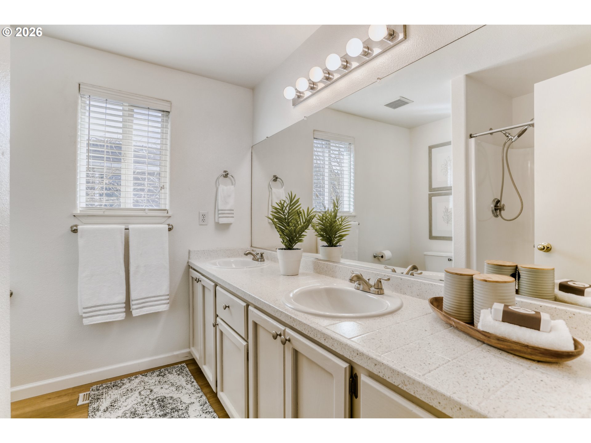 Welcome home to this charming, move-in ready, 2-story house situated on an expansive, treed corner lot in a quiet neighborhood. Thoughtfully updated and fresh interior and exterior paint throughout. Step through the welcoming entry way which opens to a light, spacious living area featuring a cozy, wood burning fireplace. The bright kitchen comes fully equipped (fridge included), and features a convenient eat-in bar. The kitchen area flows directly into the large dining room. This home is designed for easy indoor/outdoor entertaining with a slider from the dining room leading to the backyard. Upstairs, you’ll find the over-sized primary suite, perfectly designed for calm and relaxation with vaulted ceilings, extra seating area for a reading nook or desk space, large walk in closet and en suite bathroom complete with double sinks.There are two additional bedrooms upstairs along with a second full bathroom with lovely updates. In spring and summertime, the backyard truly blossoms. The large covered back patio provides a fun and private outdoor space ideal for relaxing, or entertaining year round! The fully fenced backyard is your oasis retreat, with its beautiful fruit trees (Asian pears and apple), planters with bamboo and the patio grape vine that provides welcome shade and delicious grapes during the summer months. You will love the tasteful updates and special features of this home, including luxury vinyl flooring (for a modern, clean look), air conditioning, energy efficient solar panels (owned), and a Tesla charger. Come see this wonderful home in person to truly appreciate all that it has to offer!