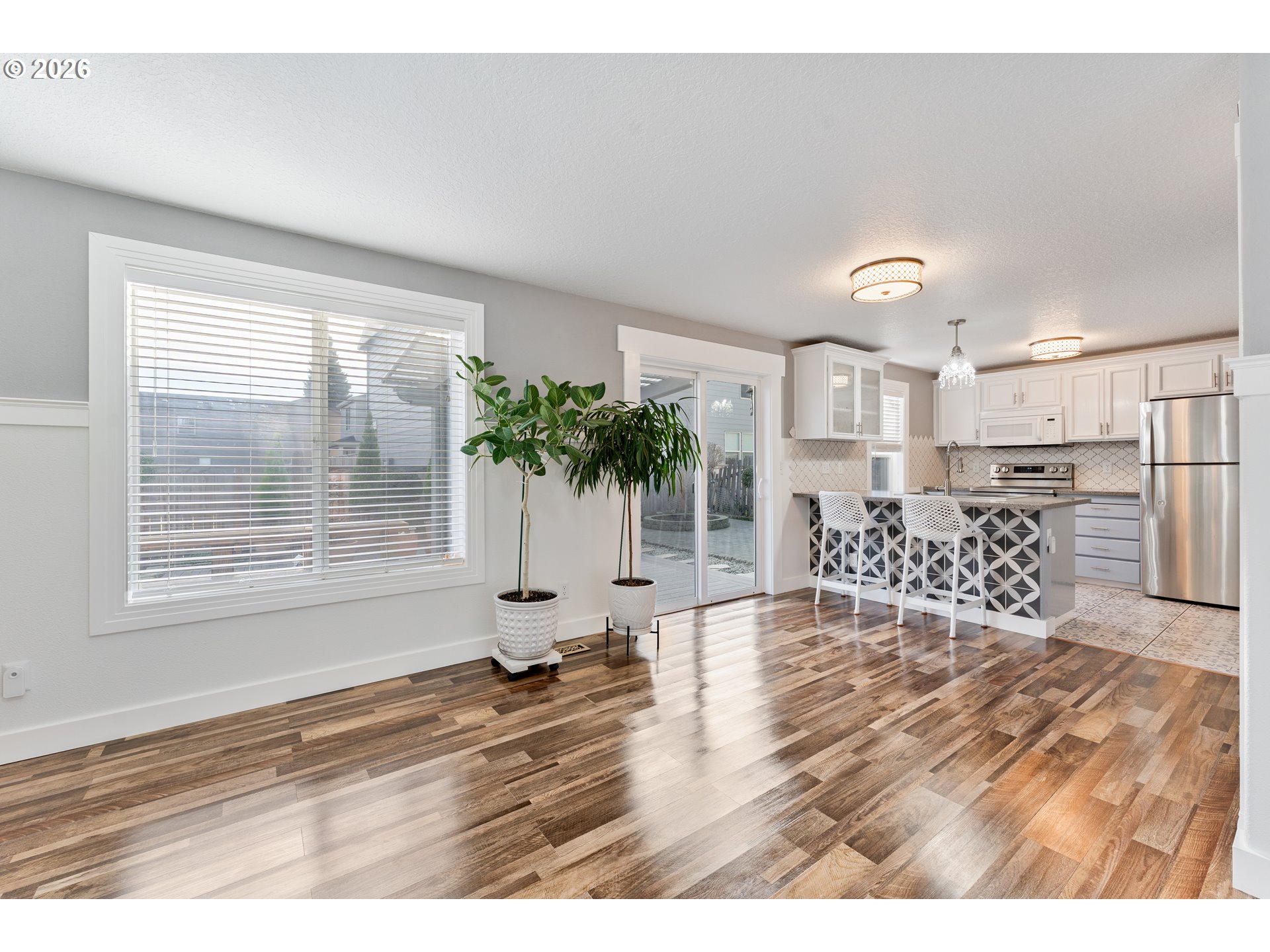 Welcome to this meticulously updated 3-bedroom, 2.5-bathroom home and has been beautifully refreshed with new interior and exterior paint and completely upgraded with wainscoting walls and gorgeous laminated wood flooring. Where the chef-inspired kitchen features stainless steel appliances, beautiful Quartz countertop, an inviting eat-at-bar and modern finishes. Charming dining area perfect for an entertaining. Just front of the kitchen, step onto the expansive back deck—an entertainer’s paradise designed for hosting gatherings or unwinding in style. Upstairs, the peaceful primary suite offers a private ensuite bathroom and a spacious creating the ideal retreat. The exterior boasts durable Hardie Plank siding with a new coat of paint, and the 7year-old- roof adds peace of mind. A prime location in a Beaverton neighborhood with shopping and dining optional. Don’t miss out on this incredible opportunity—schedule your showing today and discover the unparalleled lifestyle!