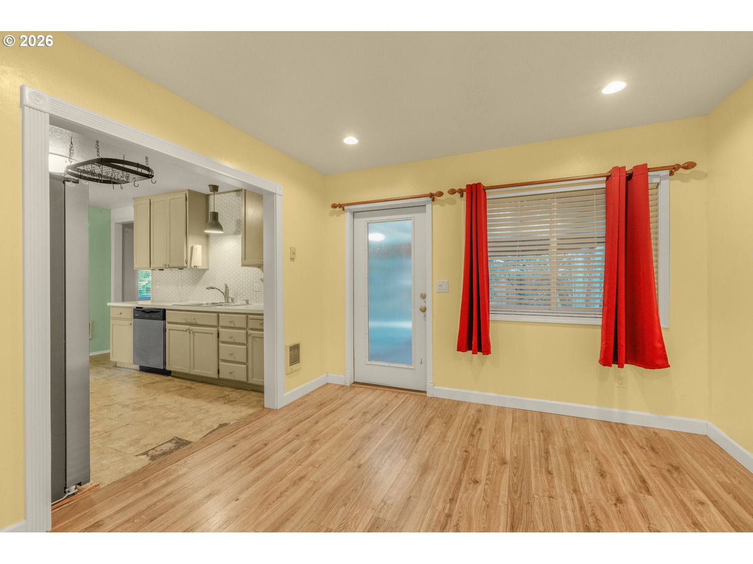Charming cottage on a large, private lot with incredible potential! The oversized lot is zoned for multi-family (buyer to do due diligence), offering future development opportunities. Inside, you’ll find a spacious living room with hardwood floors and a cozy fireplace. The kitchen features stainless steel appliances and flows into an adjacent dining area with a door leading to a covered patio making it perfect for indoor/outdoor entertaining. The home offers two comfortable bedrooms and an updated bathroom with a tub/shower combo. A dedicated laundry room with built-ins and backyard access doubles as a functional mudroom that's ideal after gardening or outdoor activities. The fully fenced backyard provides space for a garden or additional outdoor living. Major updates include approximately 90% new siding, solar panels installed in 2016/2017, new windows (2021/2022), all new doors except the front, and a newer roof (approx. 2014). Excellent location close to MAX, the high-tech corridor, Intel, and Nike. A rare opportunity with both charm and future potential!