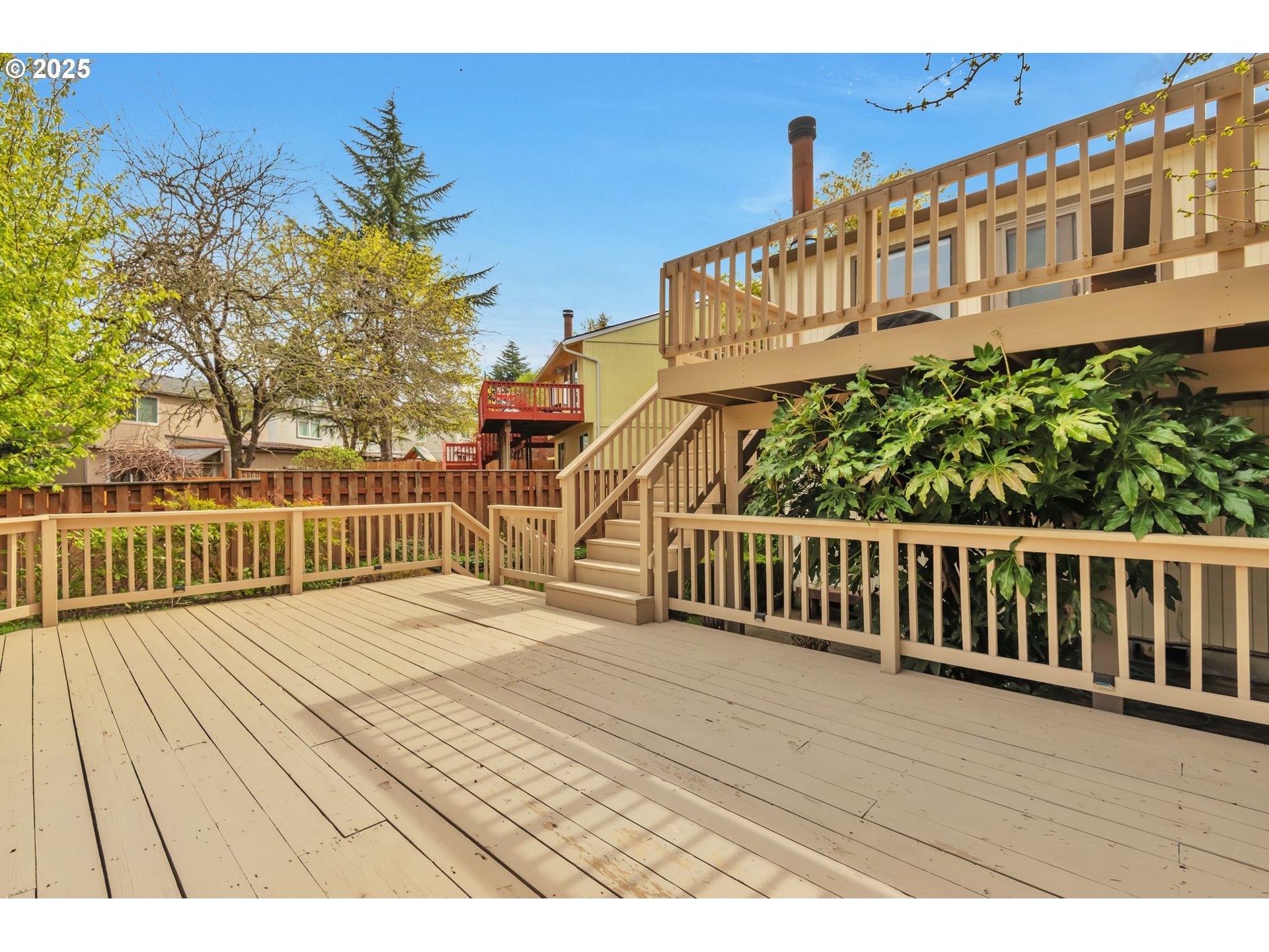 Situated in the desirable Burns Ridge, this home offers 3 bedrooms and 2 full baths. It features a formal entry with a split-level design and an open layout on the main floor. The living room includes a gas fireplace and large windows that welcome abundant natural light. The kitchen is equipped with all appliances, ample storage, and a dining area with a sliding door leading to the backyard deck. The master bedroom boasts an ensuite bathroom and a walk-in closet. The lower level includes two well-sized bedrooms and a laundry area. Outside, enjoy the spacious, dual-level deck, which is perfect for entertaining and overlooks a beautifully landscaped backyard.