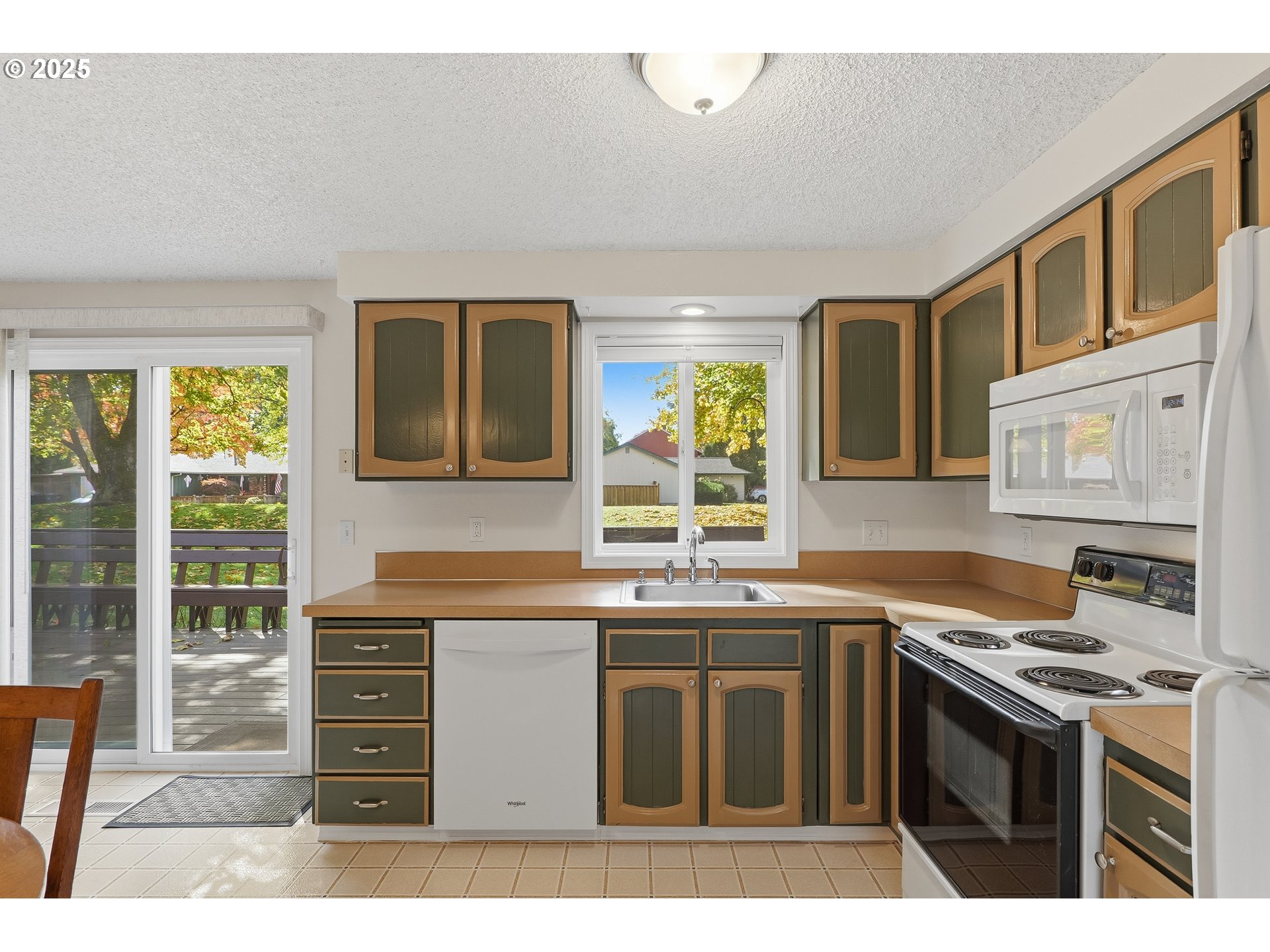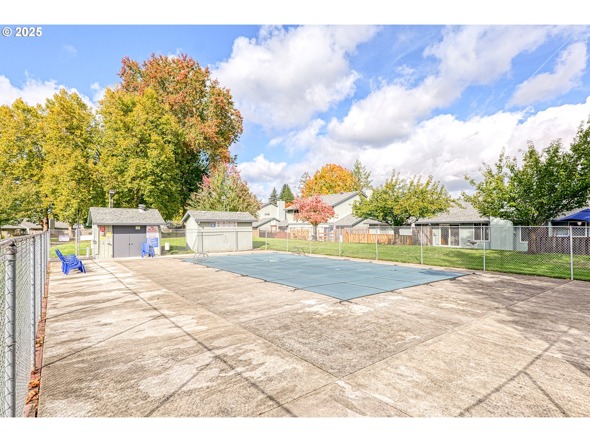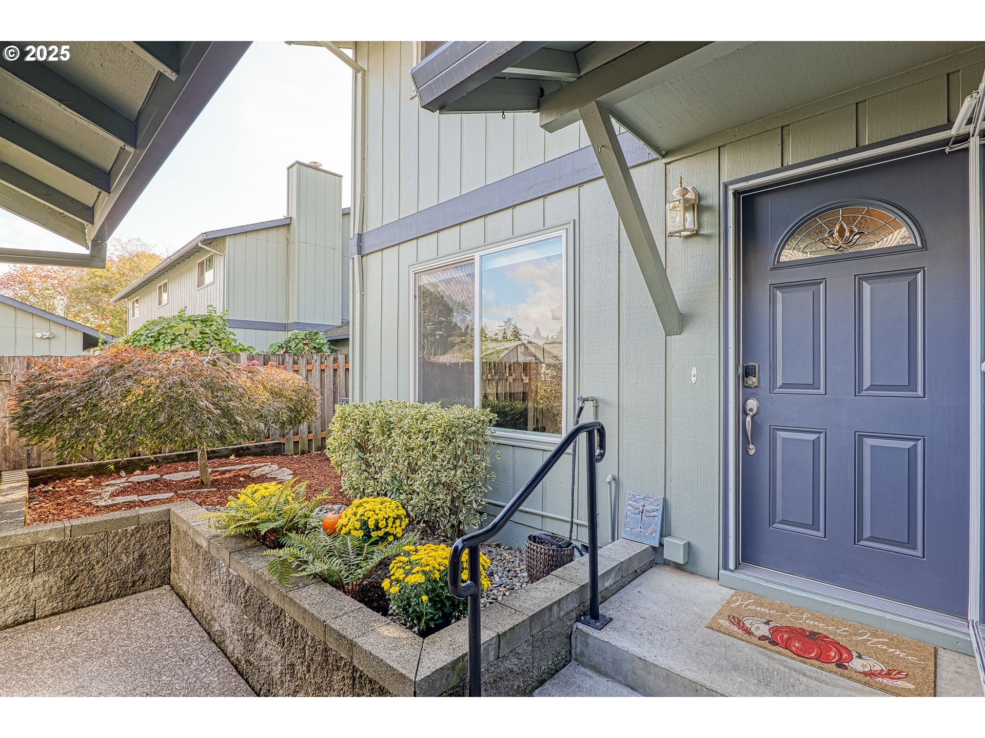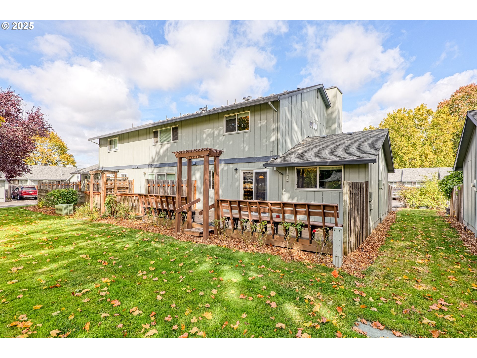Beautiful Minter Bridge townhome with oversized 1 car garage, extra parking space, 28' x 10' Trex deck with arbor & benches backs to green space. Bedroom & bathroom on the main floor. 2 additional bedrooms & full bath up. Main floor bedroom with built in cabinets & shelves could be used as an office. Living room with wood burning fireplace. Laminate flooring + new carpet. Large kitchen with eating area. New built-in microwave over stove, newer dishwasher. Windows with broken seals have been replaced. All new caulking around windows & doors. Interior professionally painted in 2025. New vapor barrier & heat duct insulation installed in crawl space in 2025. New oversized heat pump with booster fan to handle extreme temperatures. Inspected electrical brought up to current codes. In 2020 HOA installed a new 30 year roof with double tear off, new gutters, downspouts, and doubled the roof vents. HOA made siding repairs to all units in 2023 with new Miller paint on all exteriors. HOA is self managed with reasonable monthly fee of $206. HOA includes a swimming pool, green belt & walking paths with security lighting at night, and exterior maintenance. Convenient location with easy access to park, schools, shopping & dining. One mile to Shute park & aquatic center. [Home Energy Score = 5. HES Report at https://rpt.greenbuildingregistry.com/hes/OR10242516]