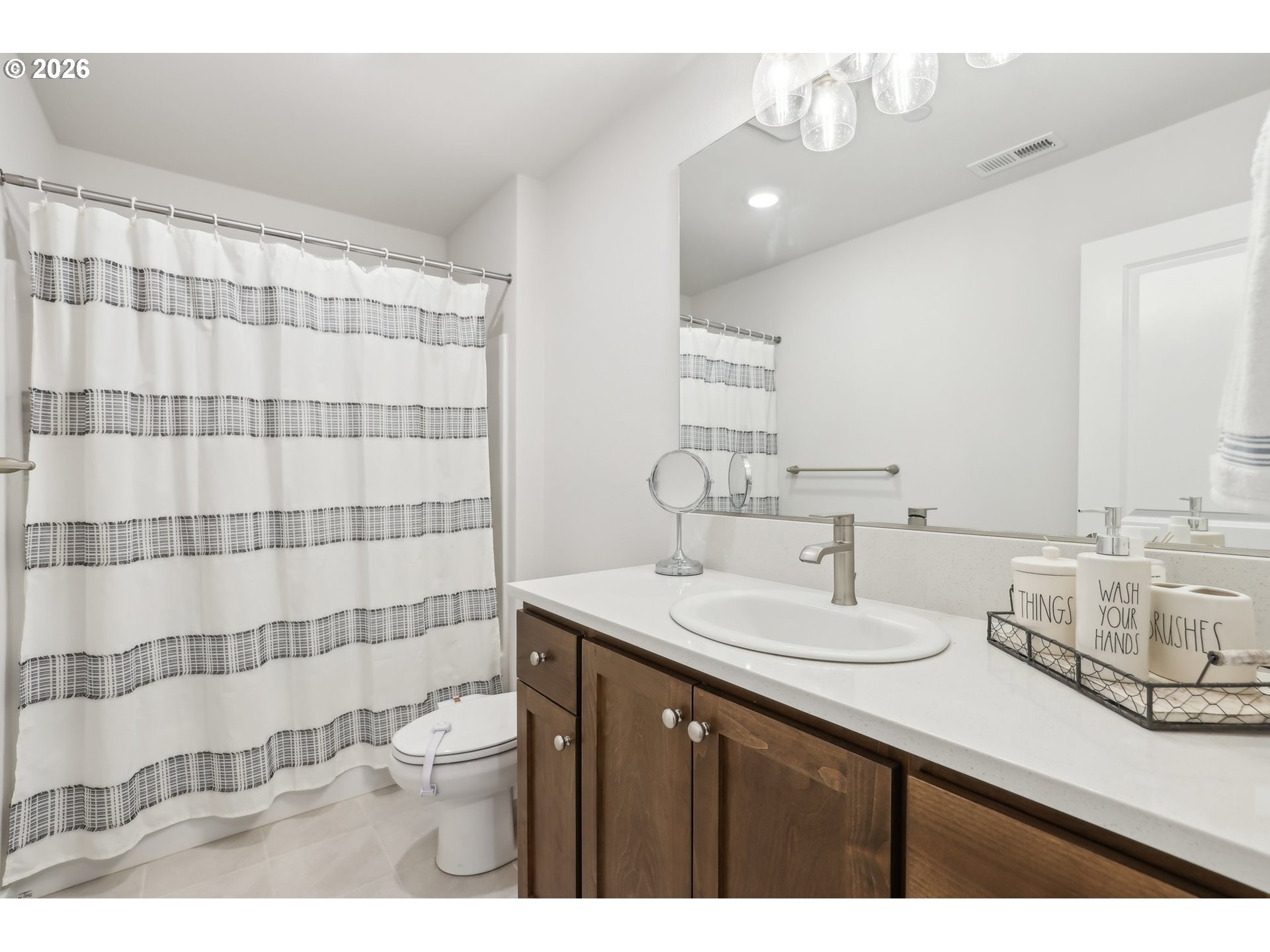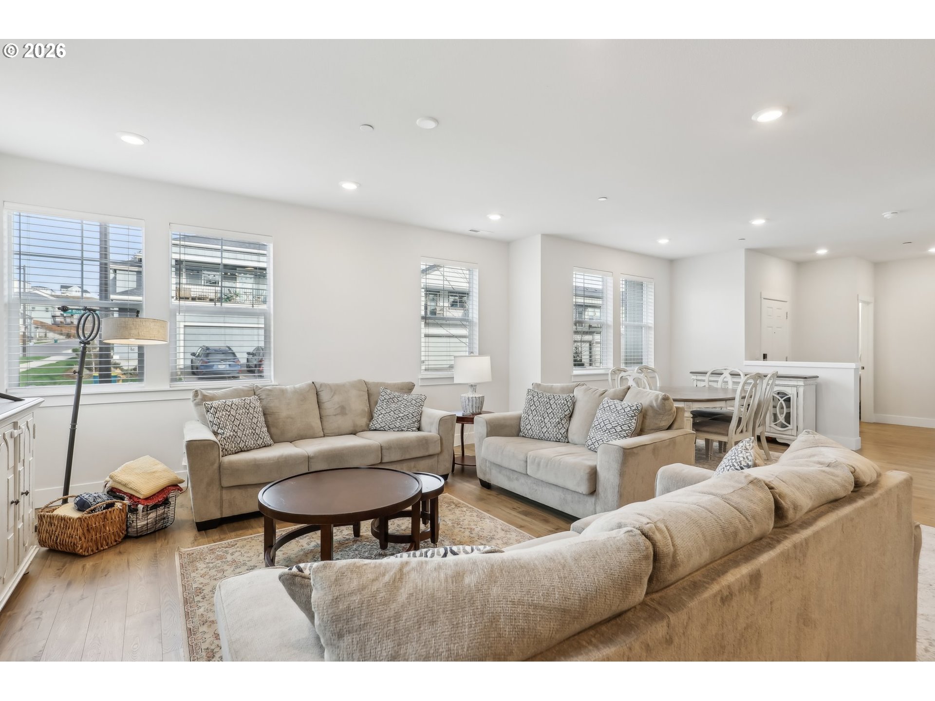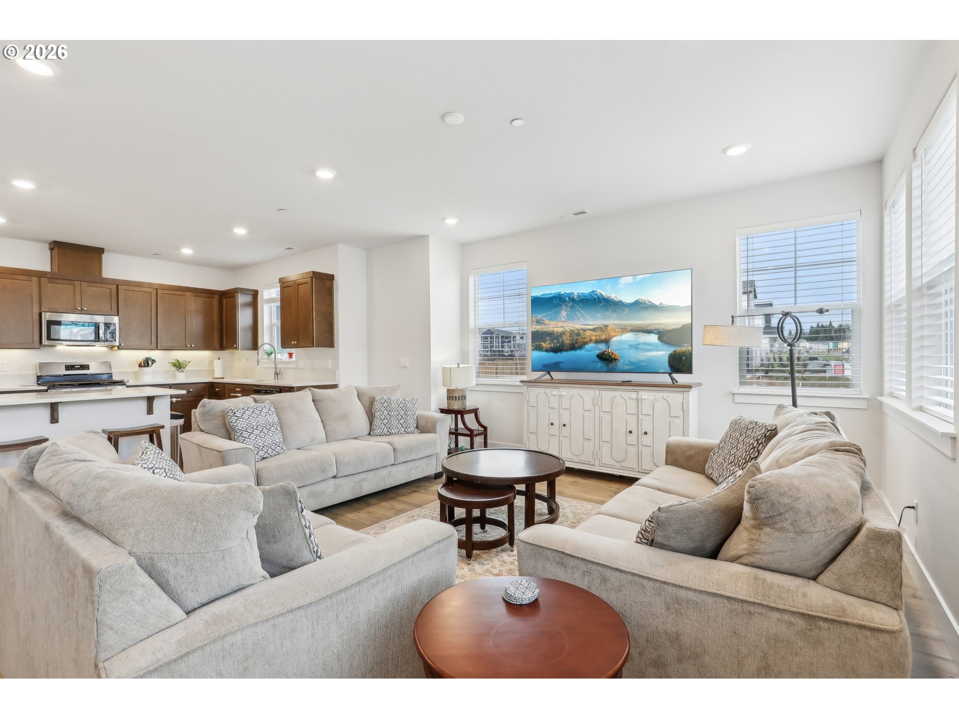 This well-appointed corner townhouse offers an abundance of natural light and a spacious, open layout. The main floor features a comfortable bedroom, perfect for guests or multi-generational living. The open-concept great room includes a spacious kitchen island, ideal for entertaining and everyday living. Upstairs, the expansive primary suite boasts a walk-in closet and a double vanity for added convenience. Three additional bedrooms, two full bathrooms, and a dedicated laundry room complete the upper level. Located just minutes from Progress Ridge, Murrayhill MarketPlace, Nike and Intel this home offers both tranquility and easy access to shopping, dining, and outdoor amenities.