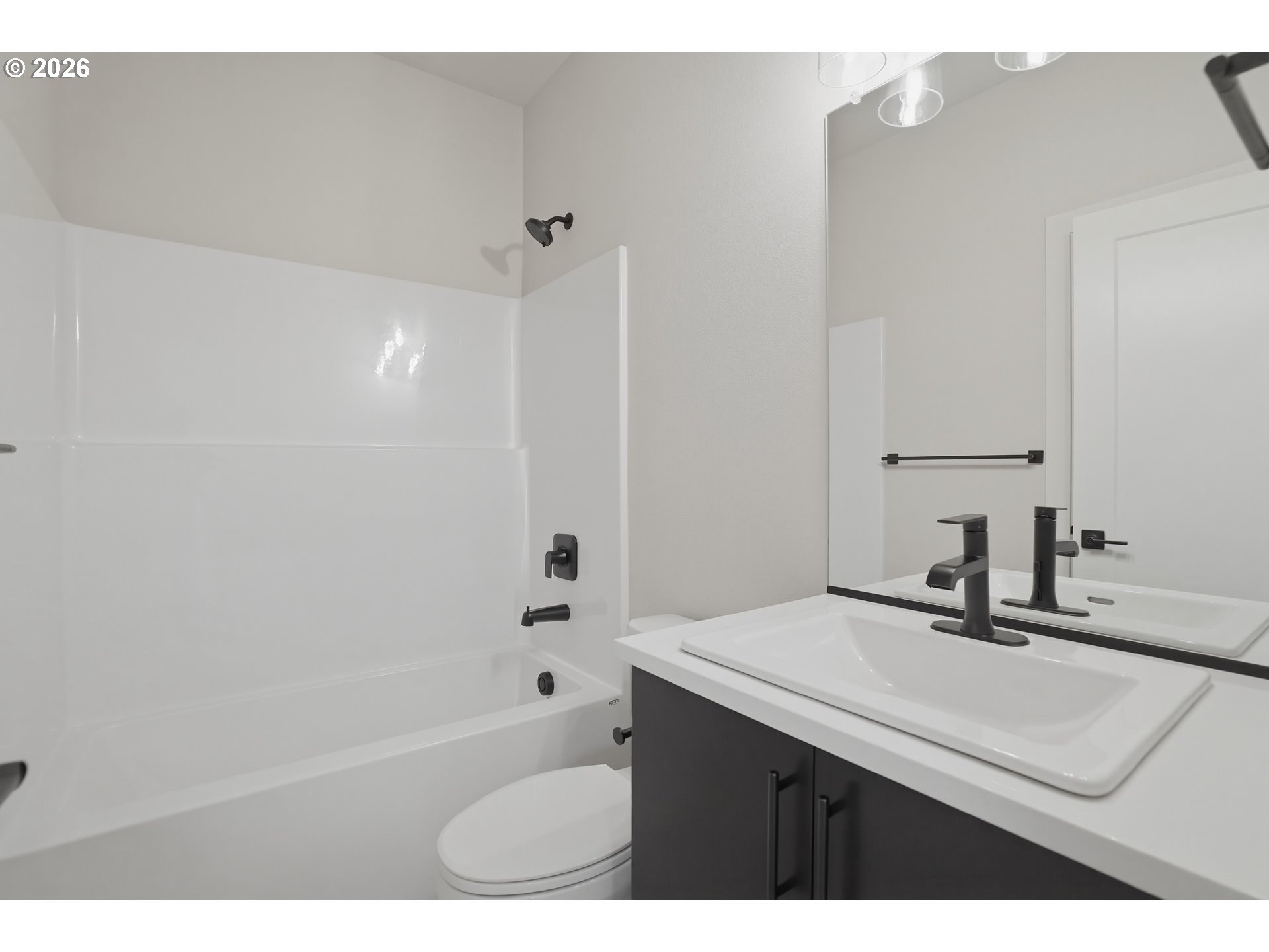 This new construction home is located in Scholls Heights, a community with a park and an ideal setting near greenspaces, shopping, restaurants, and excellent schools. The Bailey plan features a versatile three-story design with a first-floor bedroom and full bathroom, with an open-concept main living area on the second floor including access to a covered deck. Upstairs are two primary suites, each with an en-suite bathroom and a walk-in closet. Interior highlights include quartz countertops, upgraded slab-style cabinets, and luxury vinyl plank flooring (LVP), along with premium details such as under-cabinet lighting, matte black accents, and a spa-inspired primary bath. This home also includes central air conditioning, a refrigerator, washer and dryer, garage opener and blinds — all at no extra cost! Photos are of a similar home, features and finishes will vary. Incentives available with the use of our preferred lender! Located on Homesite 59, this home is Move-In-Ready!