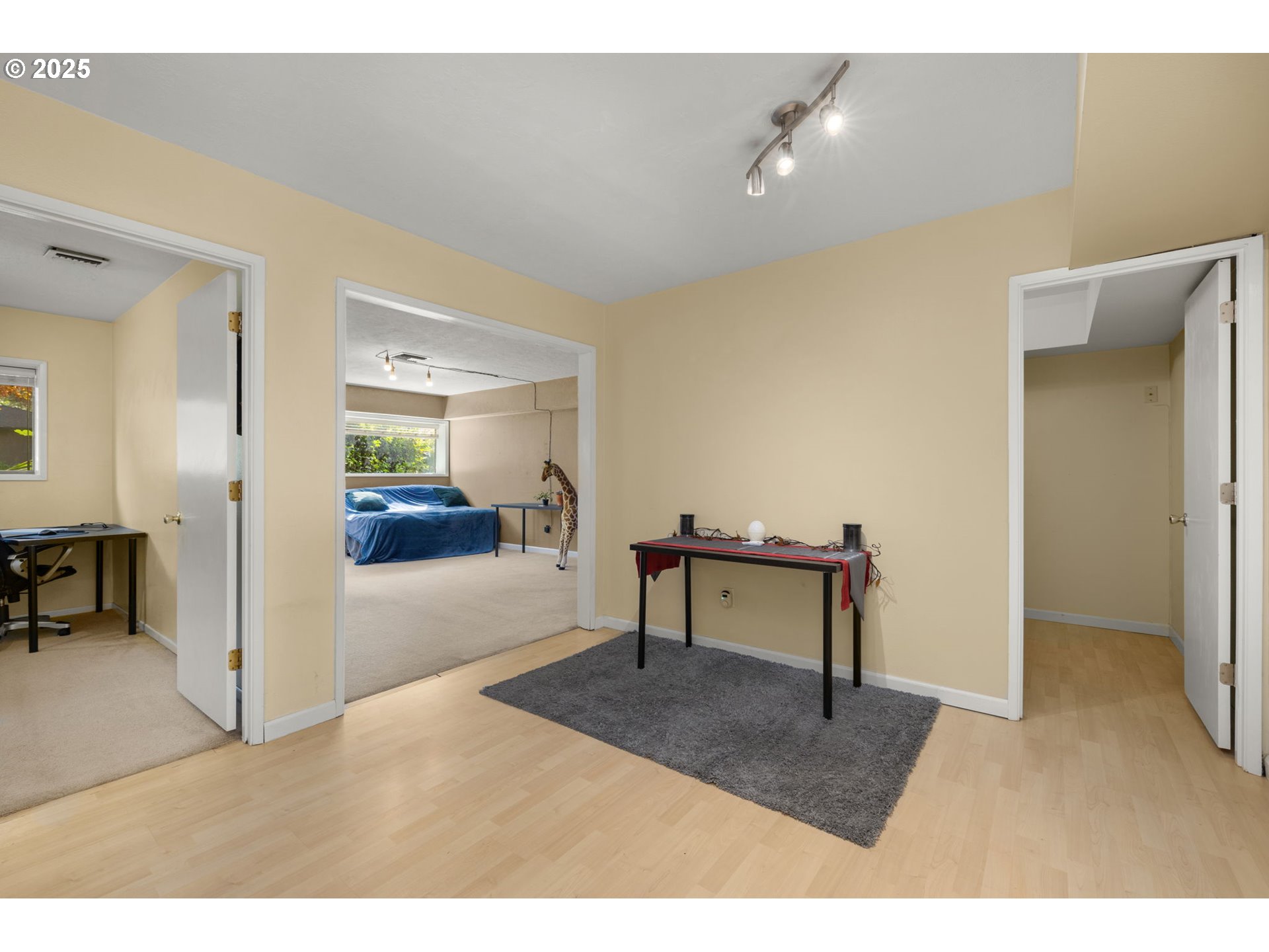 BUYERS: Take advantage of a FREE 1-0 rate buydown with our preferred lender. Enjoy a lower mortgage rate for the first year, saving you money upfront! Ask us for details! This inviting, spacious mid-1970s split-level home sits on a large lot with loads of entertaining opportunities inside and out. Upstairs has a wonderful open concept dining room and living room where the dining room leads out onto a front-facing deck perfect for a BBQ or enjoying a cup of tea. The spacious living room is full of light with large windows and vaulted ceilings. The original 1970s orange free-standing fireplace is a cozy addition to keep you toasty on rainy cold nights, plus it looks so cool! The kitchen has a large eating area with access to the back deck, and has plenty of pantry space. The other living areas upstairs include a large primary bedroom and ensuite, second bedroom, full-bath in the hallway, and laundry room off the kitchen with access to the back deck. Downstairs has a large family room and bedroom, full bath, large bonus room flex space perfect for a ping pong table, and a storage closet large enough to use in a variety of ways! The large deck and the spacious fully fenced, sun-filled backyard are perfect for outdoor entertaining or growing a garden. The shed is a perfect addition for all your gardening tools. The lovely pear tree and the apple tree bear delicious fruit, and there is a hidden nook perfect for reading a book or lounging in the shade under beautiful mature trees. The home is wired for fiber and cable. Close to shopping, restaurants, and MAX station.