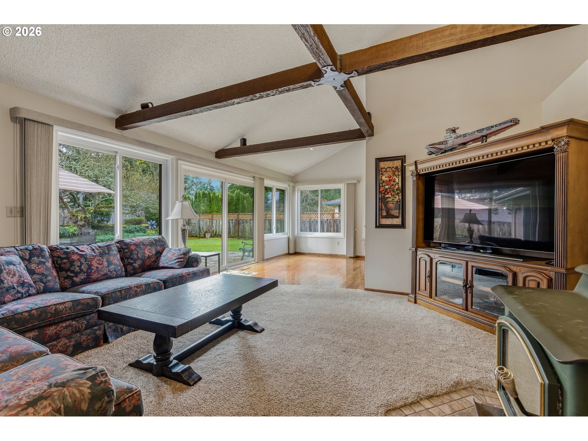 (503) 893-8874Step into timeless charm in this 4 bed, 2 bath Beaverton home filled with character and warmth. A stunning double-door entry with stained glass welcomes you into a vaulted family room with exposed wood beams and a cozy fireplace, while a separate living room also features beams and its own fireplace for added ambiance. Wood floors run throughout most of the main level, connecting the formal dining room and a kitchen equipped with stainless steel appliances. All four bedrooms are on the main floor, including one set up as an office. The primary suite offers an updated en suite bath with a glass walk-in tiled shower and a private sliding door to the backyard. A hall bath serves the additional bedrooms. Upstairs you’ll find a large flex/bonus space plus an expansive loft with two beds for visitors and a deck overlooking the yard. Situated on a huge lot, the fully fenced backyard is a private retreat with mature landscaping, a garden area, tranquil koi pond, and a stone paver patio accessed by sliding doors—perfect for indoor-outdoor living. An attached two-car garage completes this truly special property.