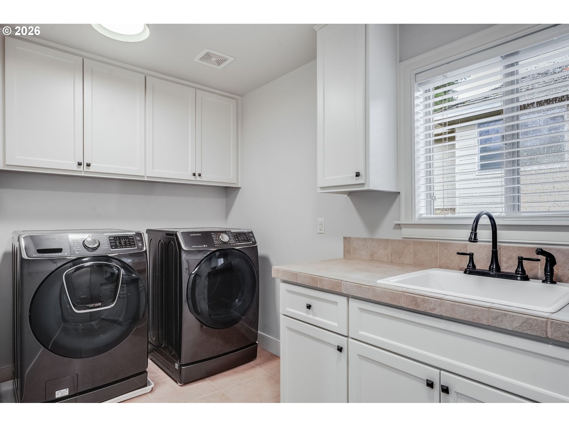 Tucked into the heart of Forest Heights, this beautifully updated residence offers a rare blend of refined living and serene privacy—backing to lush green space for a true retreat-like setting, all with no HOA. From the moment you arrive, the home unfolds with a sense of warmth and sophistication, where hardwood floors span the main level and natural light fills the open, thoughtfully designed spaces. The great room floor plan invites effortless living and entertaining, anchored by a gas fireplace with custom built-ins and peaceful views of the surrounding greenery. The fully updated kitchen is both elegant and functional, featuring a large island with seating, walk-in pantry and seamless access to the backyard and deck—perfect for indoor-outdoor living. A formal dining room with classic wainscoting adds a touch of timeless charm. The main level offers exceptional flexibility with a private office complete with built-ins and a full primary suite with a walk-in shower—ideal for guests or multigenerational living. Upstairs, a second expansive primary suite creates a true sanctuary with vaulted ceilings, double sinks, a soaking tub, walk-in shower, and a custom walk-in closet. Three additional bedrooms, a full bath, and a laundry room complete the upper level. Fresh interior and exterior paint, meticulous maintenance, and an oversized three-car garage elevate the home’s functionality. Ideally located near Forest Park, Mill Pond Park, Amaterra Winery and Forest Heights Village, with convenient access to NW 23rd, top private schools including French American and Catlin Gabel and major employers like Nike, Intel, Columbia, and Providence St. Vincent. Close-in Washington County living meets elevated privacy—this is more than a home, it’s a lifestyle.
