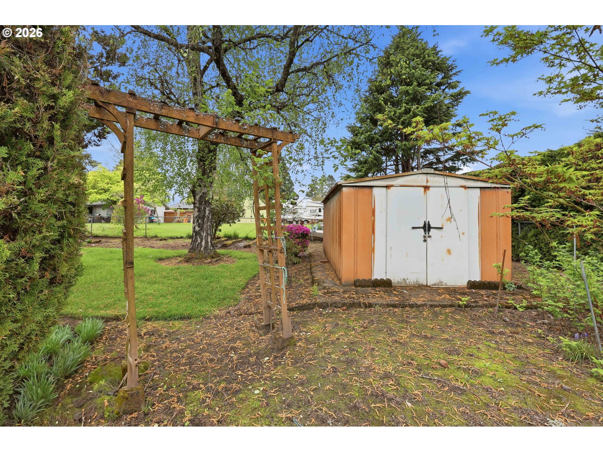 Opportunity knocks in Beaverton. Set on just under a third of an acre, this 3-bedroom ranch offers 1,150 square feet of potential for the buyer ready to roll up their sleeves and bring new life to this classic home.The layout is simple and functional with a one-level floor plan, wood-burning fireplace, and original character throughout.Primary bedroom includes a half bath. Two additional bedrooms offer comfortable space and flexibility for guests, office, or hobbies. Laundry is located in the attached two-car garage, which provides additional storage and workspace. The level lot includes mature trees and established landscaping, creating a private, natural setting. Property includes room for RV parking and generous outdoor space with flexibility for a variety of uses. New Furnace and A/C installed in 2025. Zoned R5, offering potential for future improvements or expansion (buyer to verify). Covered patio, outbuilding, and ample yard space provide options for outdoor living, storage, or projects. Convenient location near schools, bus line, shopping, and parks.