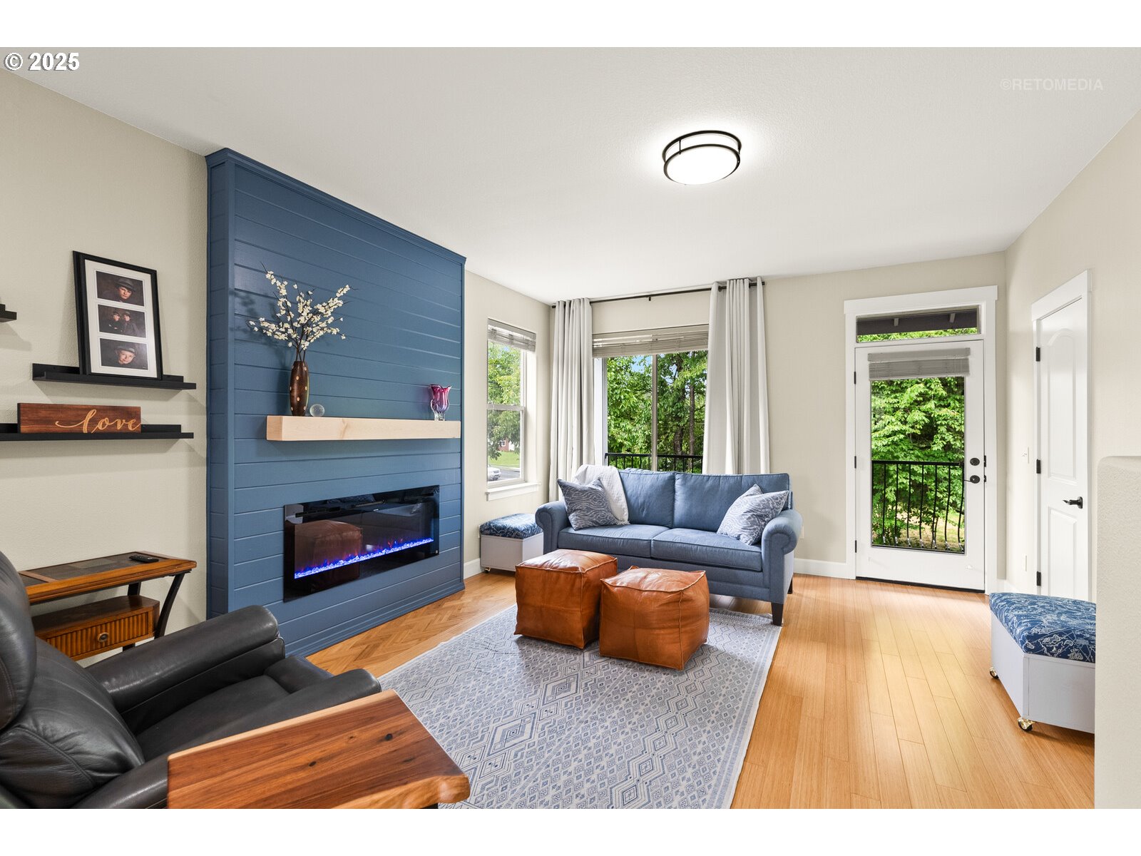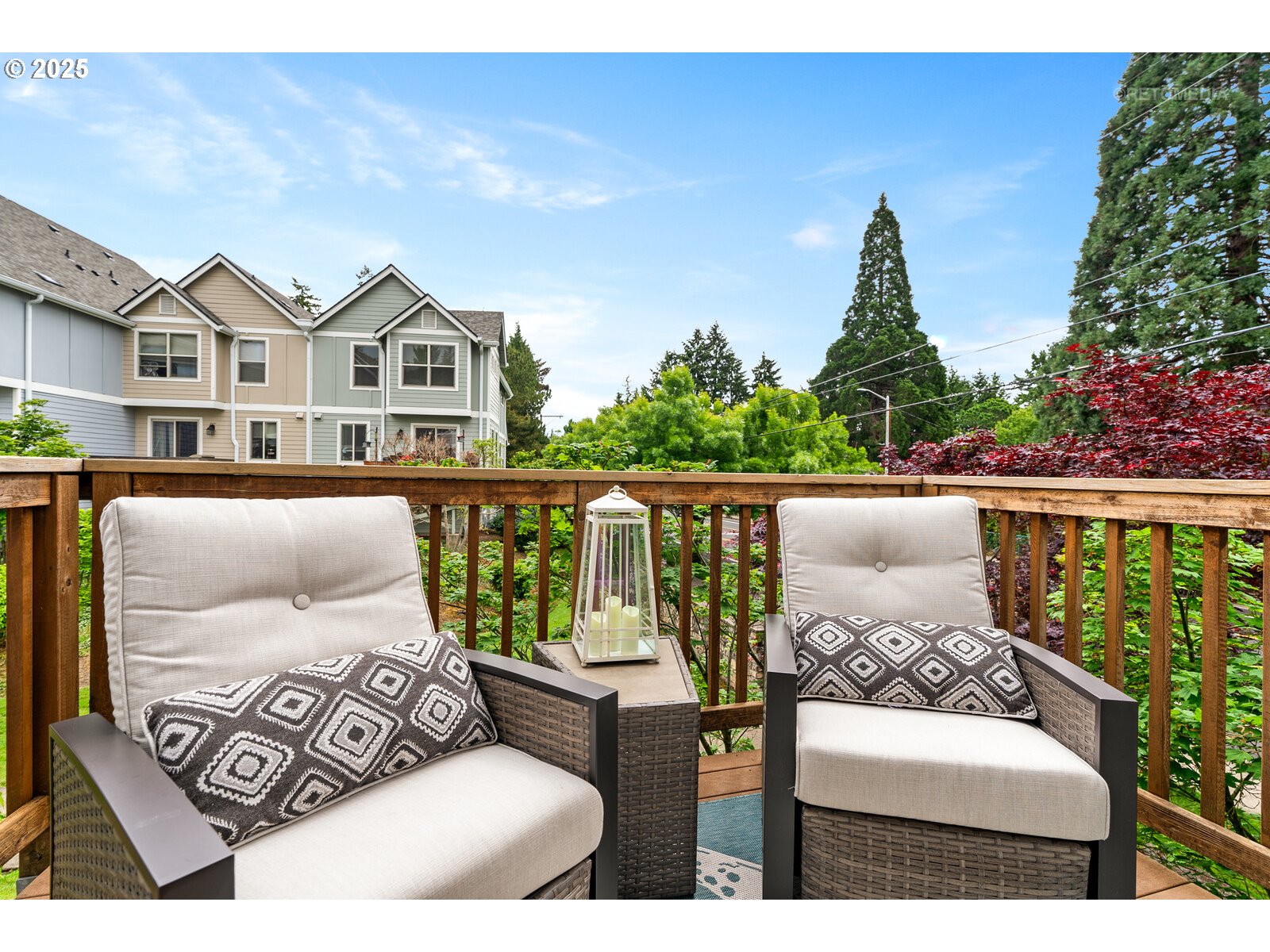 Arrive at Travertine to enjoy a marvelous blend of cultured interiors and sun-dappled exteriors! Elegant tile, brand new carpets and gleaming bamboo flooring welcome you to an elegant open layout set apart by natural light and dynamic floorplan choices. On the main level, an updated kitchen sparkles with quartz countertops and designer touches while the living room centers on a wide-span low-profile fireplace with custom hearth flourish. Upstairs are spacious private spaces with vaulted ceilings: A primary suite positioned to catch morning sunlight and an oversized second room easily capable of mingling the functions of guest room and office all at once. On the ground level, behind a tandem garage for two compact cars, is an oversized mechanical room plus a storage room of 120 square feet just waiting to be your gym, shop or additional garage space. This hard to find southern end-unit comes in turn-key fashion, complete with new refrigerator & like new washer & dryer, featuring a front balcony with views of the park and a rear balcony overlooking carefully maintained community space. Bordering Dawson Creek Park, with its trails & waterways, you're nestled within Intel's fabrication triangle a quarter mile from Costco, a half-mile from the Brookwood Library and less than a mile from all the shopping & dining alternatives of Orenco Station. Here, within the sought-after school channel of West Union/Poynter/Liberty, is an opportunity to embrace the finest in Pacific Northwest living - Make this hidden jewel your home and enjoy it all! [Home Energy Score = 8. HES Report at https://rpt.greenbuildingregistry.com/hes/OR10202471]