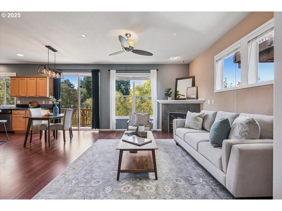 Welcome to this beautiful Beaverton home tucked away on a quiet dead-end street and backing to a private greenbelt for a true sense of peace and privacy. The open-concept design is newly painted in the main areas and filled with natural light which showcases soaring 25-foot ceilings and a unique, functional floor plan that blends style with everyday comfort. The large kitchen and family room extend to an upper deck with views of trees and the open green space, creating a peaceful backdrop for gatherings. Enjoy cozy fall and winter evenings by the fireplace, or cook and entertain with ease in the well-designed kitchen, featuring a center island, stainless steel appliances, large pantry, and thoughtful details throughout. With ample storage and a smart, functional layout, this home perfectly balances beauty and convenience.Upstairs, the primary suite is a true retreat—a light-filled oasis with vaulted ceilings, a private deck, and an ensuite bath featuring a jetted tub/shower, double sinks, and a large walk-in closet with custom built-ins.The spacious great room is ideal for entertaining, opening seamlessly to a fenced covered patio and garden area for easy indoor-outdoor living and backs up to a lush greenbelt—ideal for relaxing or entertaining in a serene natural setting.Located minutes from Intel, Nike, Downtown Beaverton, shopping, restaurants, parks, and major commuter routes, this home offers the perfect blend of tranquility and convenience.Discover a property that truly stands out—with space to live, work, and play in comfort and style.