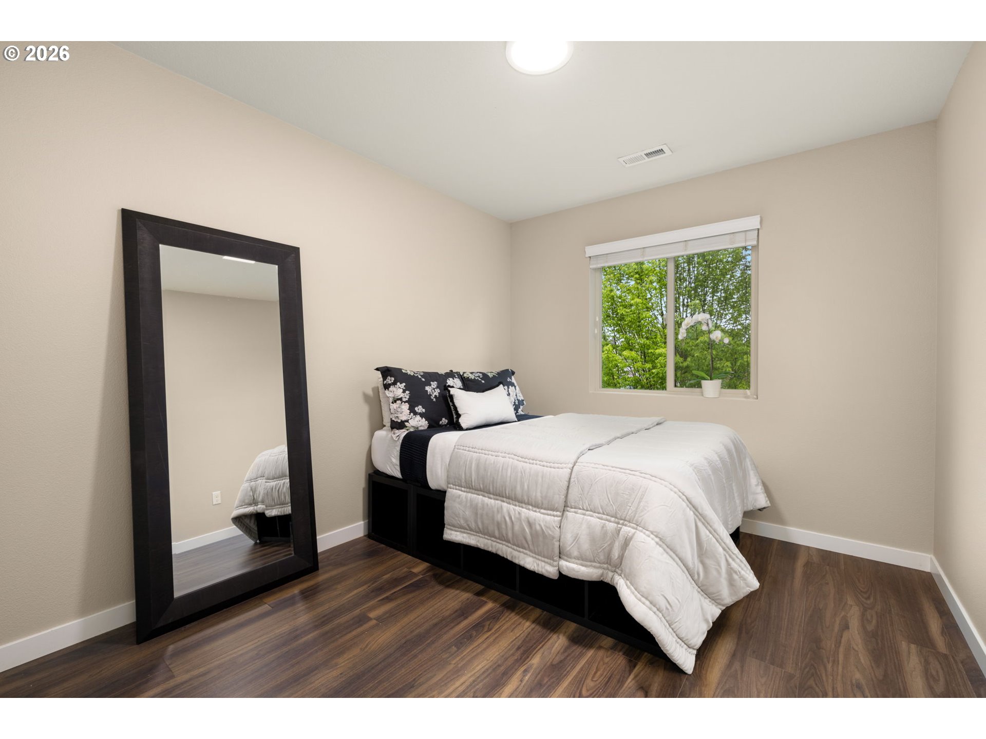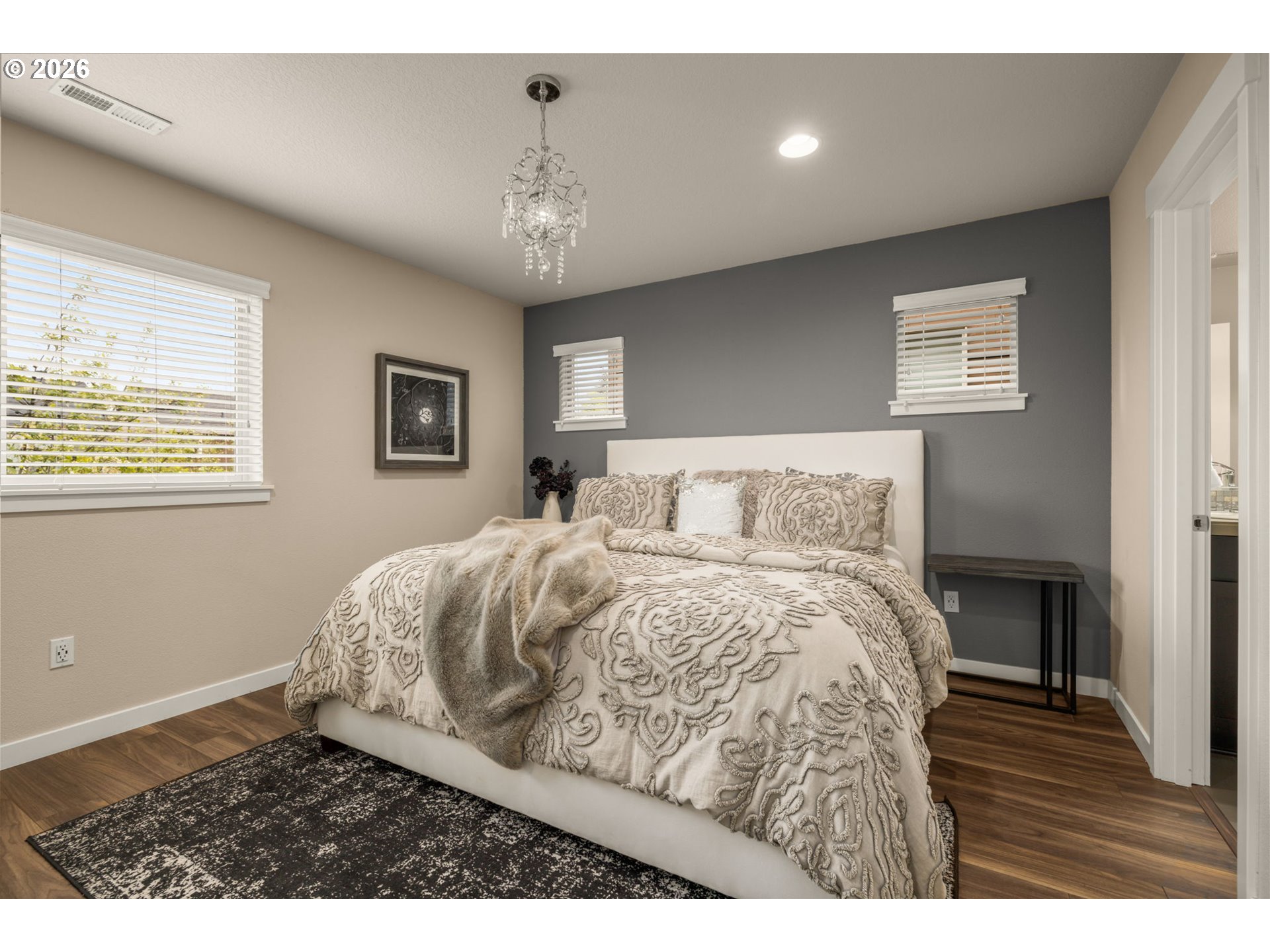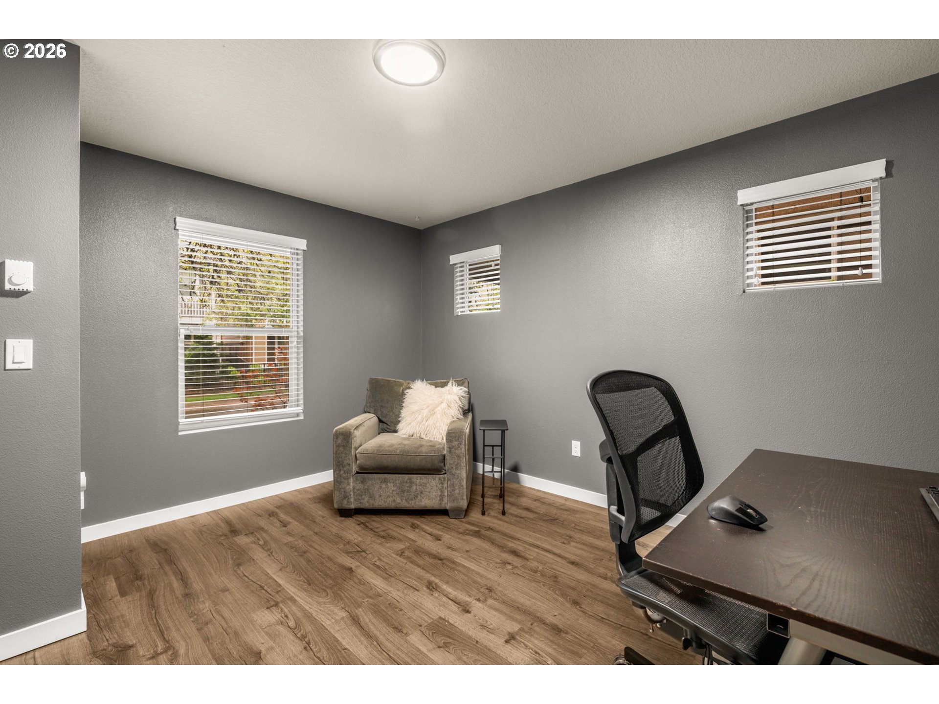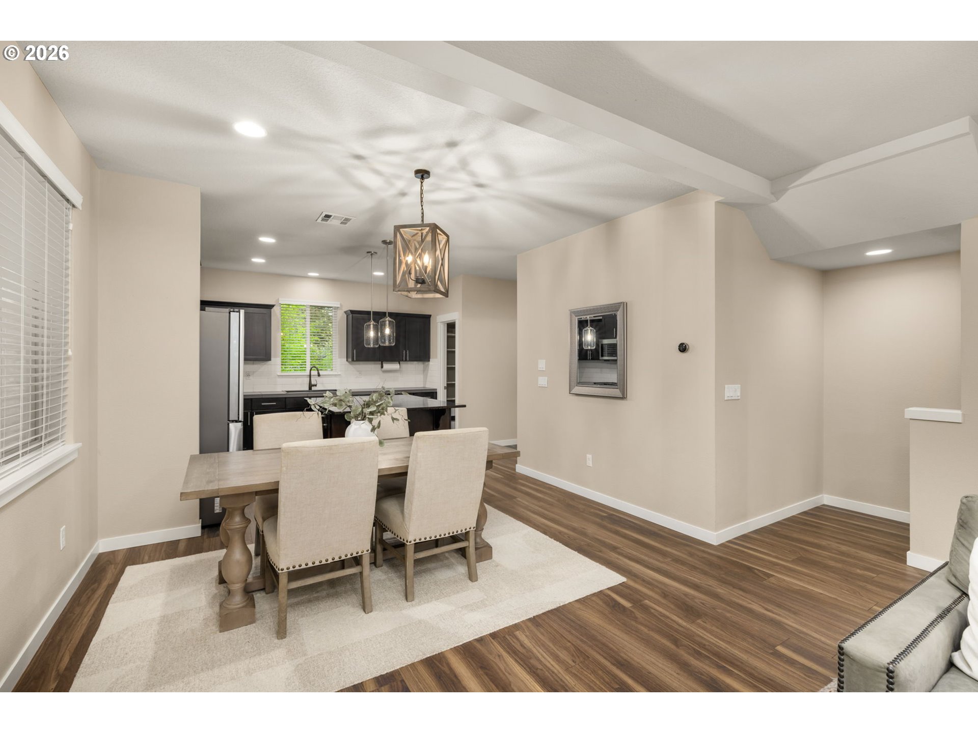 Tri-level contemporary home in a highly convenient location just minutes from VillaSport Athletic Club, Nike, Hwy 26 access, shopping, and dining! Thoughtful updates throughout include new carpet on stairs and laminate flooring throughout (2019), stainless steel appliances (2021), a custom pantry (2025), and a new air conditioning system (2024). The main level features a bright, open layout with laminate flooring throughout the kitchen, dining, and living spaces. The gourmet kitchen offers granite countertops, stainless steel appliances, a gas range, built-in microwave, tile backsplash, island workspace, and a custom pantry for additional storage. The dining area flows seamlessly into the living room, creating an easy space for everyday living and gatherings. The lower level provides an office with laminate flooring and double doors, offering a flexible workspace or additional use options. Upstairs, the primary suite includes double closets with organizers and an ensuite bathroom featuring double sinks and a tiled walk-in shower. Two additional bedrooms feature laminate flooring, closets with organizers, and ceiling fan comfort. The laundry area is conveniently located on the upper level and includes a washer and dryer. Community amenities include access to a pool, clubhouse, and fitness center for added convenience and recreation. With multiple recent updates and a location close to major employers, recreation, and everyday amenities, this home offers a functional layout and excellent accessibility!