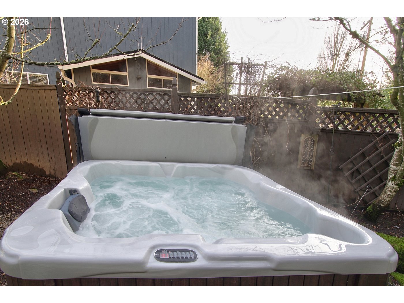 From the covered porch to the back deck, you'll walk through comfortable styling for entertainment or sheer relaxation. At the end of a stressful day, dip into the hot tub (included) & enjoy grilling on the back deck. The huge family room offers a beautiful custom gas fireplace and can be enjoyed from the kitchen & eat area, which are all a part of the great room concept. Refrig/washer/dryer/draperies & outdoor patio lights are all included. Clothes dryer also has a gas option. The kitchen is command central for all rooms on the main level w/granite counters, stainless steel sink, gas cooking, pantry & a French continental refrigerator. The living and dining rooms are part of the open floorplan that lend to perfect entertaining. Enjoy the elegant feel of luxury vinyl plank flooring throughout the home. The staircase stops at the top w/a large landing that leads to French doors opening to the huge vaulted primary suite. This suite has a spectacular bathroom remodel completed in 2020 w/walk-in shower, dual shower heads, lighted vanity mirrors, tile floors, built-in storage and bright w/windows. The backyard offers a sanctuary w/patio, fire pit, hot tub, fountain, covered deck for grilling & a beautiful hardscaped backyard perfect for accent gardening. New exterior paint in 2022 & roof in 2018 that comes with a transferable warranty! Great HES score of 6! There is no deferred maintenance here by these original owners! Just move in! [Home Energy Score = 6. HES Report at https://rpt.greenbuildingregistry.com/hes/OR10243604]