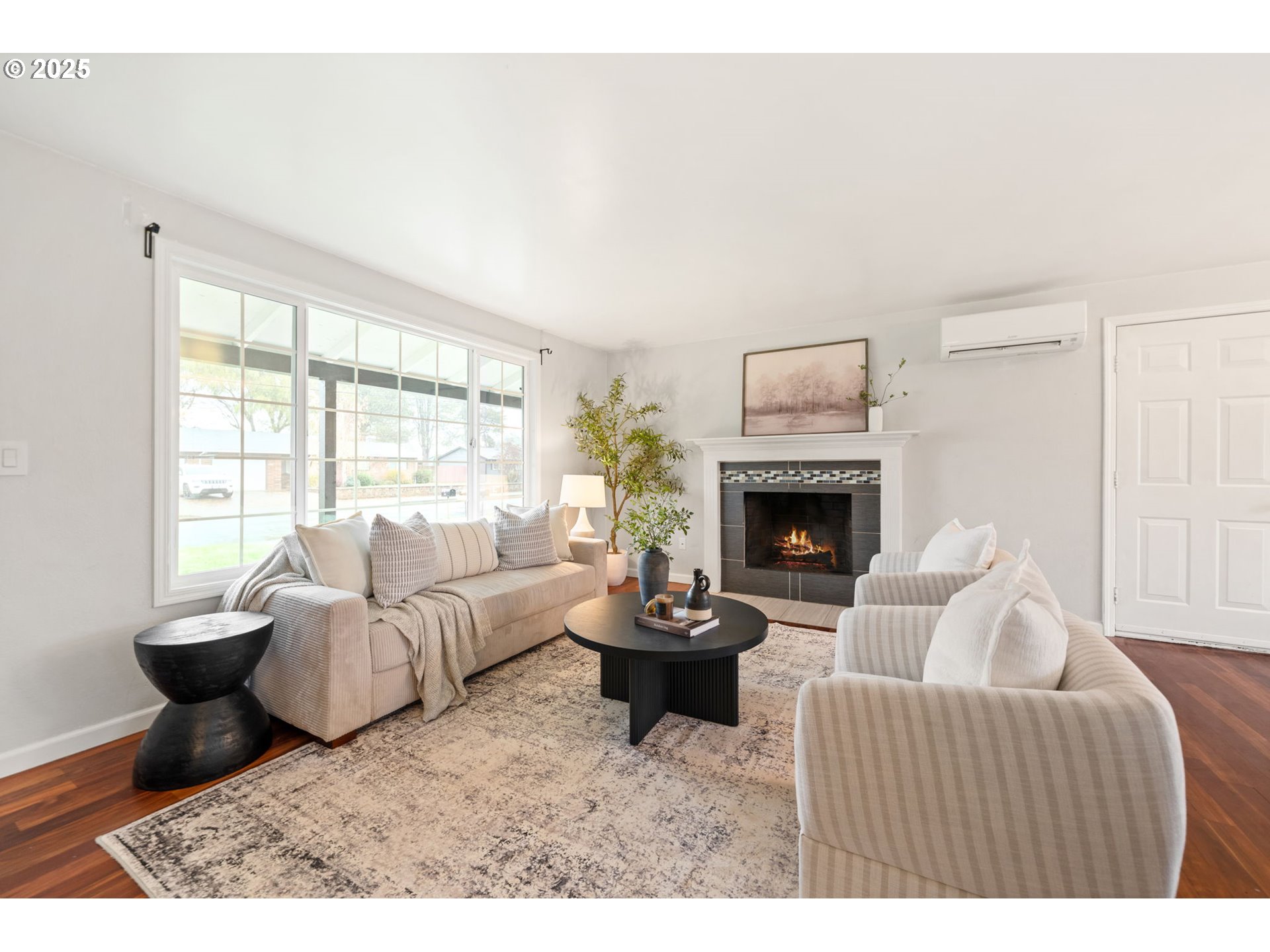 Dialed-In One-Level Living on a Big Lot! Move-in ready with new exterior paint, carpet in all 3 bedrooms, stylishly updated baths, and a bright kitchen featuring quartz counters, under mount kitchen sink and stainless-steel appliances (all included!). Hardwood floors run through the main living areas. Enjoy the wood burning fireplace. French doors open to a spacious fenced backyard and patio—ideal for entertaining, pets, or play. Washer and dryer remain with home. AHS home warranty included. Open House Sat,12/6 from 11-2 [Home Energy Score = 8. HES Report at https://rpt.greenbuildingregistry.com/hes/OR10243008]