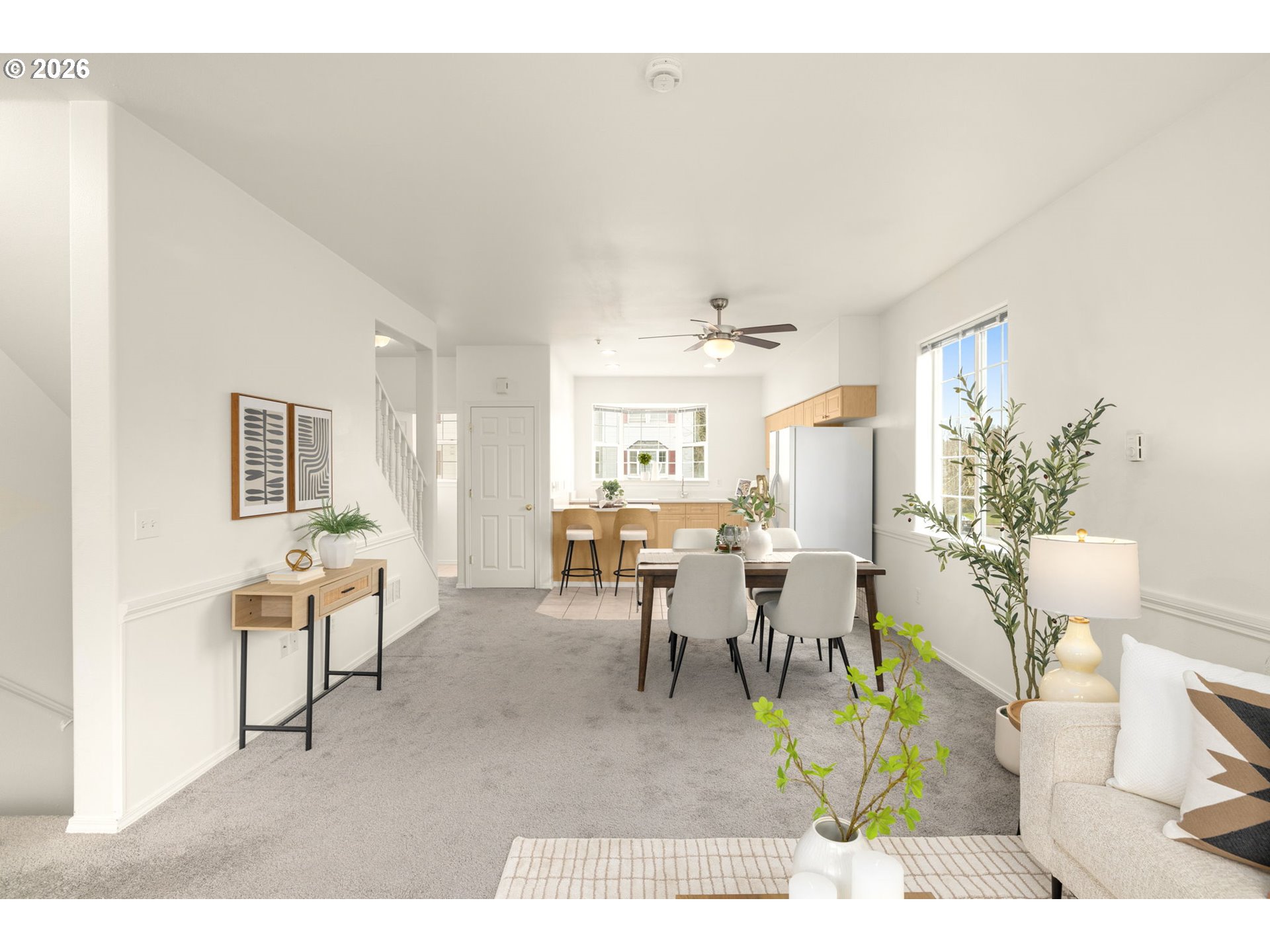 Desirable end unit townhouse built in 2000. This three level property will welcome you with a warm fireplace. It offers an open concept, a spacious living room, and a dining room to enjoy with family and friends. It features beautiful high ceilings and natural light all year long. The new quartz kitchen countertops will invite you to prepare your meals. A skylight on the third floor will cheer your mornings. The two bedrooms have magnificent vaulted ceilings, custom closets, and their own bathrooms. Virtually two primary bedrooms! For those with a busy lifestyle, the private, low-maintenance backyard will allow you to keep Fido happy or just chill. In this property, you can build a storage unit, a third bedroom, or an office on the first floor, if desired. The plumbing is accessible. Wonderful location! Walking distance to a park, Legacy Meridian Park Medical Center, and the bus line. Proximity to New Seasons Market, shopping, and restaurants. Plus easy access to I-5.It is waiting for you to make it home or your perfect rental!