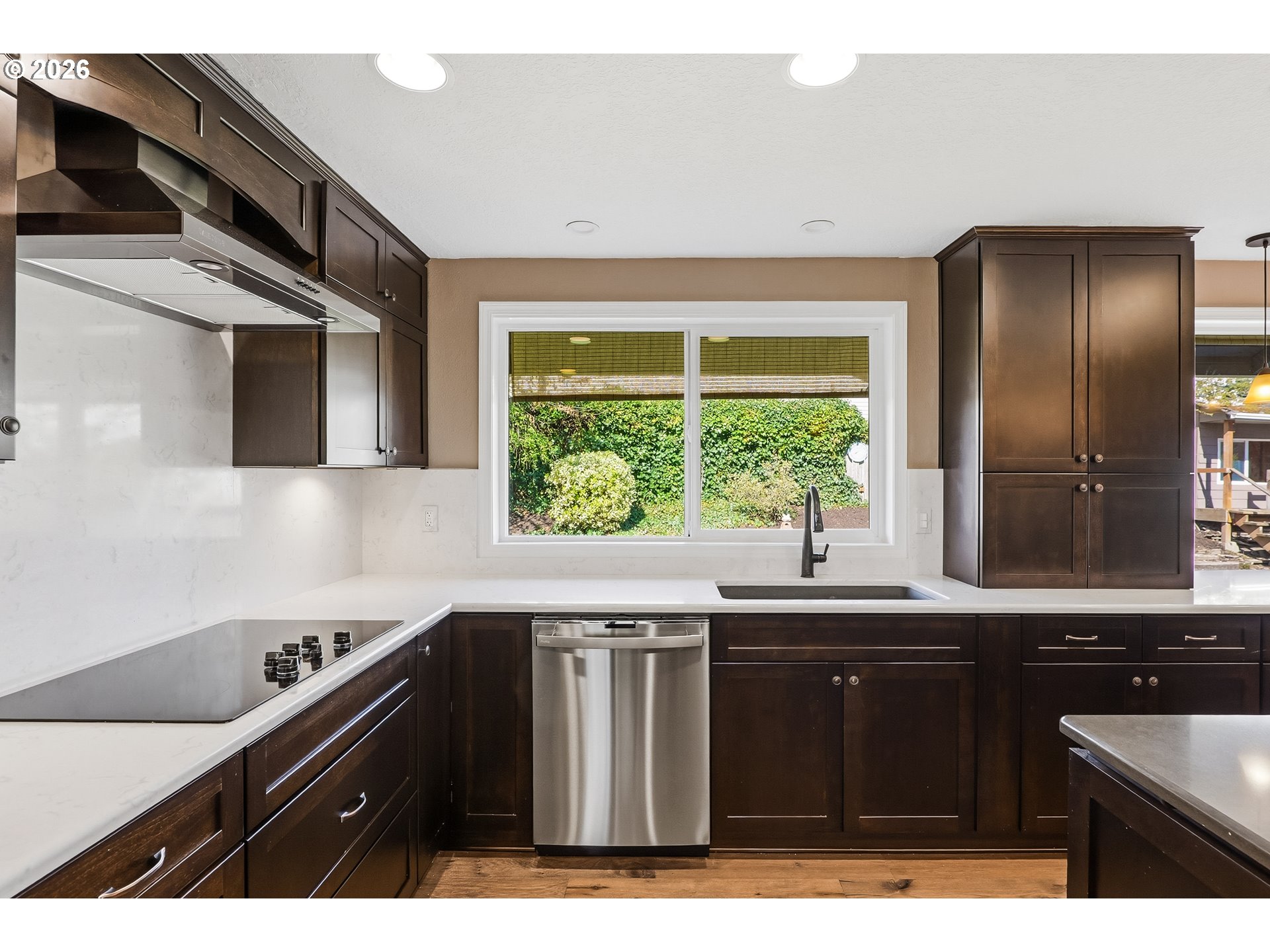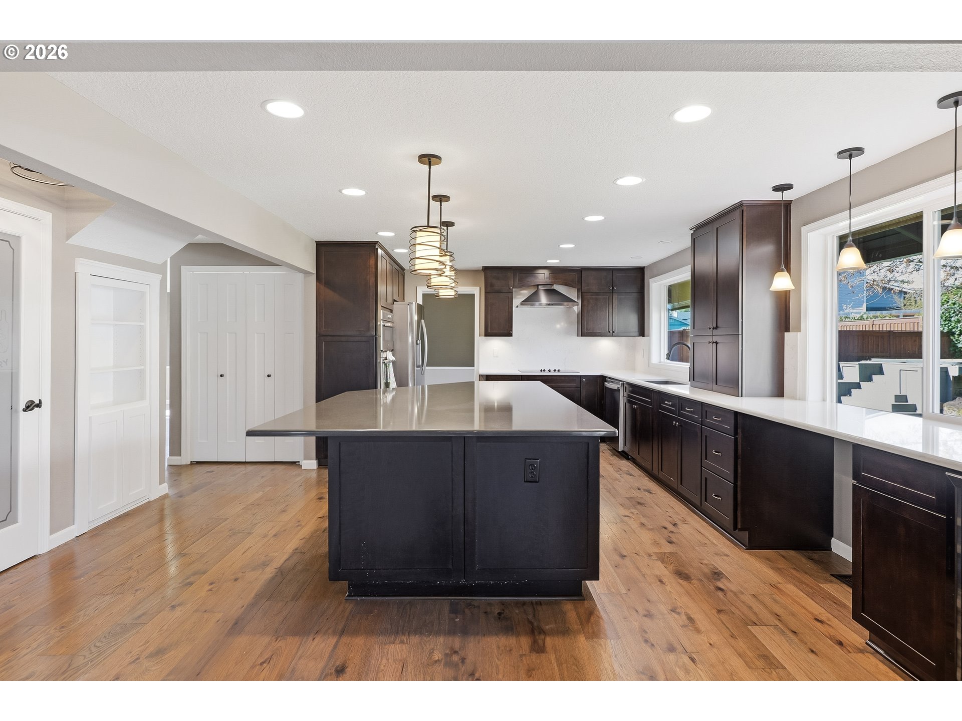 Beautiful Rock Creek home. Engineered hardwood floors throughout main floor. Open living room & dining room combo. Remodeled kitchen with pantry, new cabinets, quartz counters, large quartz island that seats 8. All new stainless appliances. Smooth top electric cooktop and Samsung range hood. Kitchen opens to family room with wood burning fireplace, knotty pine ceilings, sliding doors to back yard. Newer high efficiency furnace in 2017. Vinyl windows with all glass replaced in last 5 years. Upper level with 4 bedrooms plus bonus area off primary bedroom that serves as second floor laundry room. Primary bedroom with walk-in closet and full bathroom with 2 sinks, separate toilet area, tub/shower combo. New 50 year roof. Fenced yard with paver patio, hot tub with deck surroune, above ground pool, & tool shed. Large gated RV parking pad on side of house. Beautiful Rock Creek neighborhood with EZ access to parks, trails, schools, & shopping.