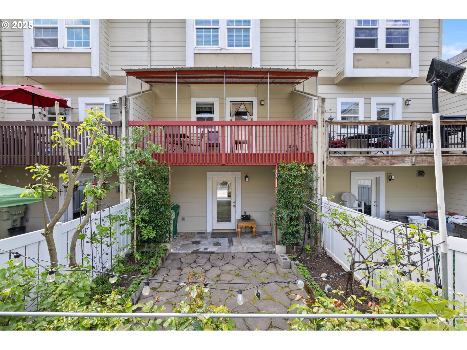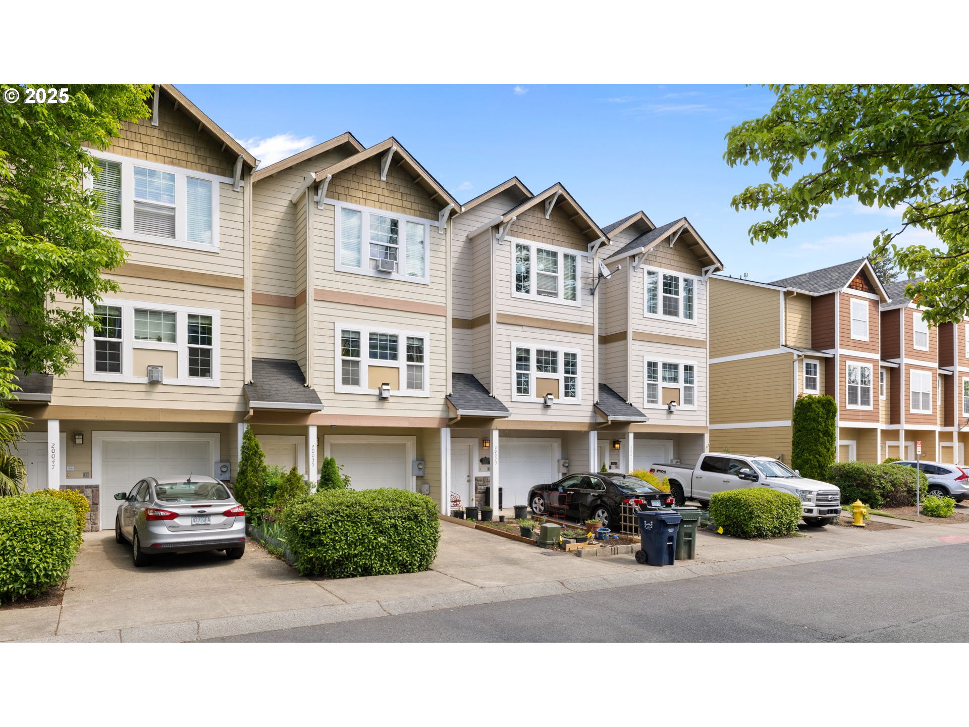 Well maintained Townhome nestled in a cozy, quite neighborhood. Designed with both comfort and functionality in mind, this home offers an exceptional blend of cozy charm and modern convenience. Conveniently located with close proximity to Hwy 26,schools, parks, shopping (Tanasbourne, Costco), and major employers like Nike and Intel, public transport MAX/Trimet transit. This home combines suburban tranquility with unbeatable convenience. The open-concept layout welcomes you into a spacious main floor, featuring a warm and inviting living area with soaring ceilings, a gas fireplace, and abundant natural light—perfect for relaxed evenings or entertaining guests. A versatile nook between the kitchen and living room offers the perfect space for a home office or stylish bar setup. The well-equipped kitchen boasts a gas stove, ample cabinetry, and a large pantry with direct access to a covered veranda that you can enjoy year-round. Upstairs, you'll find two generously sized master suites, each with its own private en suite bathroom, providing ultimate privacy and comfort. Enjoy the beautifully landscaped front entry with dedicated parking just steps from your door. Step into your private, fenced backyard oasis—paved with natural wild stone and surrounded by fruit trees, climbing greenery, and a vibrant flower garden—ideal for outdoor dining, gardening, or simply unwinding in nature. In additional, this townhome comes with a low HOA.