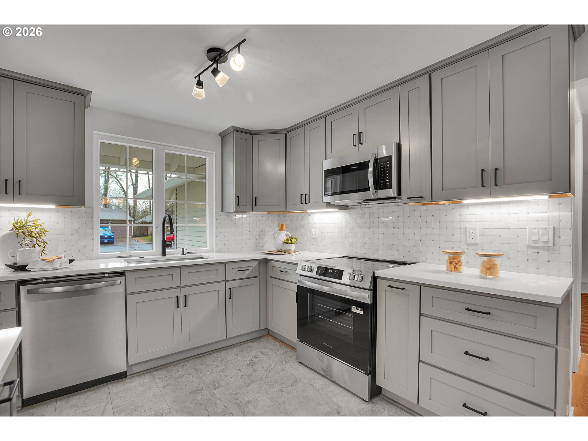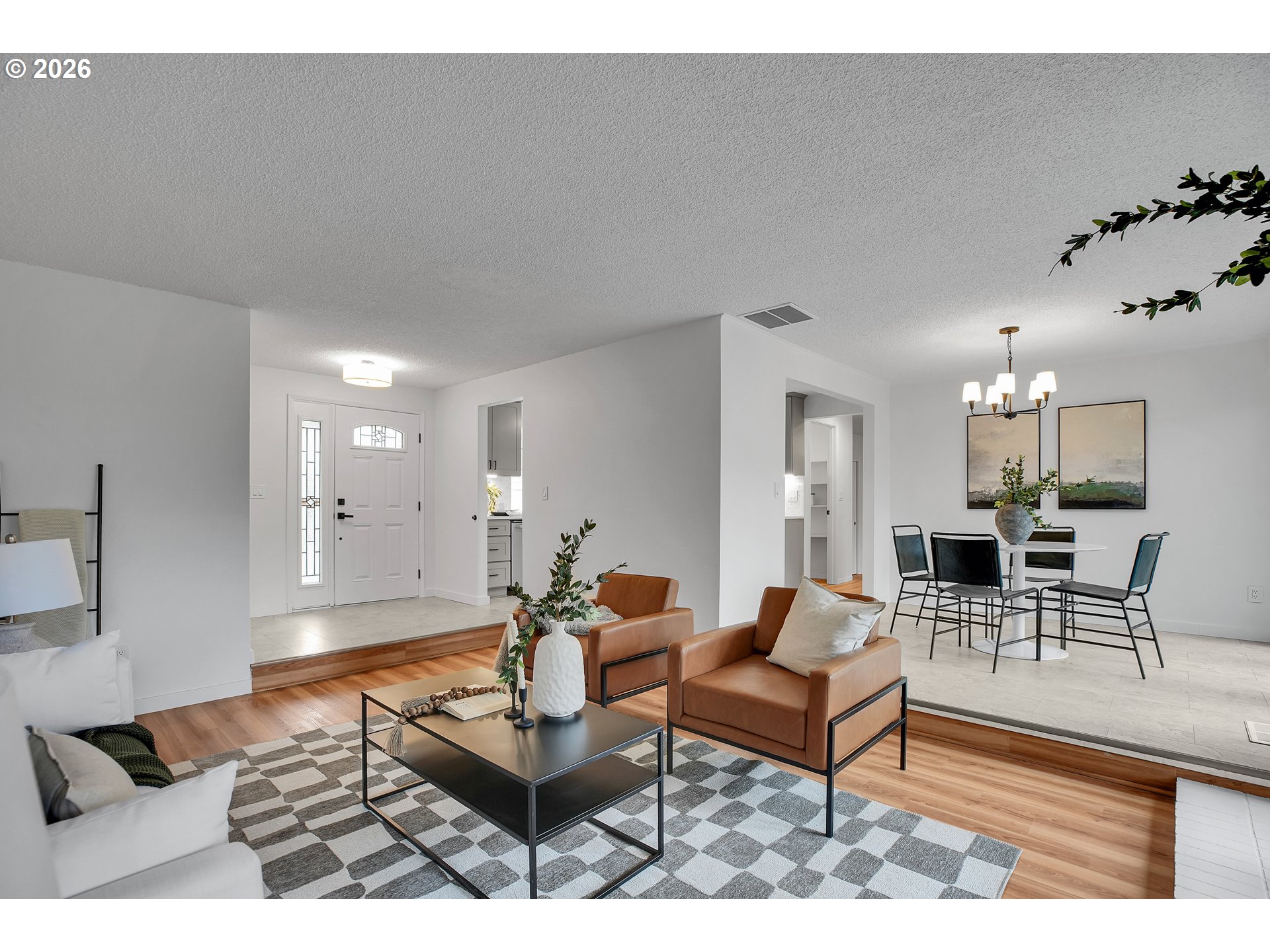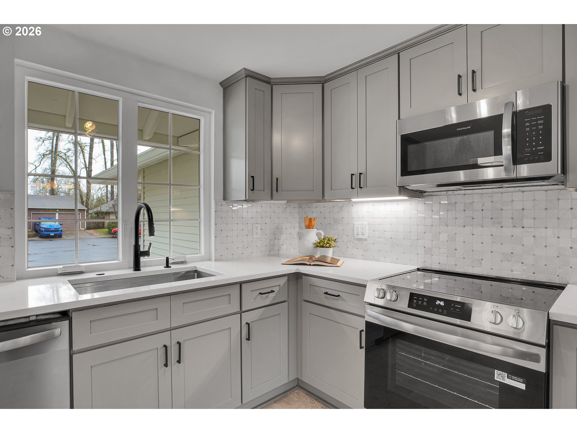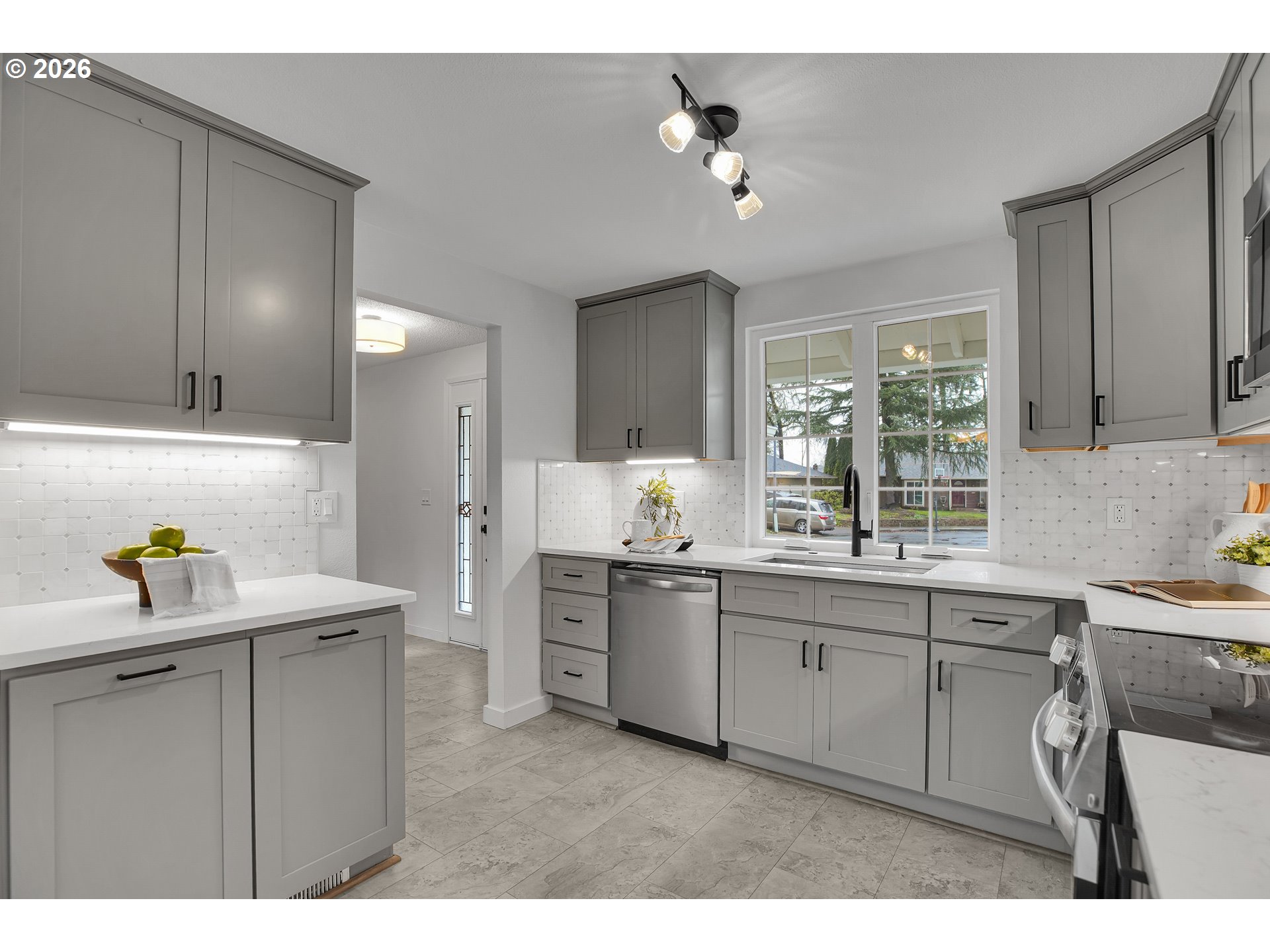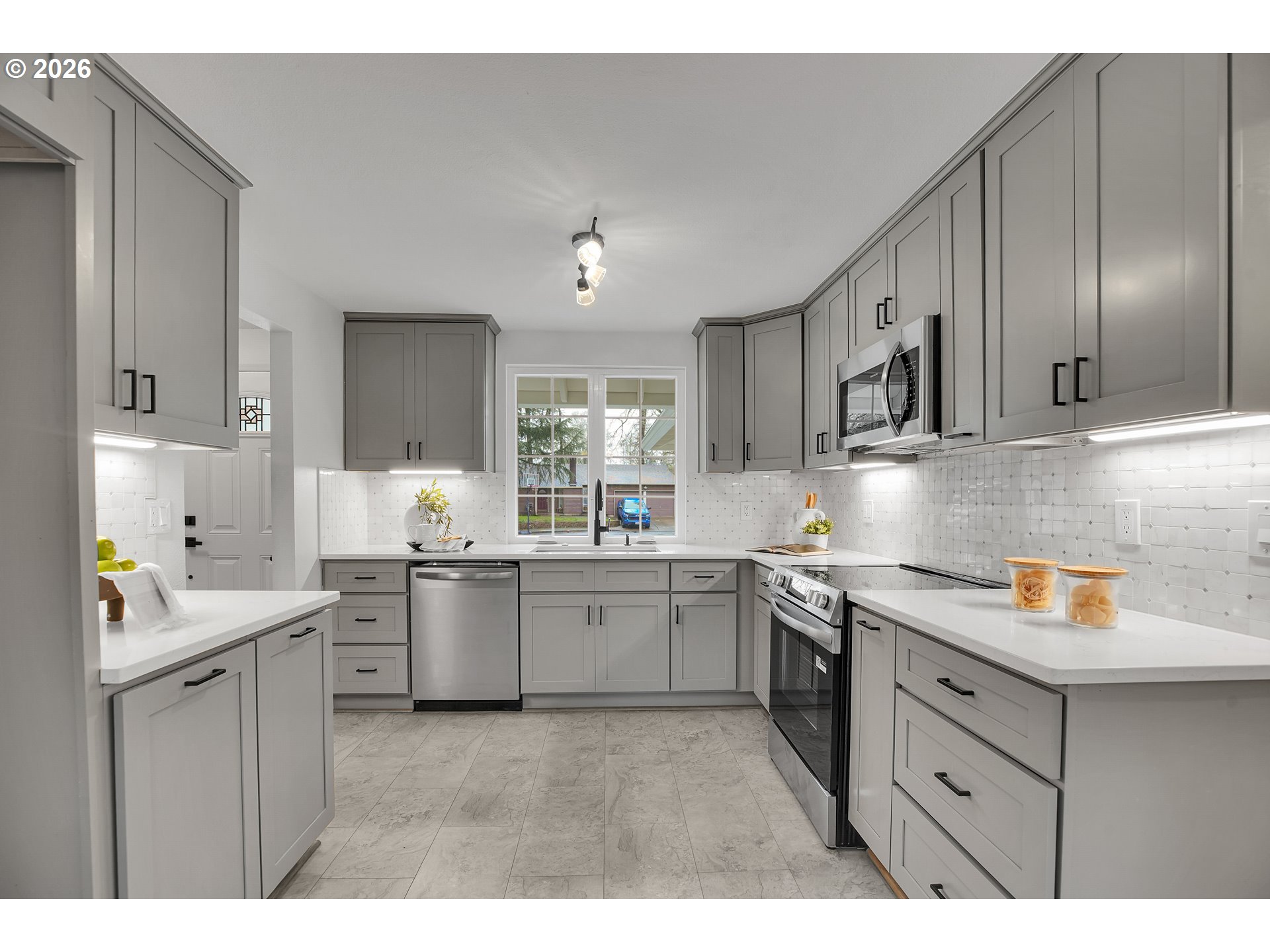 (503) 893-8874Tastefully updated single-level ranch tucked on a quiet cul-de-sac, minutes to parks, schools, shopping, and dining. Inside, enjoy a bright, inviting layout filled with natural light, a formal living room with a classic brick fireplace, and a separate dining area perfect for hosting. The upgraded kitchen features shaker cabinets with soft-close drawers, quartz countertops, tile backsplash, under-cabinet lighting, and ss appliances. The primary suite includes dual closets and a private en-suite with a designer-tile walk-in shower. A spacious secondary living room adds flexibility for a bonus lounge, home office, or playroom. Fresh interior paint and modern fixtures create a clean, cohesive feel throughout. Major improvements include a brand new roof for added peace of mind. This home has central air conditioning, a gas furnace, and an indoor laundry space. Outside, fresh landscaping boosts curb appeal, while the private backyard offers a nature-inspired setting with a paver patio and firepit. Front and back yard both equipped with zoned sprinkler system. With timeless updates, easy indoor-outdoor living, and a prime location near countless amenities, this home is truly move-in ready. Owner is the listing agent.