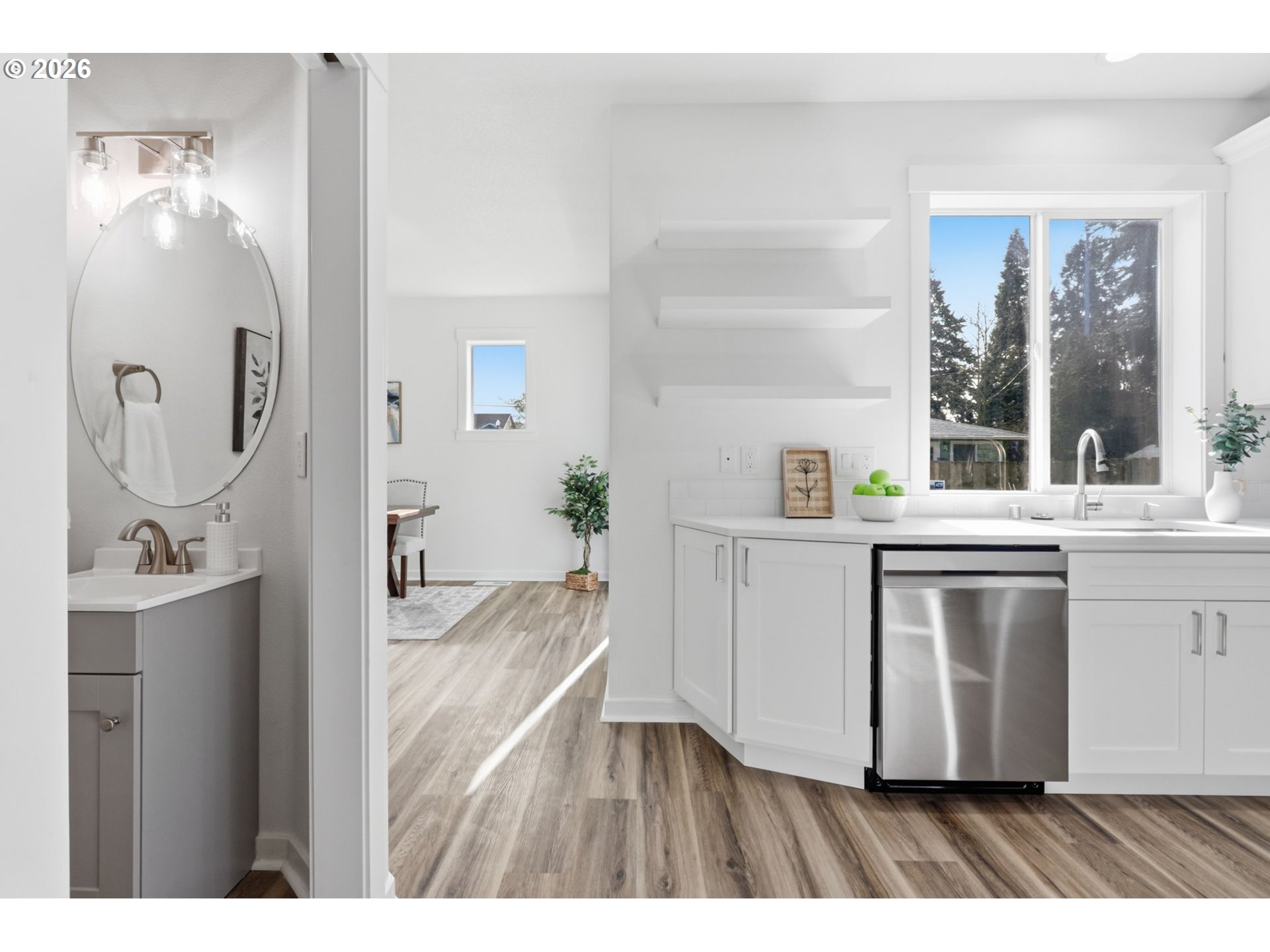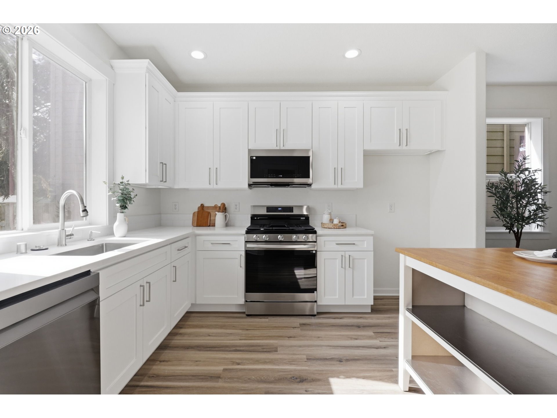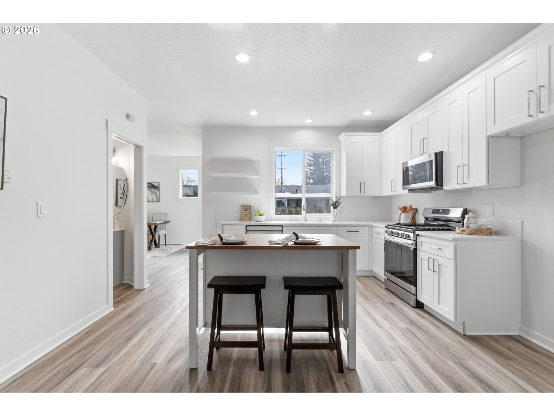 OPEN House Sun 3/1 12-3pm Freshly updated inside and out with nearly every surface replaced or remodeled, this Beaverton home pairs a corner-lot setting with a bright, open feel. The recently remodeled kitchen features all new shaker-style cabinetry, quartz counters, and stainless appliances, in a greatroom concept. Relax in front of the gas fireplace in the separate main living area. New LVP flooring and carpets, 3 updated bathrooms and includes modern finishes throughout. Enjoy upstairs laundry room big enough for your craft projects too. Step outside to a fenced yard ready for BBQing or relaxing. Convenient to Amberglen, The Streets of Tanasbourne, and nearby Quatama MAX light rail.