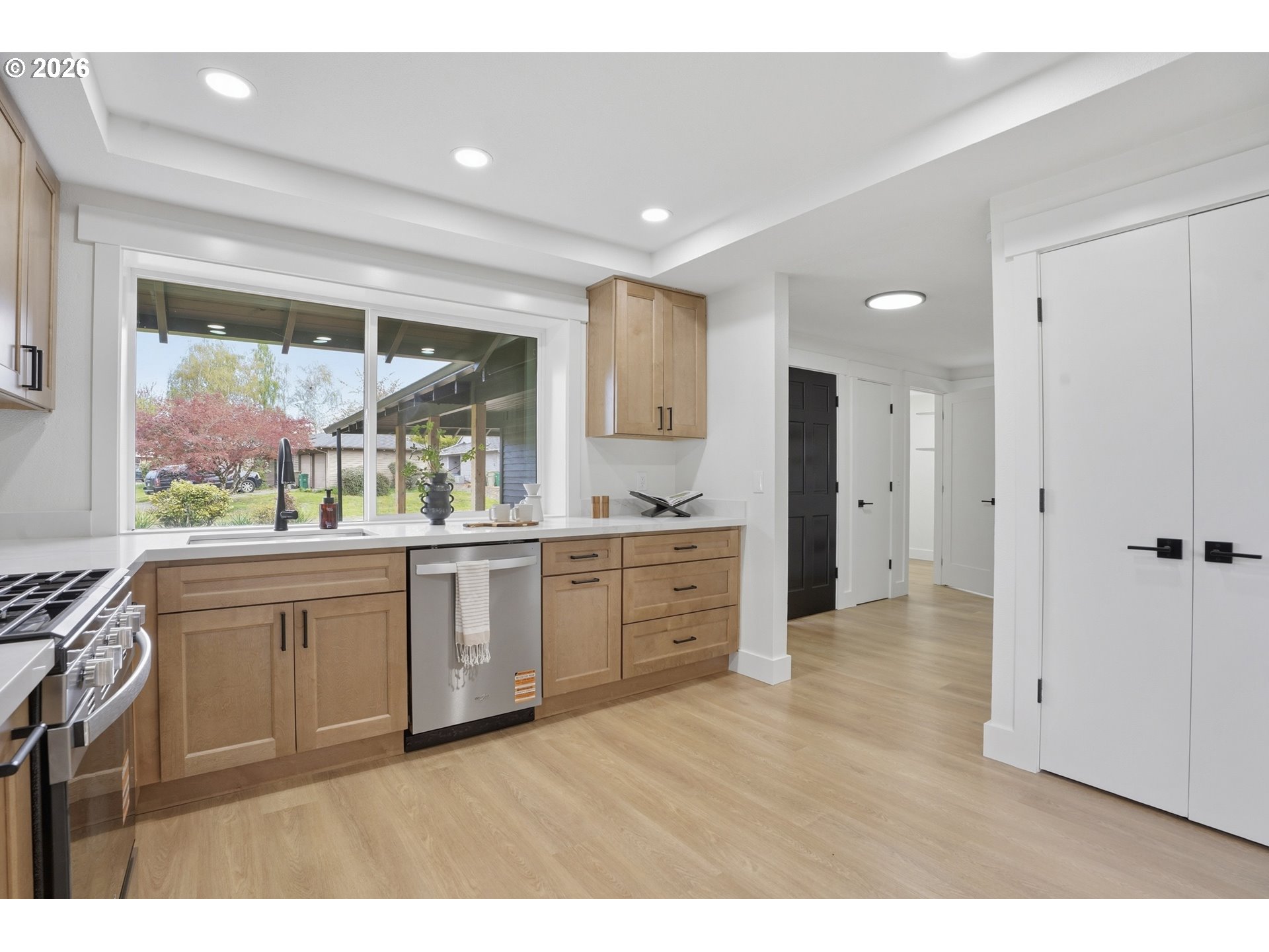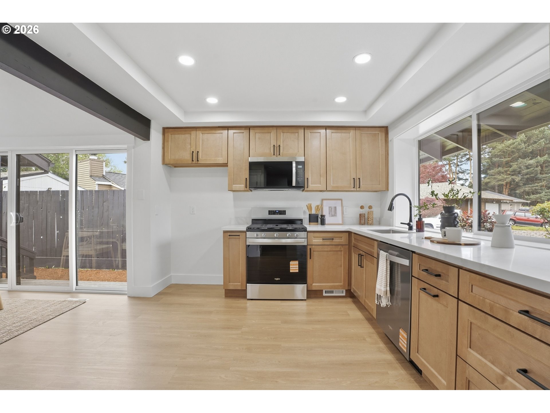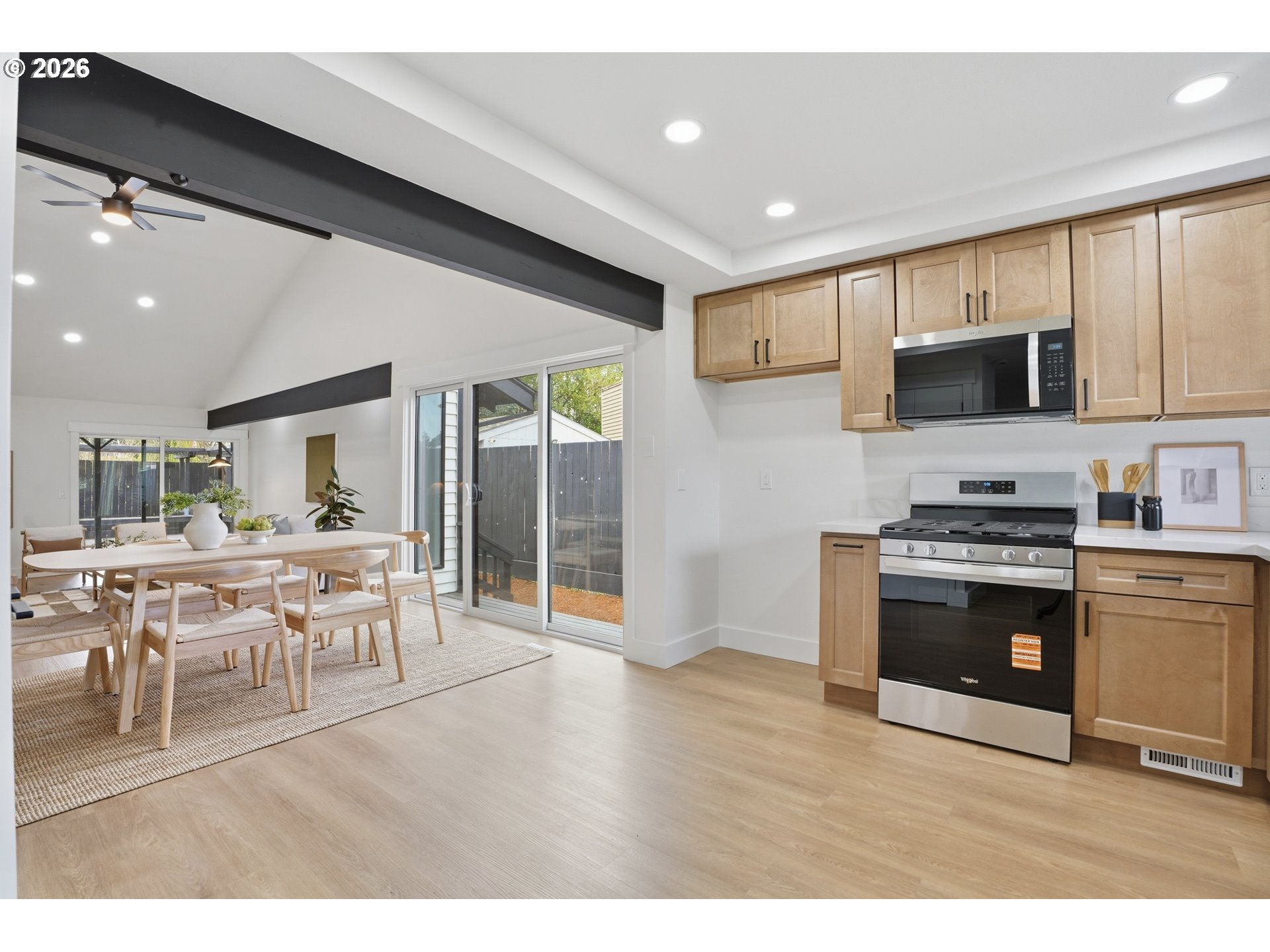Welcome to this beautifully remodeled single level home offering the perfect blend of modern style and everyday comfort. Featuring 3 spacious bedrooms and 2 full bathrooms, this home has been thoughtfully updated from top to bottom with clean finishes and a warm, inviting feel throughout. Step inside to an open-concept living space with vaulted ceilings, abundant natural light, and a seamless flow between the living, dining, and kitchen areas, ideal for both relaxing and entertaining. The stunning kitchen showcases new cabinetry, sleek countertops, and stainless steel appliances. The living area is bright and airy, with contemporary lighting, tasteful design touches, and direct access to outdoor spaces. Each bedroom is generously sized, while the bathrooms have been fully updated with modern fixtures and finishes. This move in ready home combines style, function, and comfort don’t miss the opportunity to make it yours!