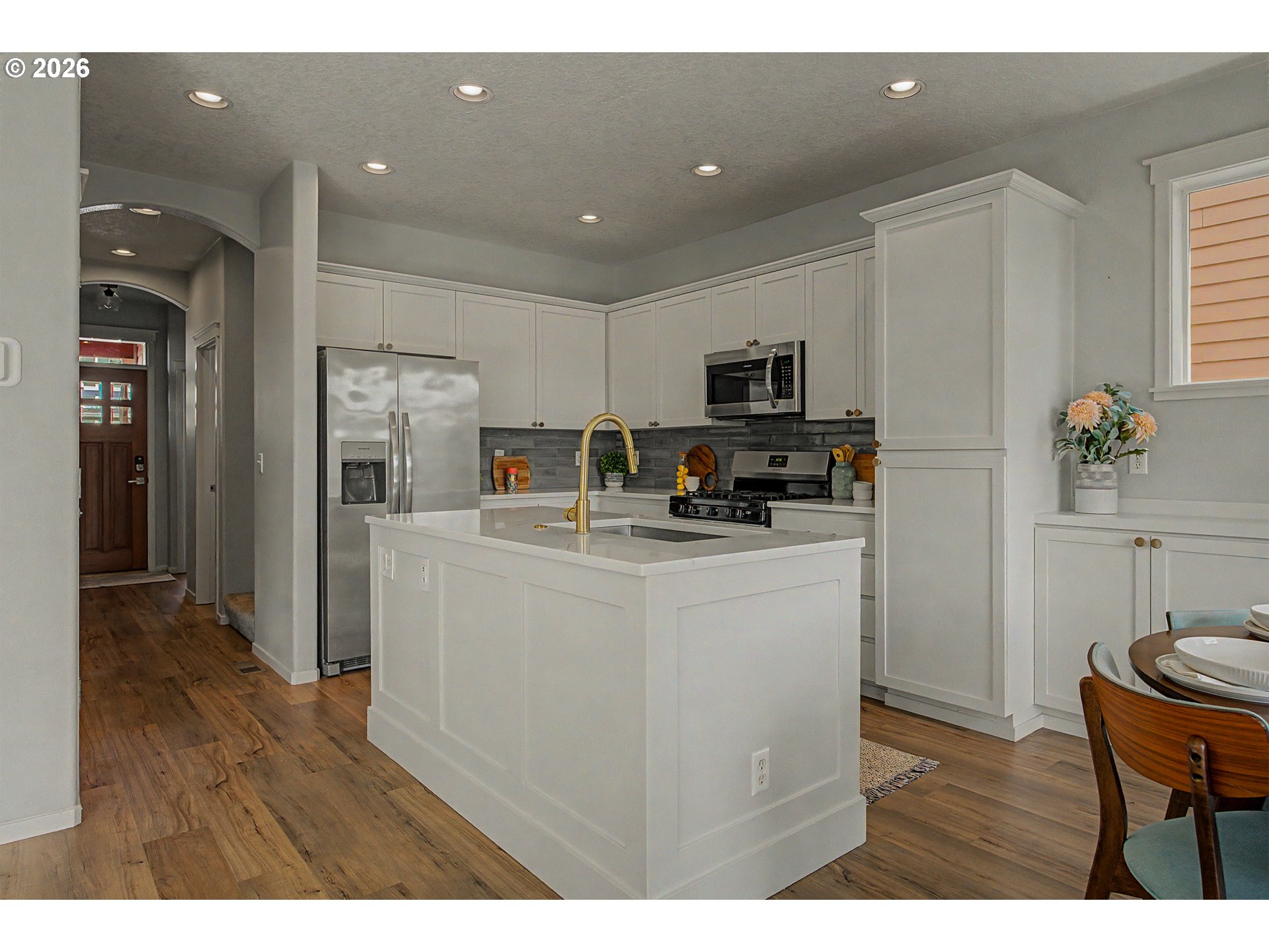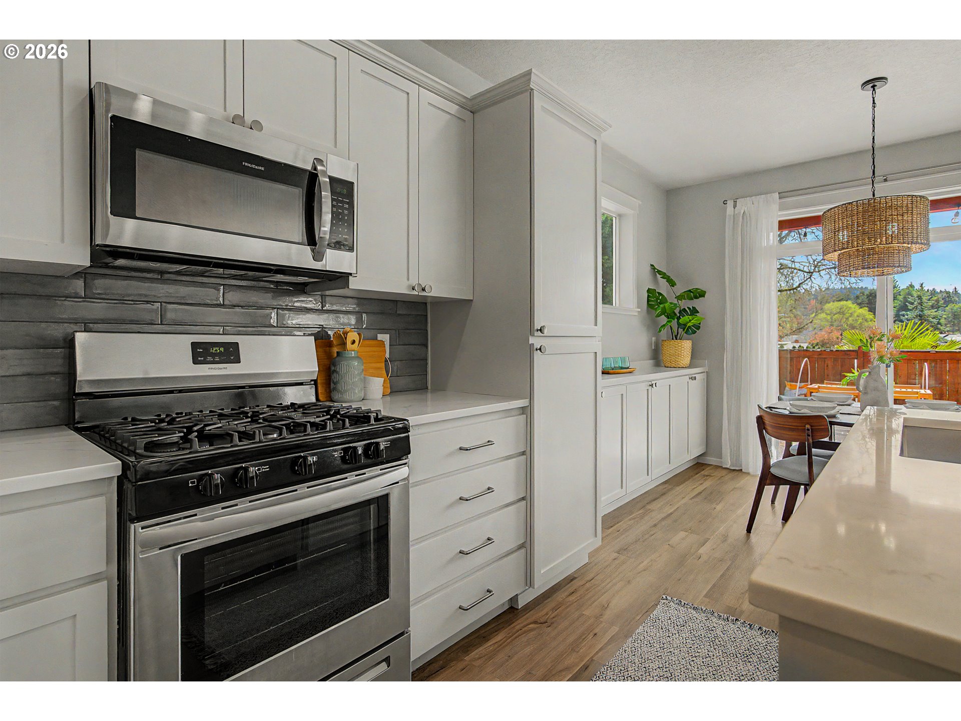 (503) 893-8874Tastefully updated Craftsman with designer touches and a private backyard. This 4 bed, 2.5 bath home (4th bedroom is staged as an office) offers a functional two-story layout with an attached 2-car garage and thoughtfully updated finishes throughout. The kitchen includes a central island, new appliances, and a dining space with custom buffet cabinetry. Every room reflects a clean, elevated feel. Enjoy indoor-outdoor living with a fully fenced backyard, perfect for entertaining, pets, or quiet evenings at home. Recent upgrades include a new roof, HVAC system, water heater, and updated kitchen and guest bath countertops.