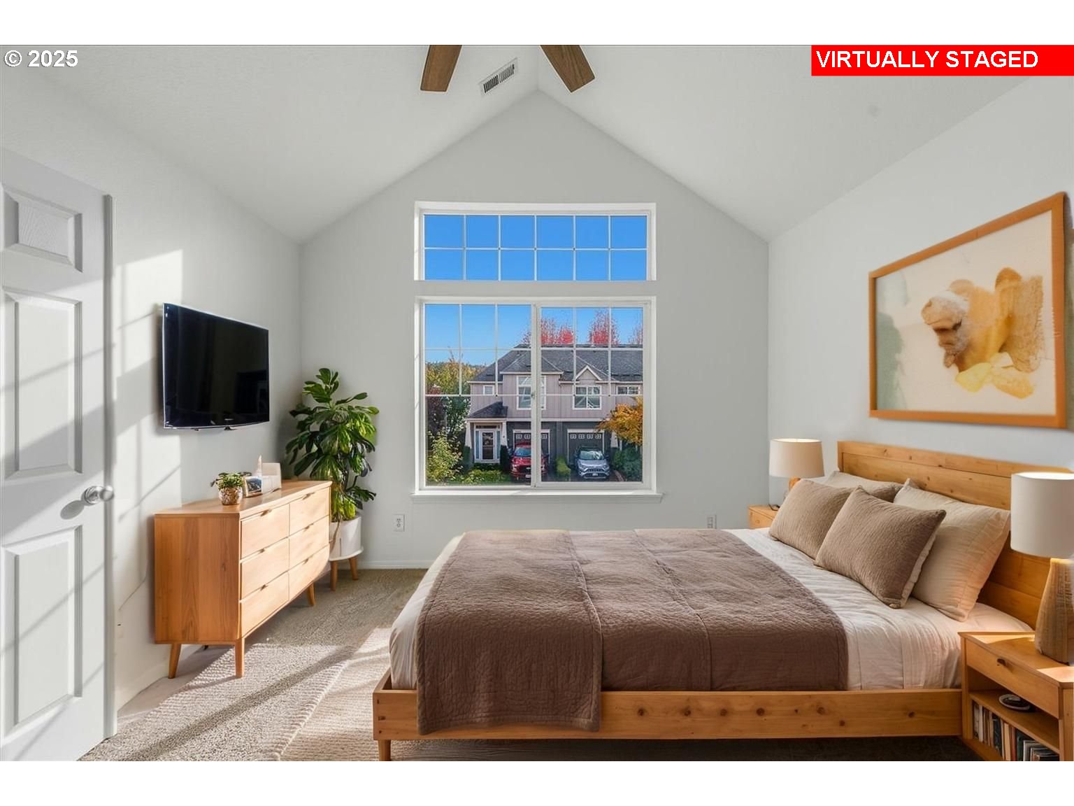 Very desirable, south facing end unit in the vibrant Arbor Vineyard community. Freshly updated with new main level flooring, new carpet and interior paint. Great floor plan with big open kitchen complete with custom countertops, eating bar, and new stainless appliances. Large main bedroom with en suite bathroom and walk-in closet. Upstairs laundry for ease and convenience. Sliding door opens to nice patio yard complete with gate to common area. New roof and gutters installed by HOA in November, 2025 and paid for by Seller. This one is GREAT!