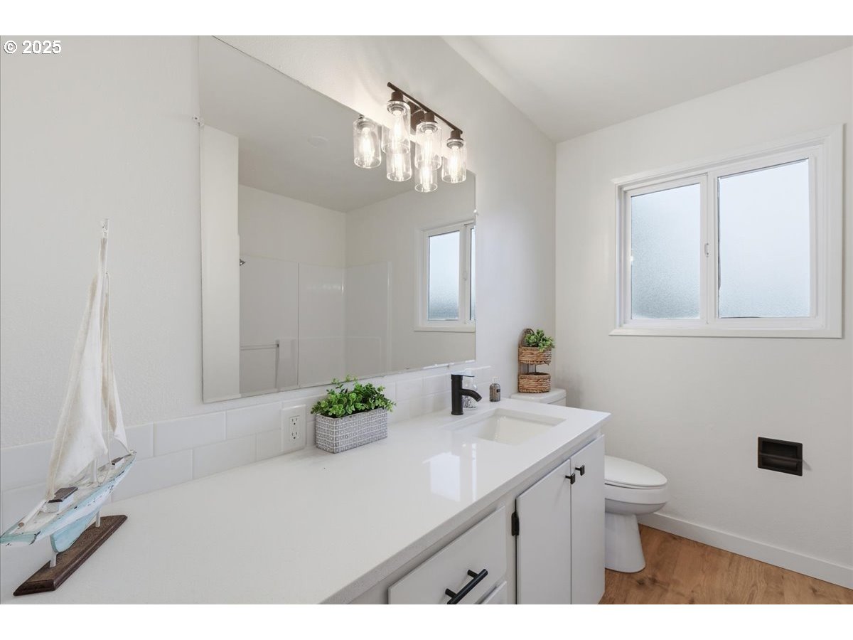 Beautifully remodeled 4 bedroom home on BIG lot in excellent established location.Open bright and light great-room features cozy fireplace, NEW luxury vinyl plank flooring.Primary bedroom on the main. Remodeled kitchen has new quartz counters, NEW stainless appliances, pantry. New paint and NEW carpet. Remodeled bathrooms.Vinyl windows, Mini -split. HUGE fenced lot.Room for RV parking. Don't wait make this stunning property yours before it's gone!