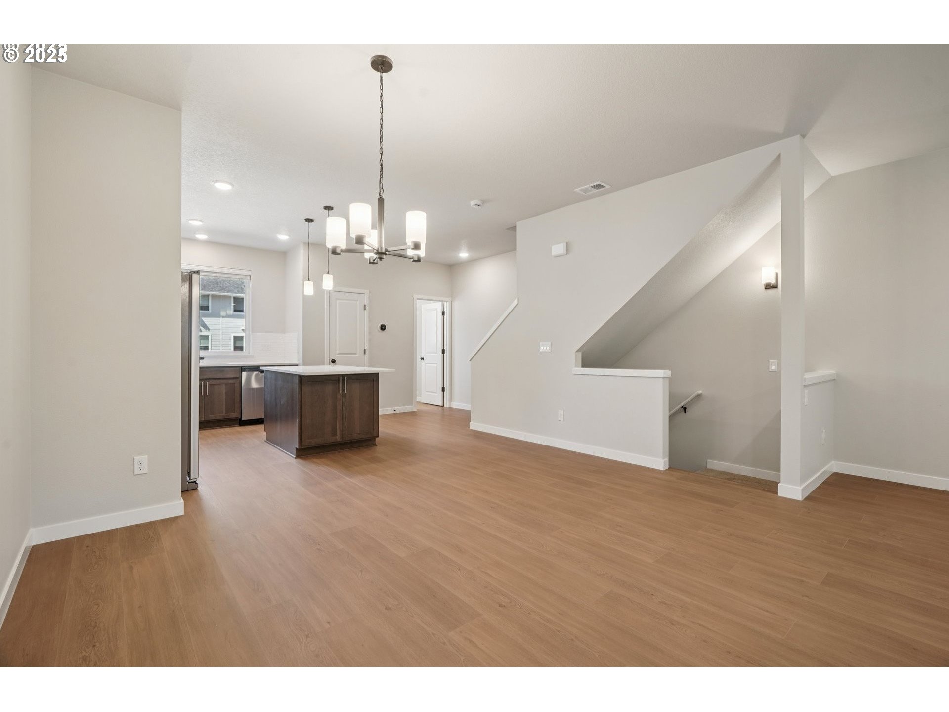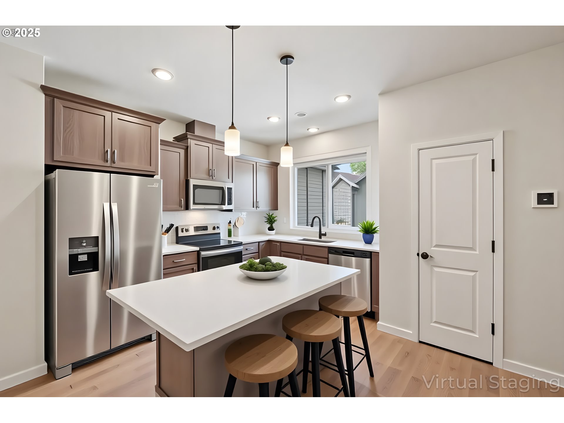 Step into a space designed with care and intention - North facing, three spacious bedrooms- each with its own private full bath, making it ideal for multigenerational living, roommates, or simply giving your guests the privacy they deserve. The lower-level suite with no stairs adds thoughtful flexibility for anyone needing easy access. The heart of the home is the expansive great room, where high ceilings and beautiful laminate floors invite you to gather, unwind, and make memories. The open kitchen is a dream; anchored by a stunning quartz island, complete with stainless steel appliances, and a walk-in pantry. The stacked washer/dryer make daily life just a little easier. Central A/C keeps you comfortable through every season. Outside, a fenced private yard offers a quiet retreat for morning coffee or evening connection. Just moments from Intel, Market of Choice, shopping, dining, and everything you love. HOA includes exterior maintenance: Roof, Siding, Windows and front yard/common area landscaping.