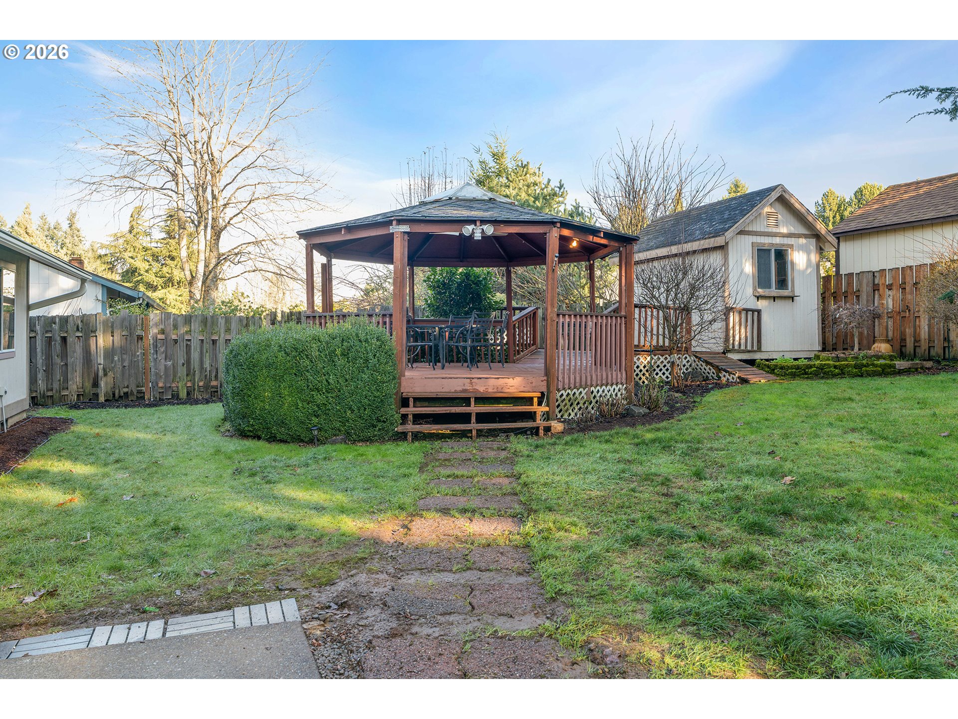 (503) 893-8874Set on a charming Tualatin street, this single-level ranch offers timeless style, an easy functional layout, and the peace of mind of a roof that’s less than 10 years old. Vaulted ceilings and abundant natural light fill the living room, while a formal dining space just off the kitchen is ideal for gatherings. The kitchen features stainless steel appliances, an eat-up bar, and large windows overlooking the private backyard.One wing of the home features three bedrooms, including a spacious primary suite with multiple closets and an ensuite bath, along with a full hallway bathroom. Just off the kitchen, a cozy family room with a fireplace creates a warm space to relax or entertain. A laundry room and a flexible bedroom—perfect for a home office or guest space—complete the layout.Outside, the fully fenced backyard feels like a private retreat with a gazebo for entertaining, a storage shed, and plenty of room to relax or play. An attached two-car garage rounds out this inviting home in a desirable residential neighborhood.