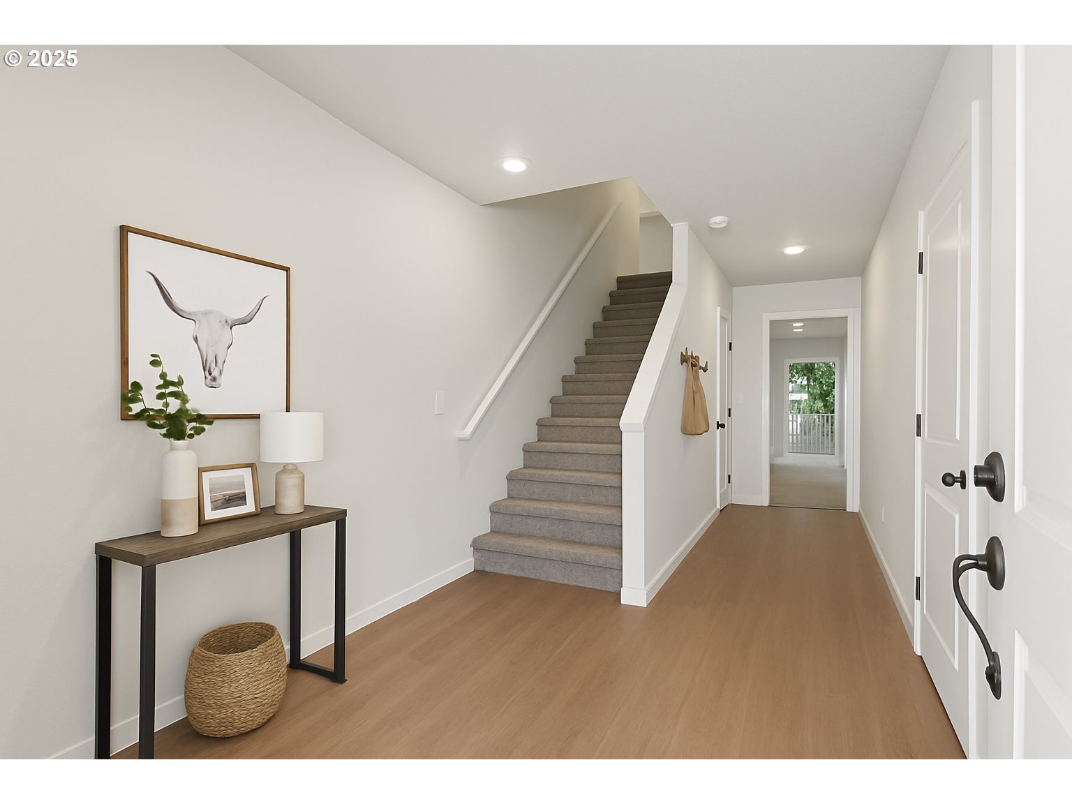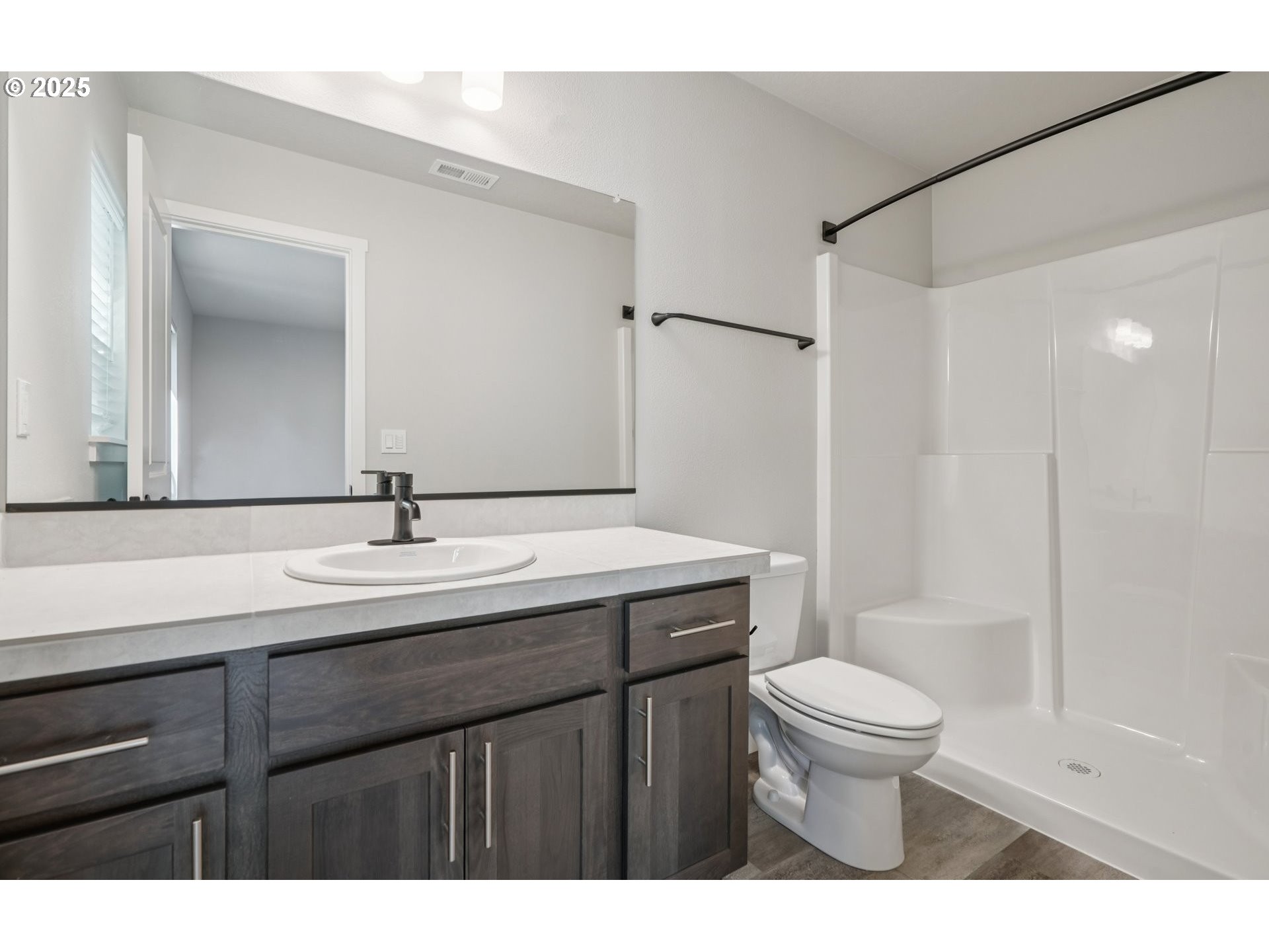 New Construction with high ceilings and three spacious bedrooms, each featuring a private full bath—ideal for multigenerational living or roommates. Convenient lower-level suite with no stairs offers flexible and accessible living. The expansive great room features laminate flooring and an open-concept layout. Kitchen includes a quartz island, stainless steel appliances, and walk-in pantry. Stacked washer/dryer, refrigerator, blinds are all included. Central A/C for year-round comfort. Private fenced yard provides outdoor space for relaxation. Prime location near Intel, Market of Choice, shopping, dining, and major employers. HOA covers exterior maintenance including roof, siding, windows, and front yard/common area landscaping.