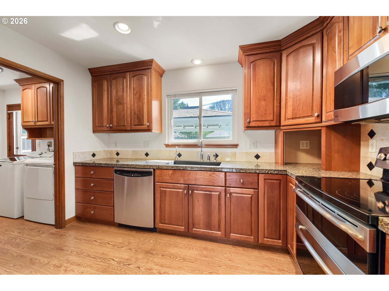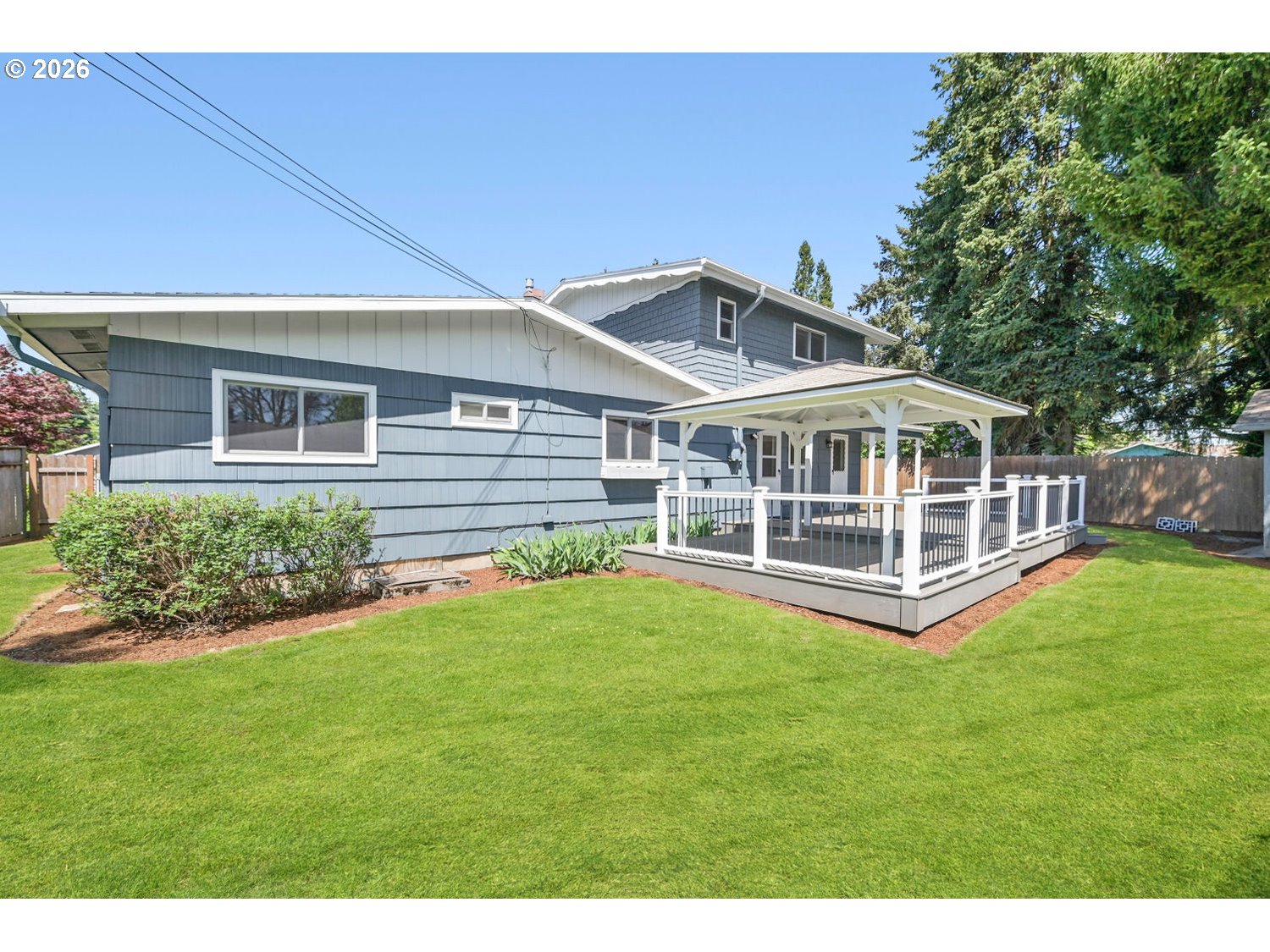 Beautifully remodeled mid-century home on a quiet cul-de-sac lot! On the market for the first time since 1963, this home has been immaculately maintained and thoroughly updated. Offering a brand-new architectural composition roof, Andersen vinyl windows, fresh interior paint, upgraded electrical panel, recent HVAC, and more, it's completely turnkey! With primarily main-level living, the home offers three bedrooms on the main level and two full bathrooms, including a fully remodeled bathroom with tile floors and roll-in tile shower with bench and frameless door for easy accessibility. The main floor offers extensive hardwood floors and a beautifully remodeled kitchen with custom cherry cabinetry, instant hot water, and stainless steel appliances, including a double-oven range and free-standing refrigerator. A large family room is anchored by a gas fireplace with Roman brick surround and custom traditional mantel. The upper floor features all-new carpet, two large bedrooms with vanities and generous closet space, and a large storage room. Outstanding lot with fully fenced backyard, featuring a large composite deck with gazebo, tool shed with electricity, and abundant gardening space. Wonderful Hillsboro location, close to local amenities and Washington County employers!