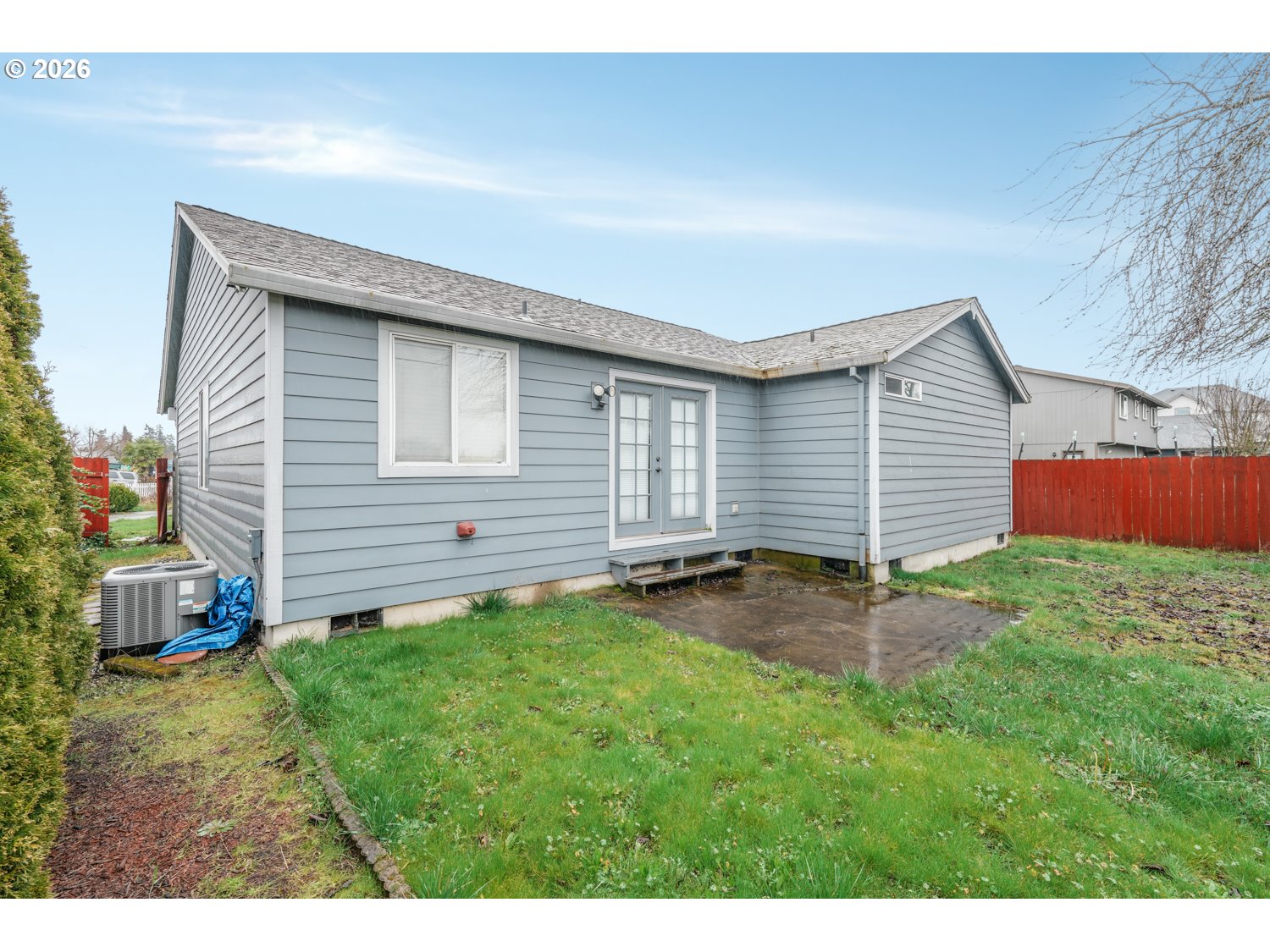 Move-in ready ranch-style home tucked away on a quiet cul-de-sac in the desirable Mohawk Meadows neighborhood! This beautifully maintained 3-bedroom, 2-bath home features gorgeous wood flooring throughout the living room and bedrooms and an open-concept layout ideal for entertaining. The spacious living room is filled with natural light from large windows, creating a warm and inviting atmosphere. The dining area opens to the backyard through French doors, offering seamless indoor-outdoor living. The kitchen is a standout with stainless steel appliances, granite countertops, beautiful cabinetry, and lots of prep space. The private primary suite includes a walk-in closet and en-suite bath. Two additional bedrooms, a full guest bath, and a convenient laundry room complete the interior. Enjoy an easy-to-maintain fenced backyard perfect for relaxing or hosting gatherings. Located just minutes from dining, shopping, schools, golf courses, and Portland Community College’s Rock Creek campus. With fantastic walk and bike scores, this home supports an active lifestyle in a prime location!