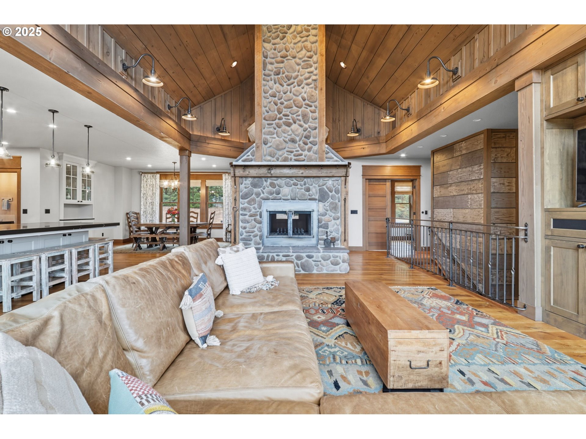 (503) 893-8874Perched on over 30 pristine acres, this one-of-a-kind residence was crafted with intention and premium finishes- not a single detail has been overlooked! A stunning double-sided stone fireplace anchors the open-concept main level, accented by rich wood floors, reclaimed lumber walls and ceilings, and expansive Milgard wood windows that bring the outdoors in. The gourmet kitchen features Brazilian soapstone countertops, custom cabinetry, and a full suite of high-end appliances, including a Sub-Zero built-in refrigerator and beverage fridge, Wolf 6-burner gas range, Wolf steam oven and microwave drawer, Miele dishwasher, pot filler, and a striking reclaimed lumber range hood. A sprawling island with integrated seating seamlessly connects to the dining and living areas for easy entertainment, along with access to the cedar deck perfect for enjoying Oregon sunsets. Main-level living at its finest, with all bedrooms on one floor, including a beautifully appointed primary suite showcasing vaulted ceilings and wooded views. The spa-inspired ensuite bath features dual vanities, a custom tiled walk-in shower, and a freestanding soaking tub. A fully customized walk-in wardrobe includes built-in storage and stackable washer/dryer hookups for added convenience. The lower level unveils a versatile 32’ x 24’ recreation area complete with a full bath—ideal as secondary living space. Perched above the three bay garage is an additional bonus space, great for a craft or play room. Property features include a 50-year presidential roof, fresh exterior stain (2025), cedar siding, central vacuum system, integrated surround sound (interior & exterior), and a large utility room with ample storage. Outside you’ll find a three-bay shop, dog kennel with wash station, chicken coops and an abundance of land to explore. Nestled amidst lush woodlands, this residence offers unparalleled privacy and breathtaking nature views from every angle!