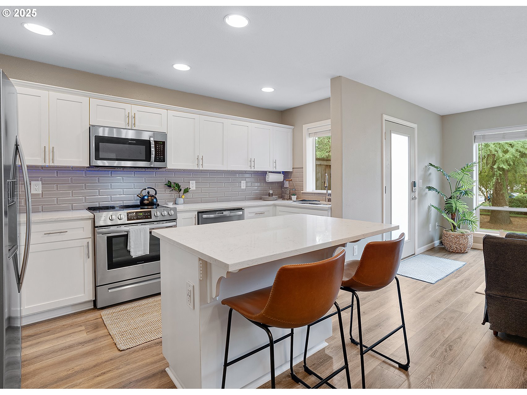 OPEN Sunday 11/9 from 1-3PM! New price on this thoughtfully updated, move-in ready Tualatin townhouse offering style, value and a prime location. This 3 bedroom, 2.5 bath home has an open floor plan and a bright kitchen with eat-in island and living space that opens to a private patio with access to grassy commons. So many updates...granite counters, newer appliances, updated light fixtures and fresh interior paint - in addition to laminate flooring throughout the home (that's right, no carpet) & refreshed bathrooms. Ample storage, including a garage. Dreamy primary suite has vaulted ceilings, walk-in closet with built-ins and totally updated ensuite bathroom with travertine tile shower. Conveniently located near I-5,shopping and schools. Wonderful well cared for community.