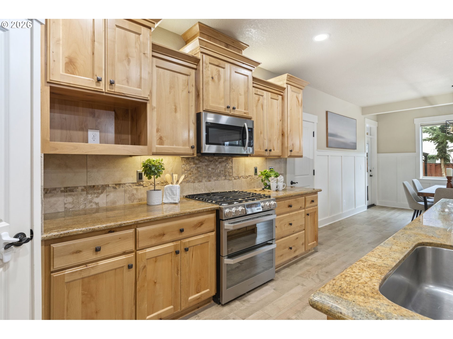 FreeStandingGasRange, Granite, Island, Microwave, Pantry, StainlessSteelAppliance
