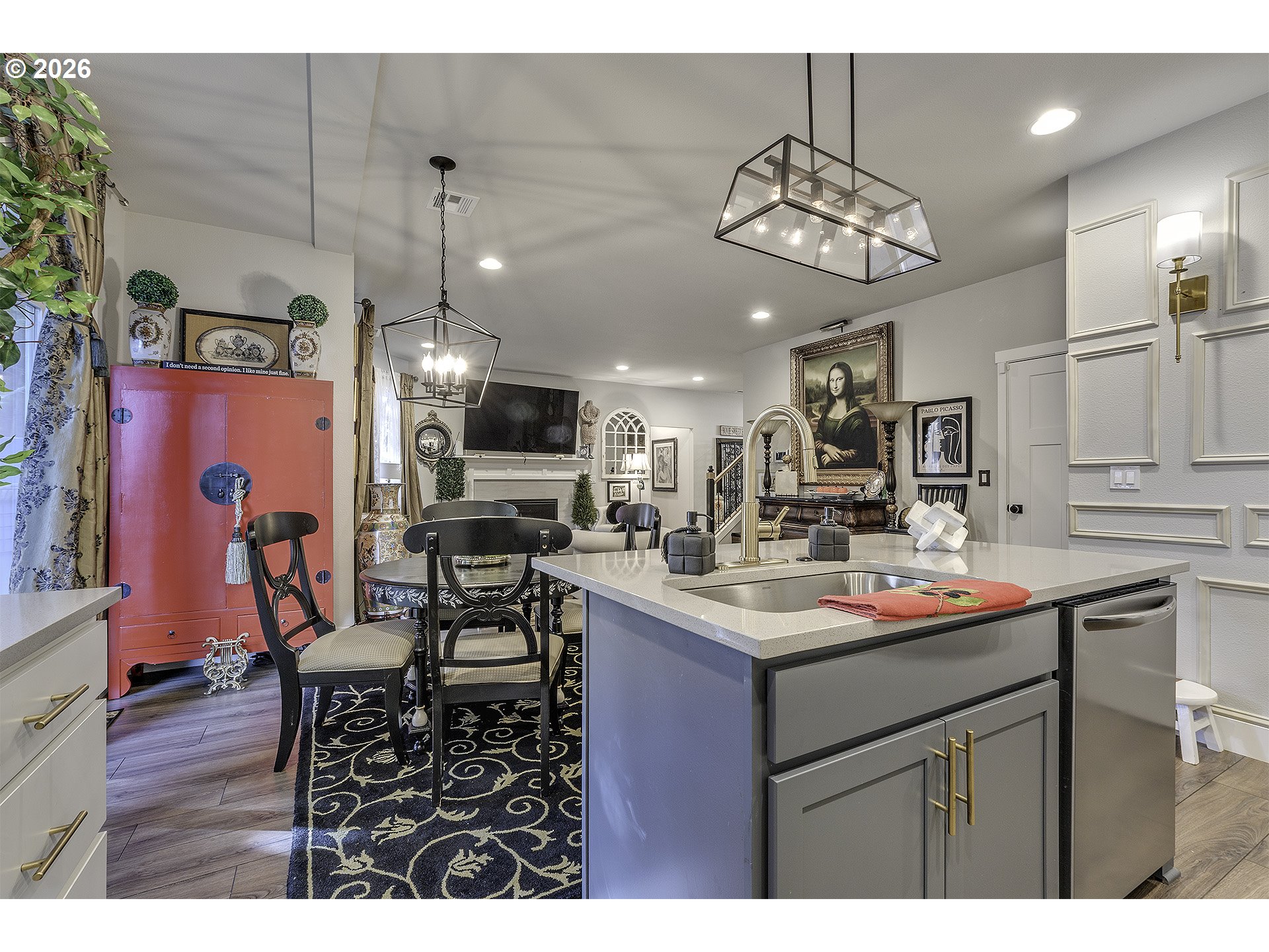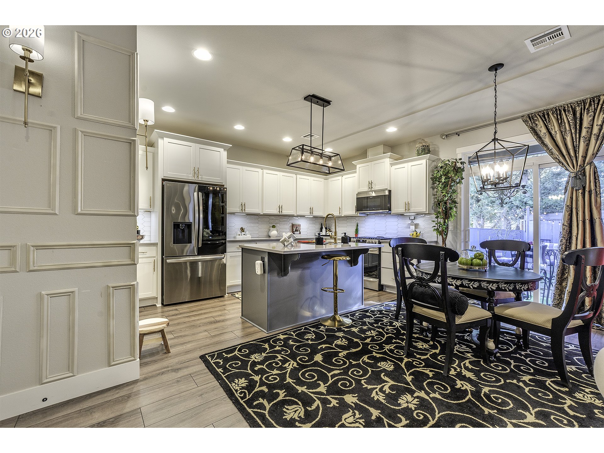 Disposal, FreeStandingGasRange, Island, Microwave, Pantry, Quartz, StainlessSteelAppliance