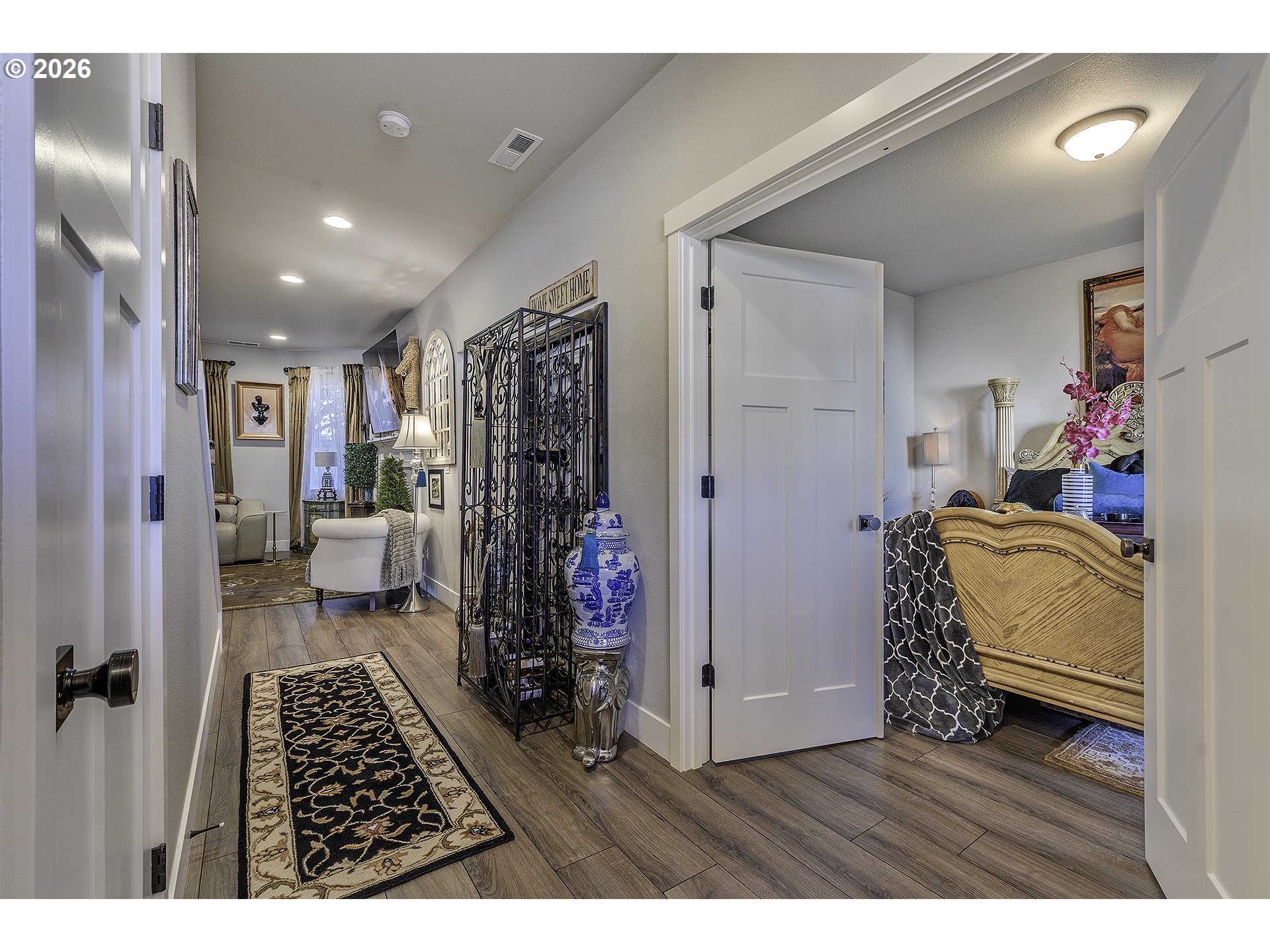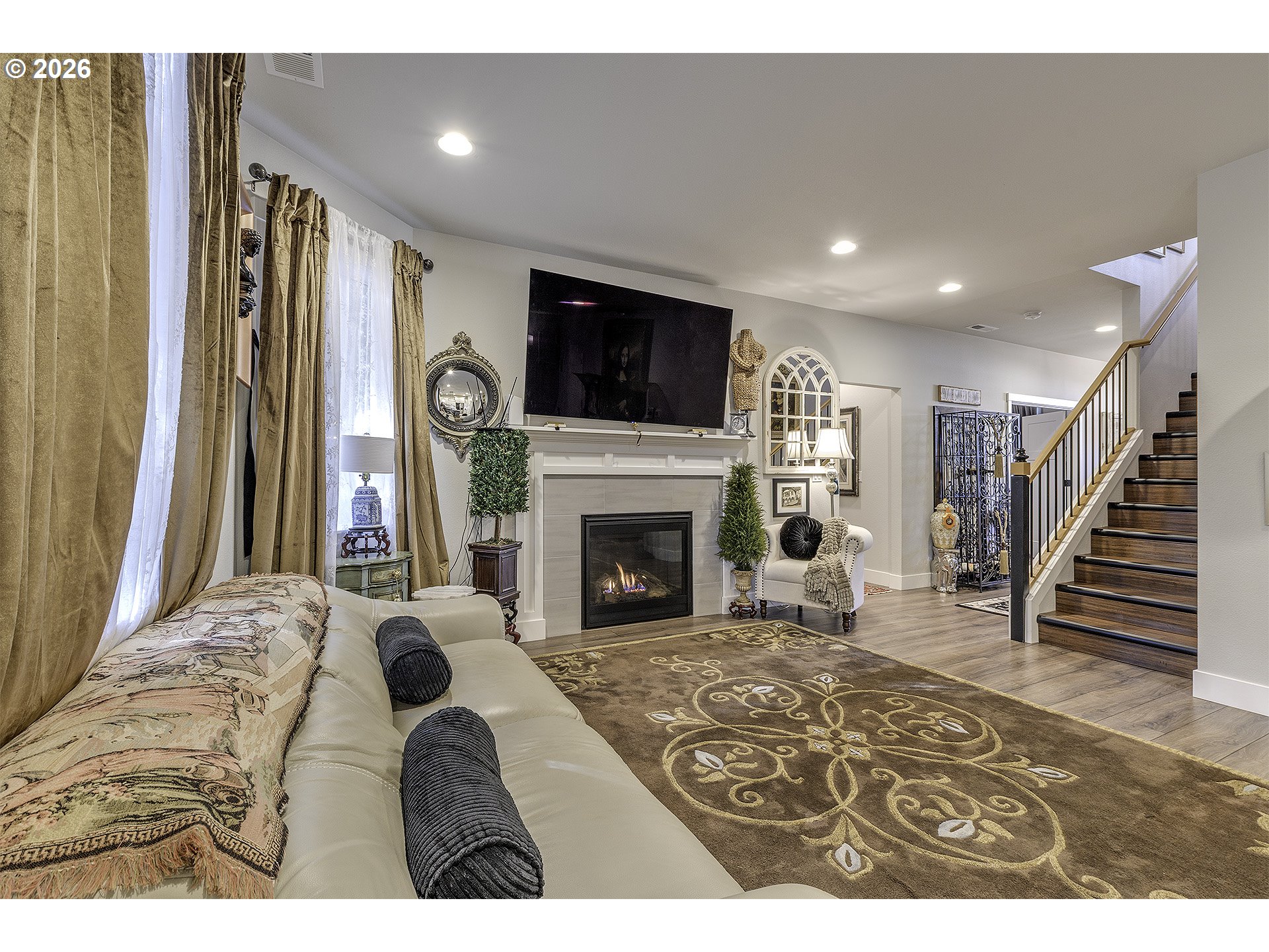Come see this beautifully maintained home offering modern comfort, thoughtful upgrades, and exceptional convenience. A welcoming covered front porch sets the tone as you enter the home, where a versatile main-level den/office or bedroom provides flexibility for today’s lifestyles. The heart of the home features a warm, cozy gas fireplace anchoring an open-concept great room, kitchen, and living area perfect for both everyday living and entertaining.The kitchen is a standout with quartz countertops, soft-close cabinets and drawers, custom lighting and hardware, and a generous walk-in pantry. A sliding glass door leads to a spacious backyard, complete with custom-built privacy fencing, professional landscaping, and an in-ground sprinkler system, offering a private outdoor retreat. Upstairs, plantation shutters add timeless elegance throughout. The expansive owner’s suite is a true sanctuary, featuring dual sinks, a soaking tub, a walk-in shower, and a private commode. Three additional bedrooms each with walk-in closets provide ample space for family, guests, or hobbies. Ideally located with easy highway access, this home is convenient to multiple shopping areas, walking trails, a new high school, and a recently completed highway overpass, enhancing both accessibility and long-term value. This home blends style, function, and location tucked into a low-traffic neighborhood, make an appointment today.