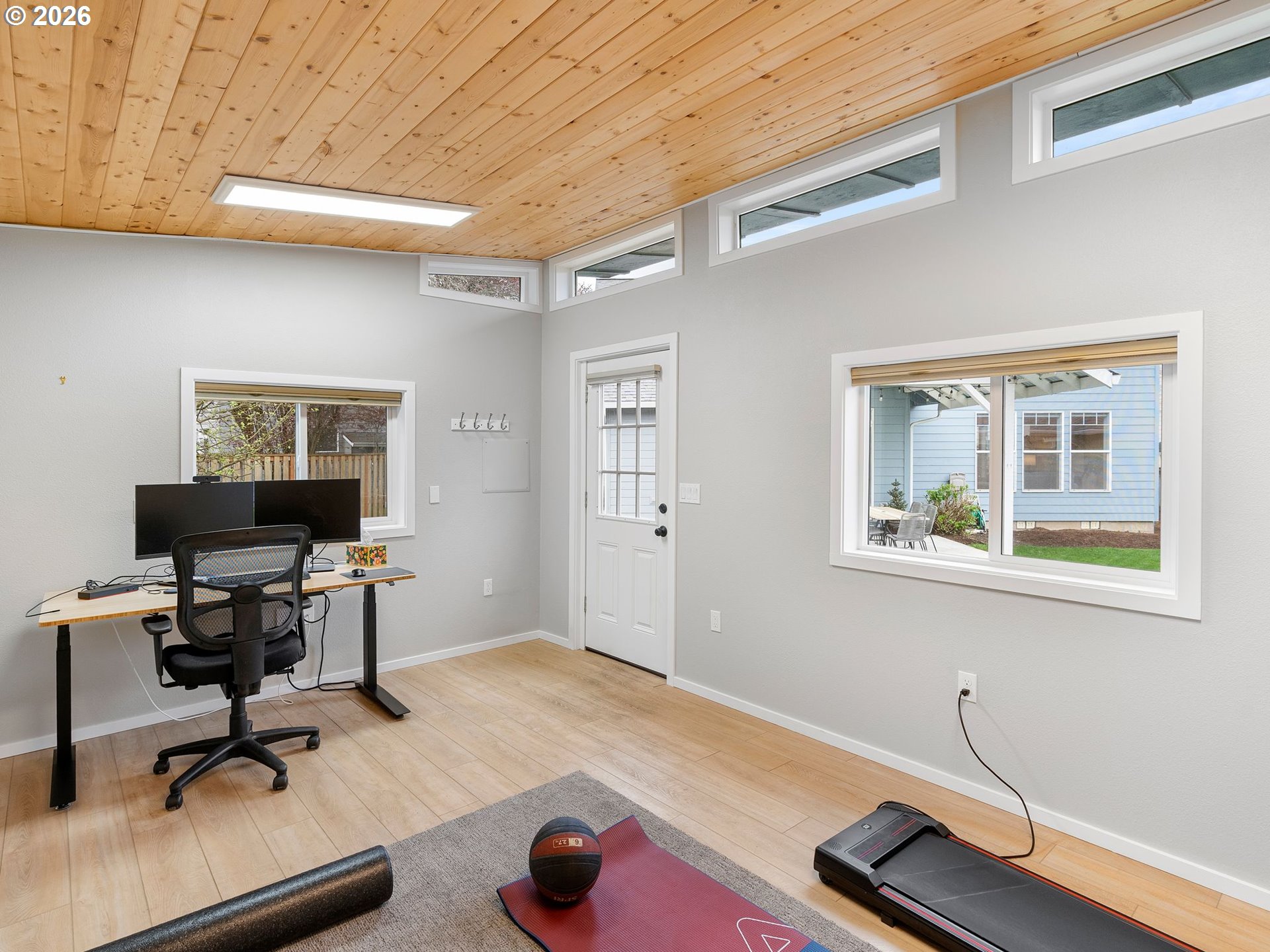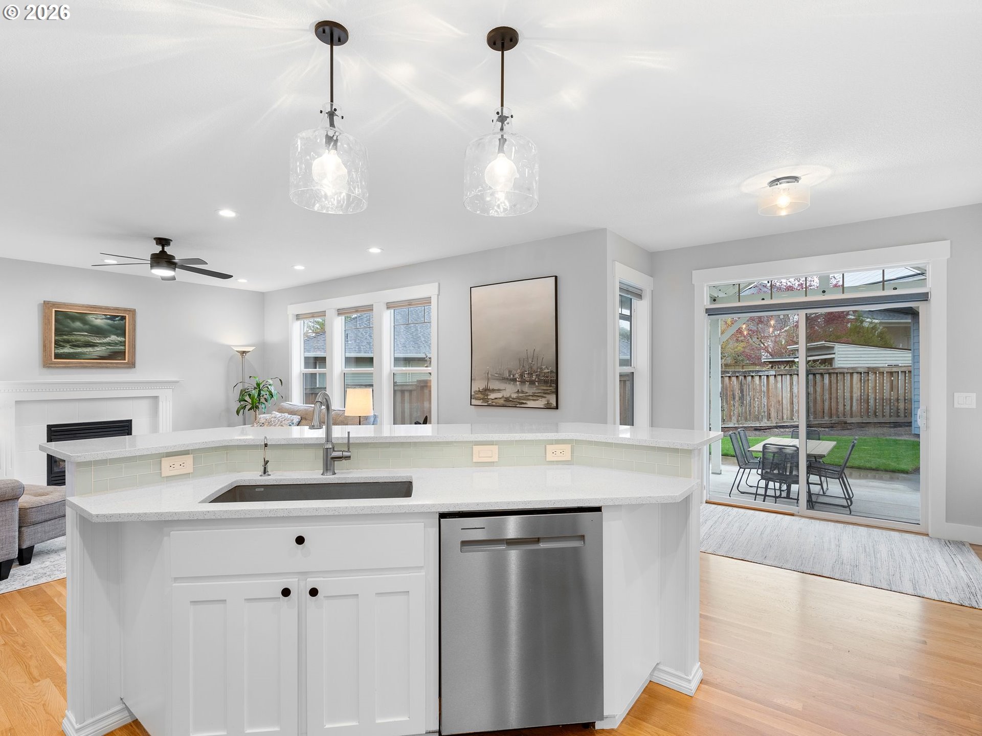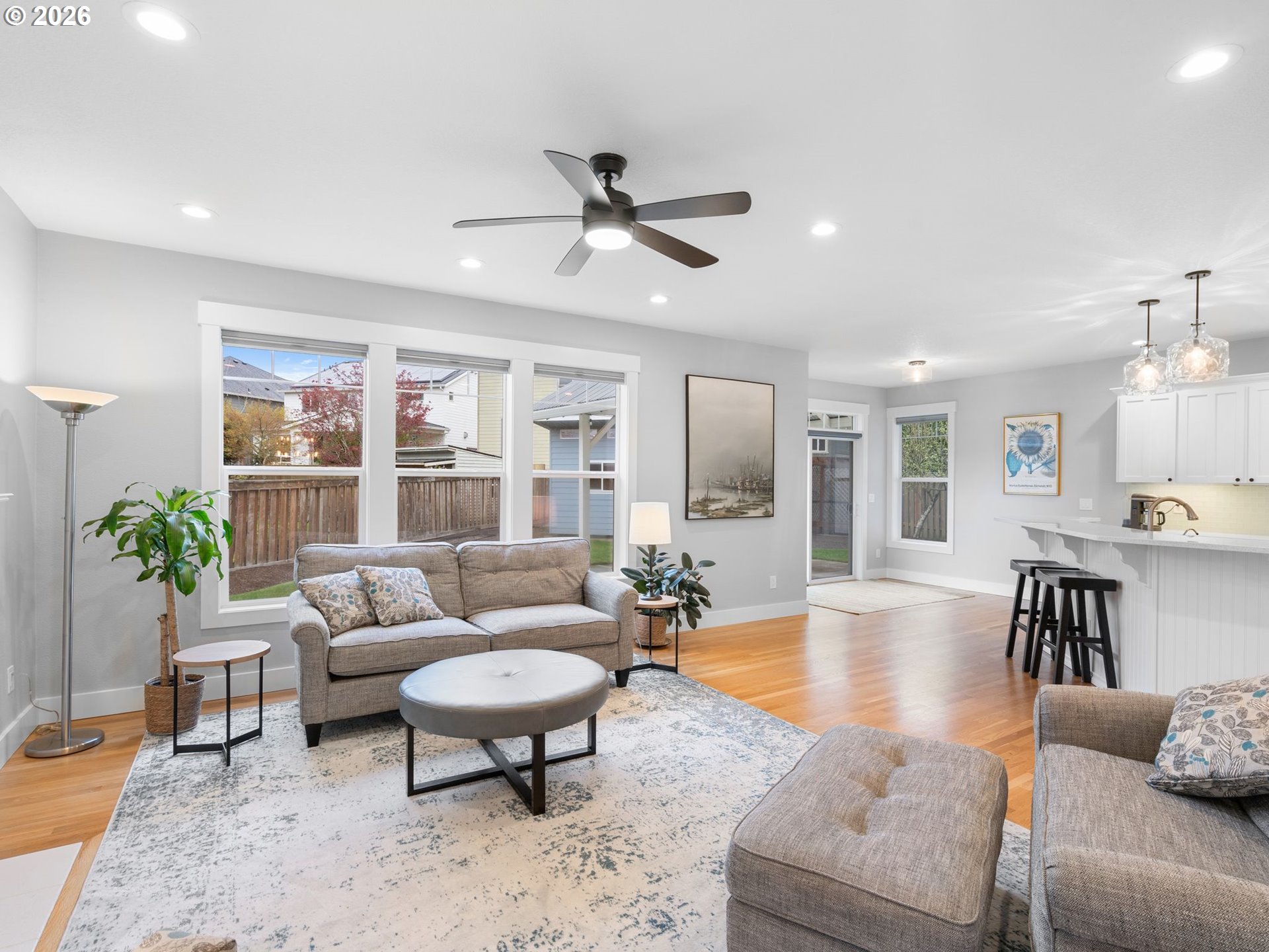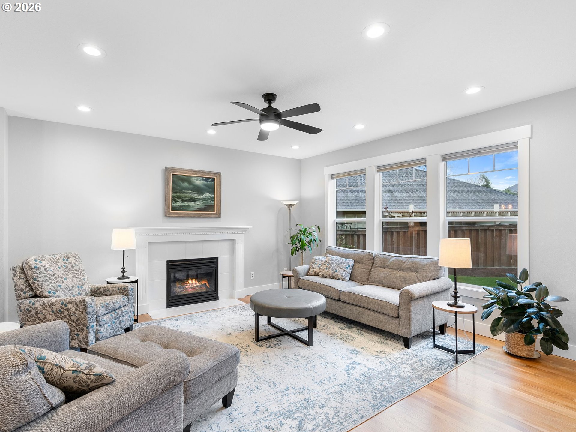 Located in the highly desirable Woodhaven neighborhood of Sherwood, this exceptionally well-cared-for home is truly move-in ready. Offering 3 bedrooms, 2.5 baths, a main-level den, spacious bonus room, and a detached 192 sq. ft. flex space ideal for a wellness retreat, studio, or other multi-use needs, this home combines flexibility, function, and thoughtful updates throughout.The main level features an open-concept layout with rich hardwood floors, a cozy gas fireplace, and a bright kitchen nook overlooking the backyard. The updated kitchen offers quartz countertops, stainless steel appliances, a gas range, ample storage, and tasteful details including wainscoting. A main-level office or den provides the perfect space for working from home, hobbies, or a quiet retreat.Upstairs, the spacious primary suite includes a walk-in closet and an updated bathroom with a soaking tub and shower. Two additional bedrooms and a large bonus room offer plenty of room for guests, a media space, gym, or possible fourth bedroom.Outside, enjoy lush landscaping, a covered patio ideal for entertaining, and a fully fenced backyard. Ideally located on a dead-end cul-de-sac and across from green space, this home is just moments from parks, trails, schools, the YMCA, and charming Old Town Sherwood.Extensive recent improvements include major system upgrades such as the furnace, air conditioning, roof with gutter guards, plumbing, and water heater, along with beautifully updated baths, professional interior paint, new trim and baseboards, solid-core doors, updated lighting, ceiling fans, window coverings, and more. This is a rare opportunity to own a beautifully updated home in one of Sherwood’s most sought-after neighborhoods.