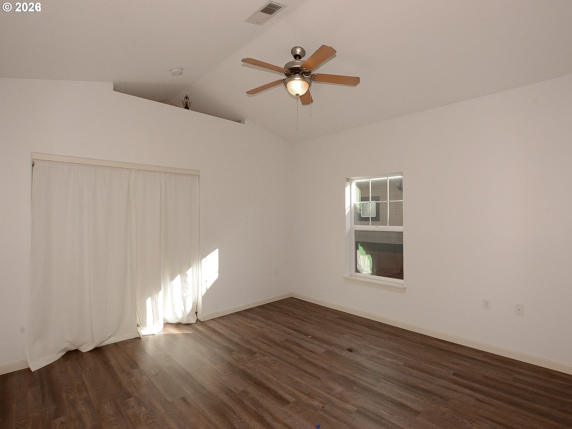 Upper-level corner unit in Woodhaven Crossing offering added privacy and strong natural light with a great-room layout and vaulted ceilings. Gas fireplace, forced-air gas heat with A/C, granite kitchen counters, and a private setting backing to trees. **Deck is currently being replaced by the HOA with a new composite deck**, providing long-term durability and added value for the next owner. Single-car garage plus one reserved parking space. HOA includes pool, clubhouse, fitness room, water, sewer, and garbage. Convenient access to trails, parks, YMCA, wineries, and Old Town Sherwood. Buyer to verify all information.