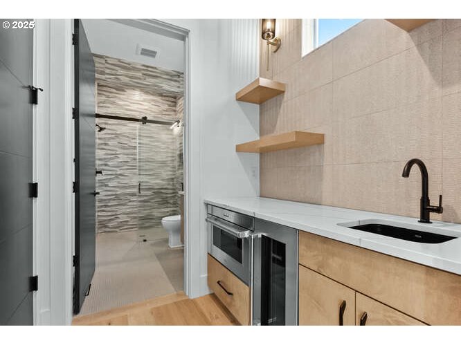 (503) 893-8874** Open Houses on Sat 14th & Sun 15th from 1 to 3 ** This architectural masterpiece by award-winning JT Roth Construction took center stage at the 2023 Street of Dreams, receiving top honors for Best Primary Suite, Best Kitchen & coveted People’s Choice Award. Built with a relentless focus on luxury & modern sophistication, every inch of this nearly new home reflects exceptional craftsmanship and design. The exterior pairs sleek contemporary lines with warm natural materials, creating a timeless yet dramatic welcome. A stunning pivoting walnut entry door opens to a light-filled interior where floor-to-ceiling windows. The open-concept main level is an entertainer’s dream. A sculptural fireplace & showcase wine wall anchor the living room, while the chef’s kitchen impresses with a full Sub-Zero/Wolf appliance package, hidden walk-in pantry & butler’s pantry. Accordion glass doors seamlessly connect the indoor living space to a covered outdoor kitchen complete with heaters for that perfect year-round gatherings & game day. The main-level primary suite is the crown jewel: a private sanctuary with a spa-inspired ensuite featuring a soaking tub and custom walk-in shower. A luxurious guest suite—complete with a kitchenette and full bath—also sits on the main floor, offering convenience and privacy. Upstairs, a versatile loft provides the ideal home workspace, alongside a dedicated home theater & a hidden man cave/home gym for recreation & relaxation. The professionally landscaped backyard is designed for effortless enjoyment, featuring a sunken fire pit, hot tub, & expansive patio. The oversized three-car garage includes a 12-foot-tall bay—perfect for luxury vehicles, RV storage, or adventure toys. Added upgrades elevate the home even further, including designer blinds & increased storage. Located in the heart of Sherwood, this residence delivers an exceptional lifestyle, small-town charm, top-rated schools, acclaimed wineries & a vibrant community.