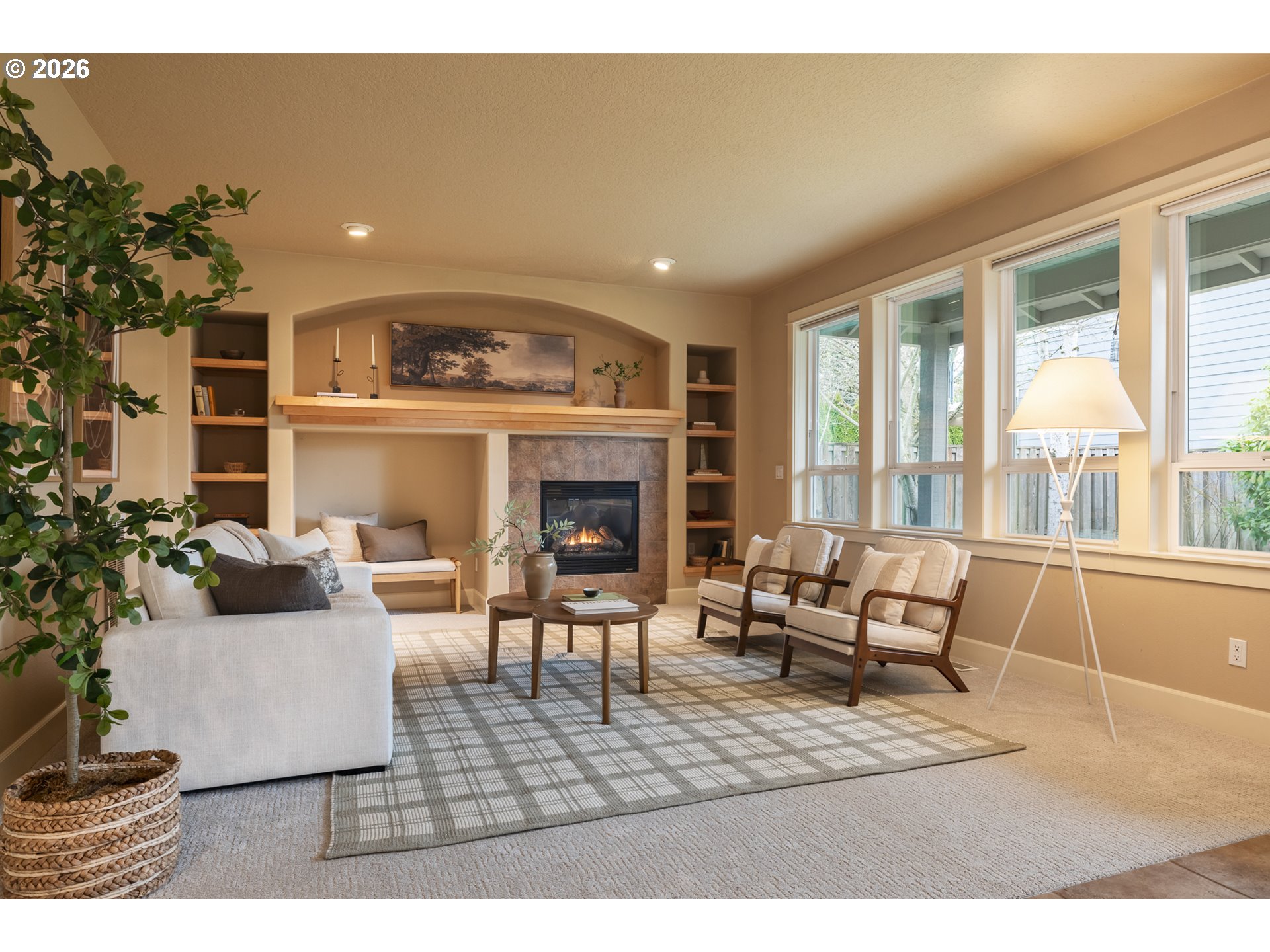 If you’re looking for peace, quiet and an easy life, look no further! This 2004 Renaissance-built home sits on an idyllic dead-end street in a convenient, central location in beautiful Sherwood, Oregon. Head in any direction and you will quickly run into one of many parks or green spaces. Old Town Sherwood, the historic heart of the city with its restaurants, wine-tasting rooms, antique shops and more, is just a mile away. Archer Glen Elementary, one of Oregon’s top-ranking elementary schools, is a half mile from the front door and Sherwood Middle School and High School are within an easy mile-and-a-half! The home itself boasts a spacious, highly-functional floor plan with tall ceilings and generous formal and informal living spaces. A sunny, main floor office off the foyer makes the perfect work-from-home space (or cozy reading room). The generous kitchen, with great storage, a cooking island with bar seating, and an informal dining area, is open to an equally spacious family room with new carpet, gas fireplace and built-ins. The newly carpeted upstairs features three bedrooms, a large laundry room with great storage, and an extra-large bonus room (or fabulous 4th bedroom). The primary suite is incredibly spacious and private and features a fabulous ensuite bathroom, complete with soaking tub, walk-in shower, two separate vanities, and a large walk-in closet. The fenced backyard features lovely, mature landscaping (home to many a bird) and a covered patio for year round use and enjoyment. The icing on the cake is the newly installed solar panels offering valuable, on-going savings on your monthly utility bills.