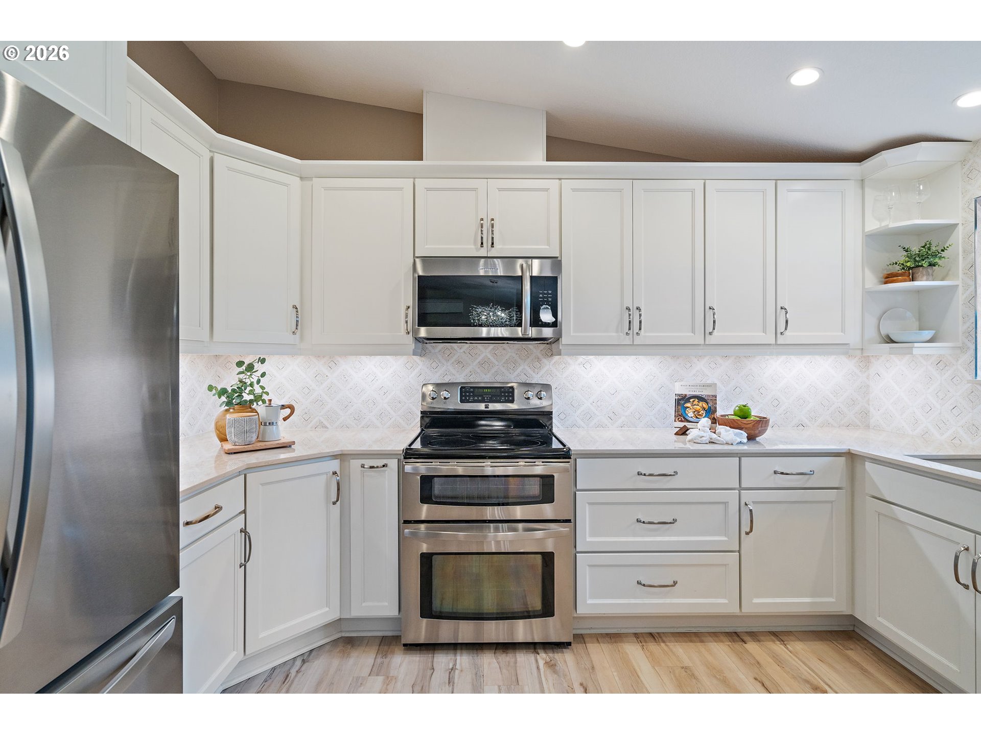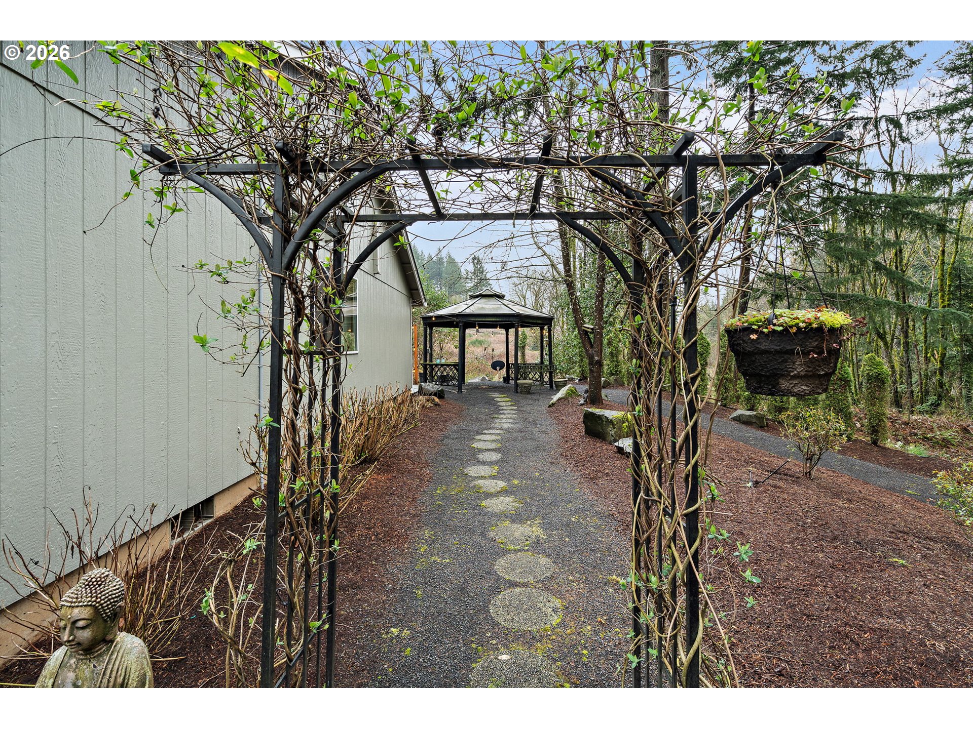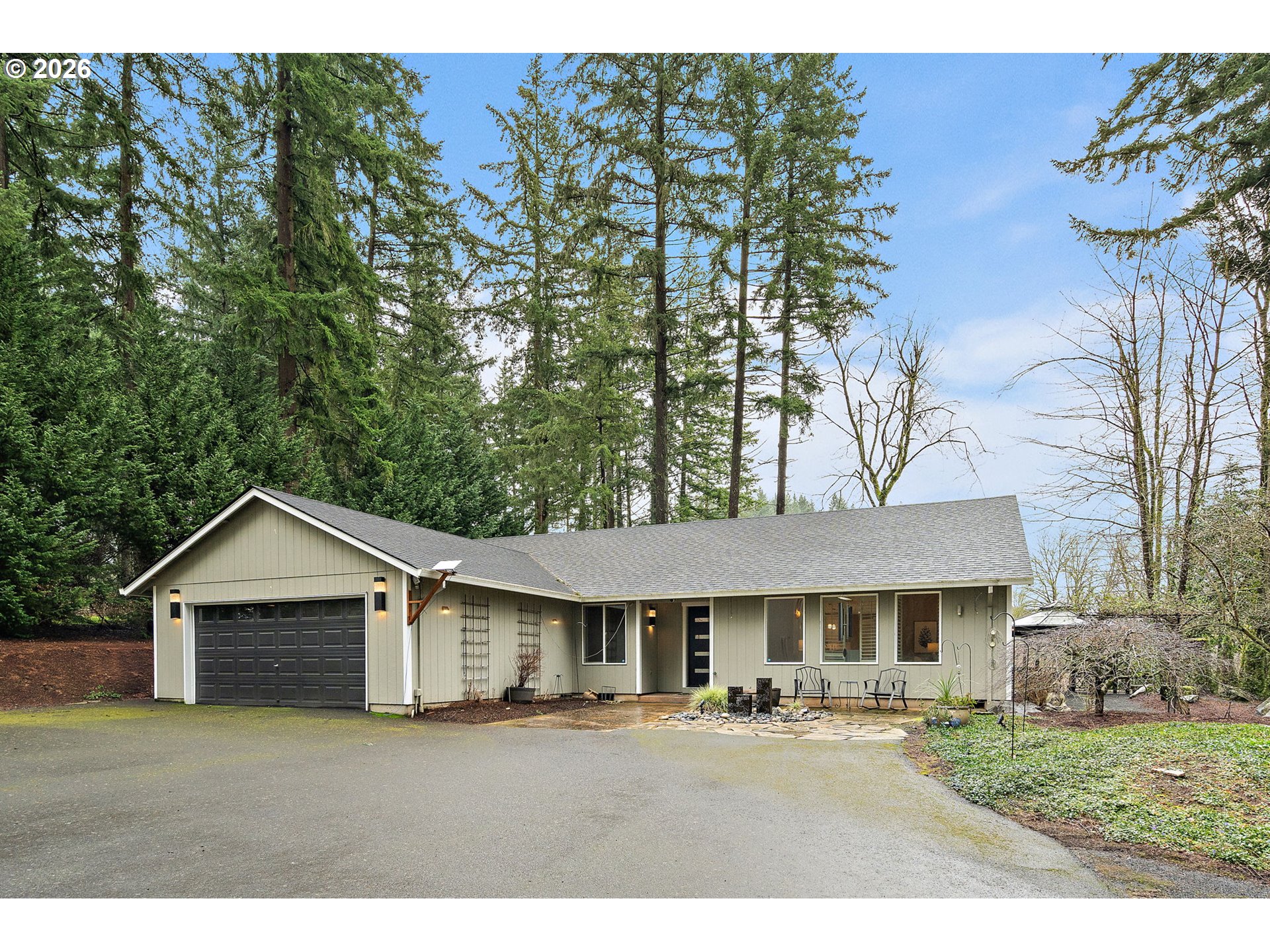 Tucked out of sight at the end of a long private drive, this recently remodeled one-level home offers extraordinary privacy on 2.68 lush acres with a huge shop surrounded by trees. Built in 2007, this home features vaulted ceilings, large windows with shutters, and LVP flooring throughout the main living areas. The gorgeous kitchen showcases luxurious Dekton countertops, expansive tile backsplash, white cabinetry, stainless appliances, and a walk-in pantry, opening to spacious dining and living spaces. The primary ensuite includes a walk-in closet with California Closets organizer, blackout blinds, Outside, enjoy a gazebo, expansive grounds, and a large 1,200 SF (approx) shop with 2nd level storage and an RV-size door - ideal for hobbies, storage, or workspace needs.Other recent updates include a new composition roof (2025), mini splits, newer water heater, and exterior paint. Zoned AF-10 in unincorporated Washington County, the property allows a wide range of potential for residential, agricultural, and home-based uses (buyer to verify). A peaceful setting with easy access to Nyberg Woods shopping, Wilsonville Town Center, parks, golf, Meridian Park Hospital and Sherwood schools.