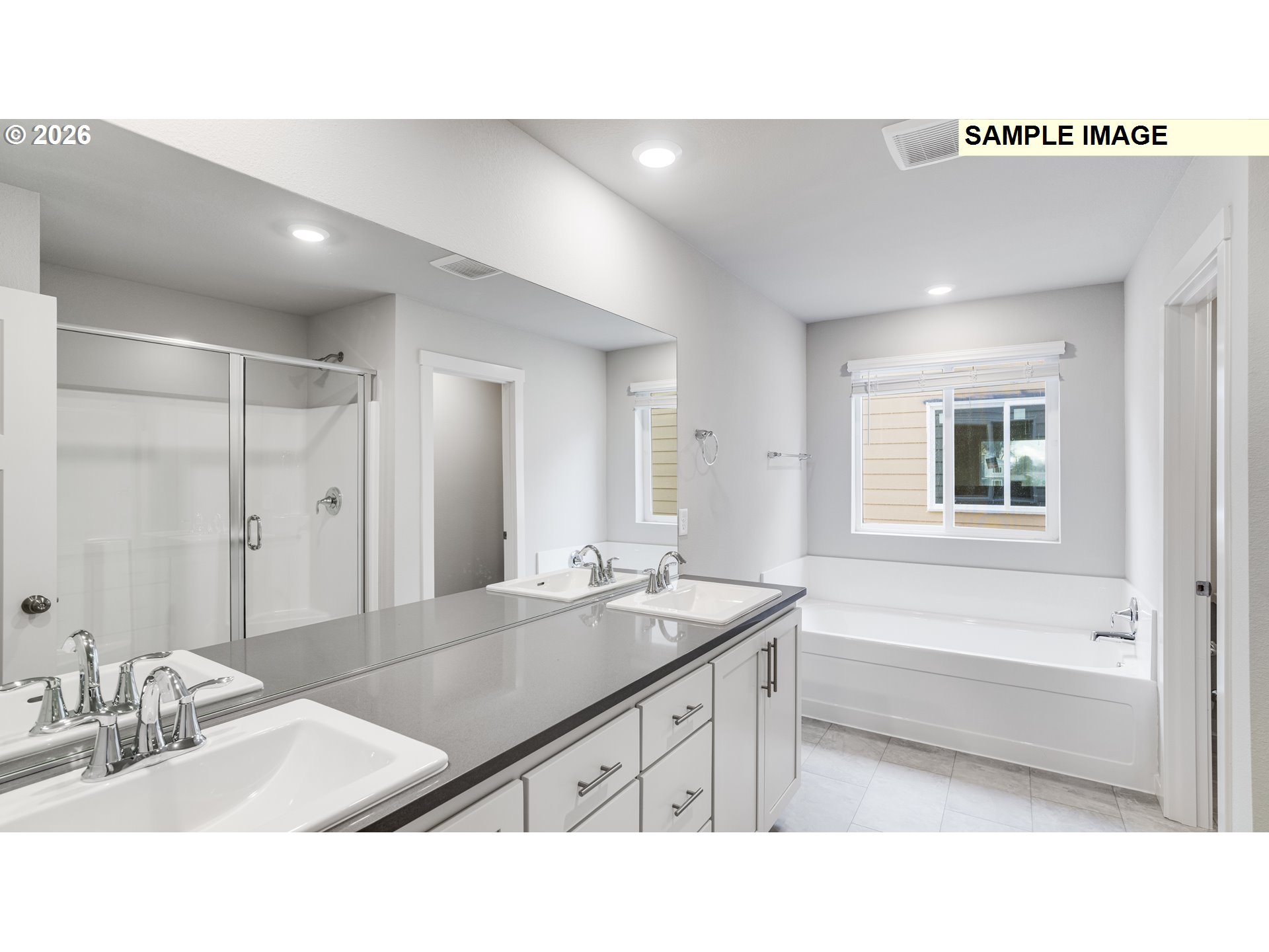Located in the Autumn Sunrise community, this home is ideally situated in Tualatin near I-5 with convenient access to shopping and dining. Residents enjoy inviting neighborhood amenities including a playground, picnic areas, fire pit and basketball court — just 10 minutes from Bridgeport and less than 10 minutes from Costco. Welcome to the beautifully designed Jasmine floorplan—where style, comfort, and flexibility come together in a thoughtfully crafted two-story home. The first level showcases a contemporary open-concept layout, seamlessly connecting the Great Room, kitchen, and dining area—perfect for both everyday living and entertaining. A cozy fireplace anchors the Great Room, creating a warm and inviting atmosphere. Just off the main living space, a secondary bedroom offers ideal flexibility for overnight guests or a private home office. Step outside to enjoy the covered patio, perfect for relaxing or hosting gatherings year-round. Upstairs, four additional bedrooms are thoughtfully arranged around a versatile loft, providing extra space for a media room, play area, or study zone. The luxurious owner’s suite serves as a peaceful retreat, featuring a spa-inspired en-suite bathroom complete with a soaking tub and a generous walk-in closet designed to accommodate your lifestyle. This home includes the exceptional Everything’s Included® package, delivering added value and convenience with air conditioning, refrigerator, washer and dryer, and window blinds—all included. With its spacious design, upscale features, and flexible living spaces, the Jasmine floorplan offers the perfect place to call home. Located on homesite 351, this home is expected to be complete in July'26. Photos are of a different home in the same floor plan - features and finishes will vary.