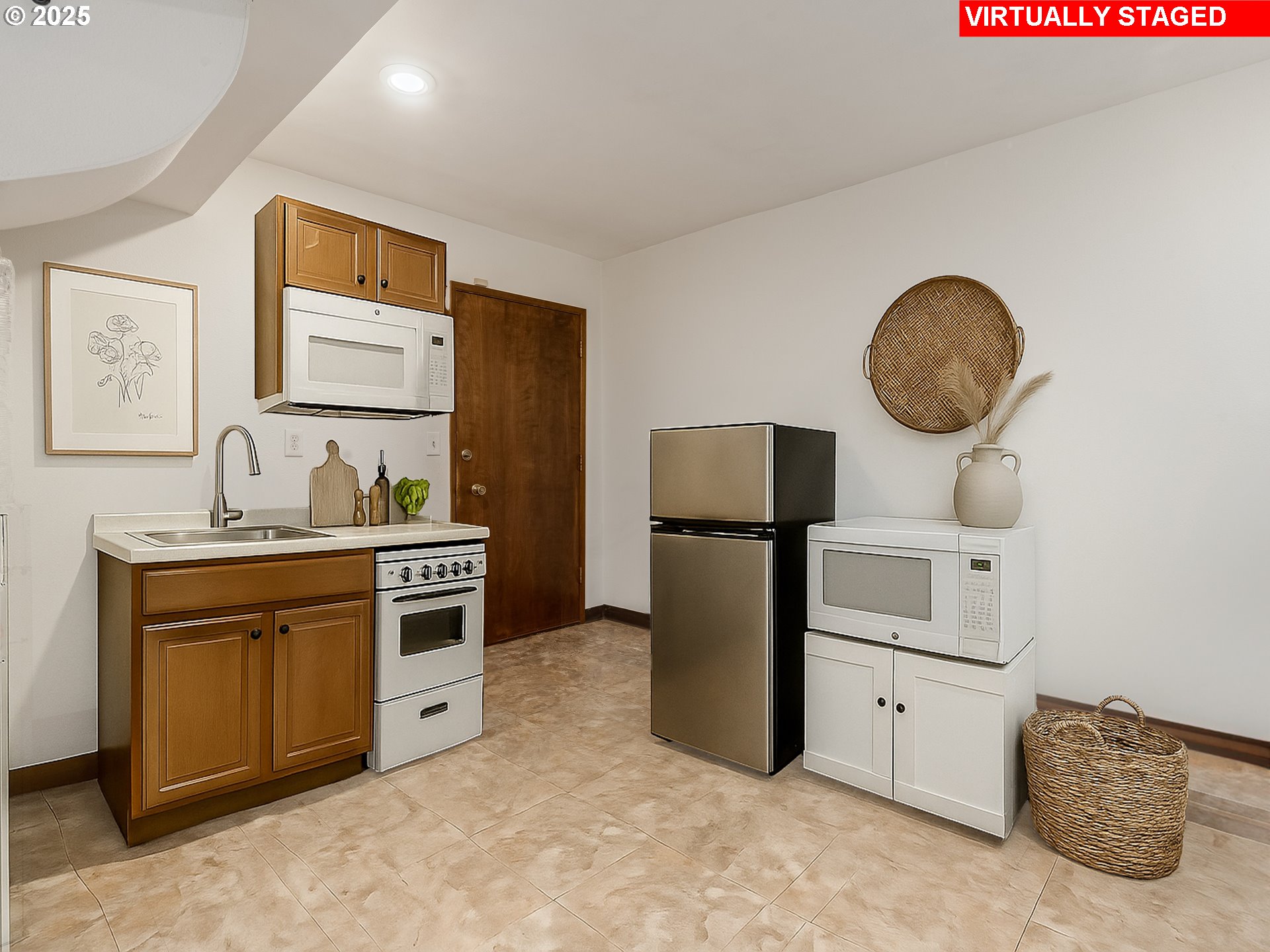 (503) 893-8874Welcome to Scenic Drive, where retro-cool 1970s style meets sleek mid-century modern flair. This fully renovated split-level stunner offers 4 bedrooms, 3 full baths, and a den/home office, all packed into a smart, flexible layout with serious potential for multigenerational living, dual living, or even an ADU setup with a separate entrance.The formal living room features vaulted ceilings, floor-to-ceiling windows, and original hardwoods, plus a natural stone gas fireplace for cozy charm. The kitchen is a dream with quartz counters, custom tile, massive island, wine fridge, and top-tier Sub-Zero Wolf appliances—perfect for entertaining or pretending you’re on a cooking show. The spa-like primary suite has a walk-in closet, soaking tub, dual vanity, and luxe shower.Downstairs, the family room is ideal for movie nights or guests, complete with a wood-burning fireplace. The layout offers serious flexibility for hosting, working from home, or building out private living quarters. Enjoy an oversized two-car garage with storage, dedicated laundry, and a private backyard oasis featuring blueberries, figs, rosemary, and lavender. The exterior was freshly painted in 2022, and the roof was also replaced that year—no big-ticket projects here! Located minutes from Nike, Intel, OHSU, and Downtown Beaverton. Quiet, convenient, and move-in ready.